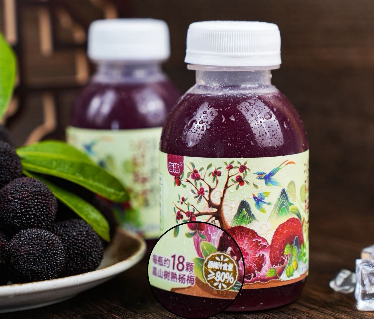 每一瓶大约有18颗精品杨梅,80%的杨梅汁含量,还原杨梅自然本味!