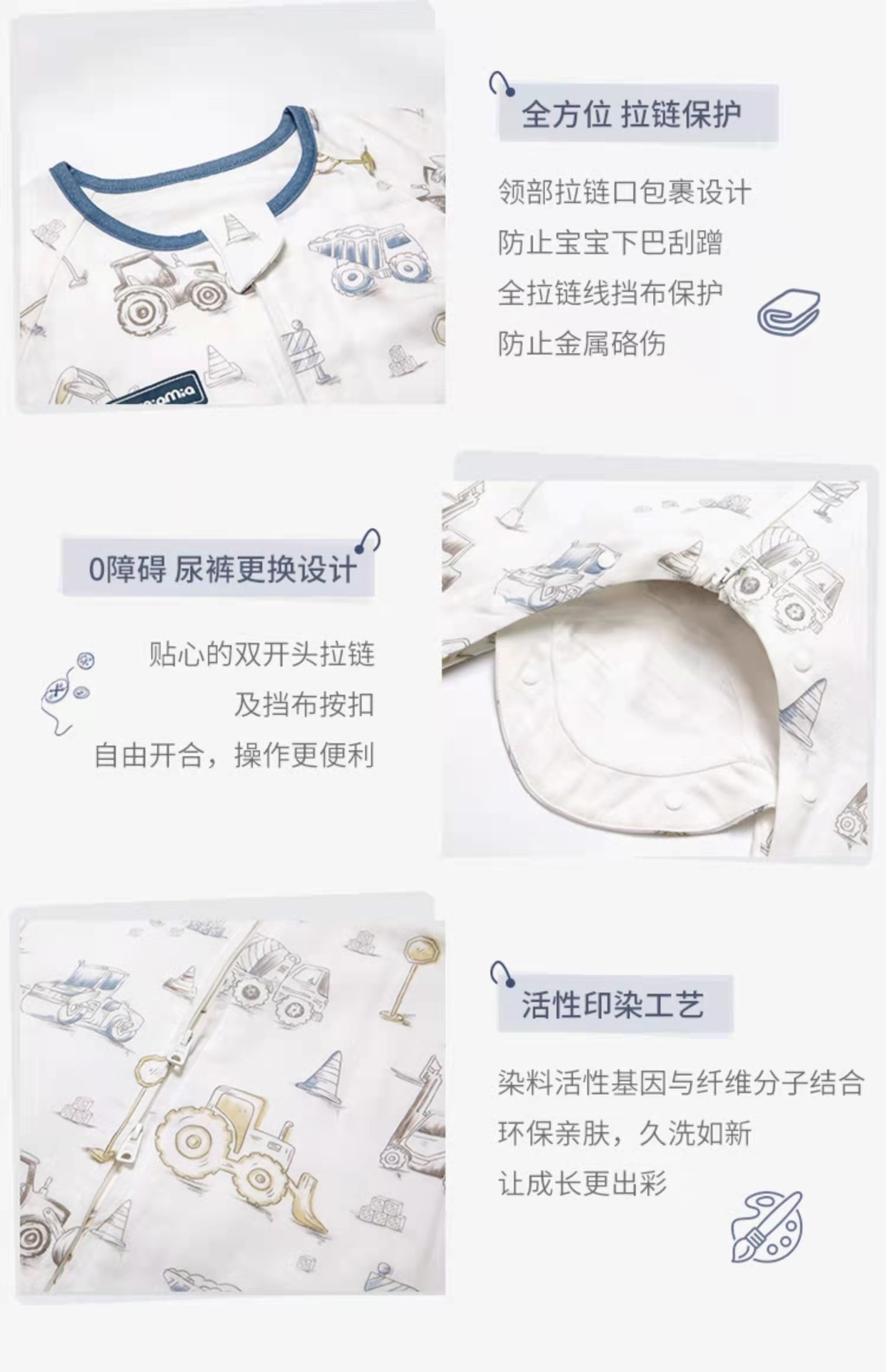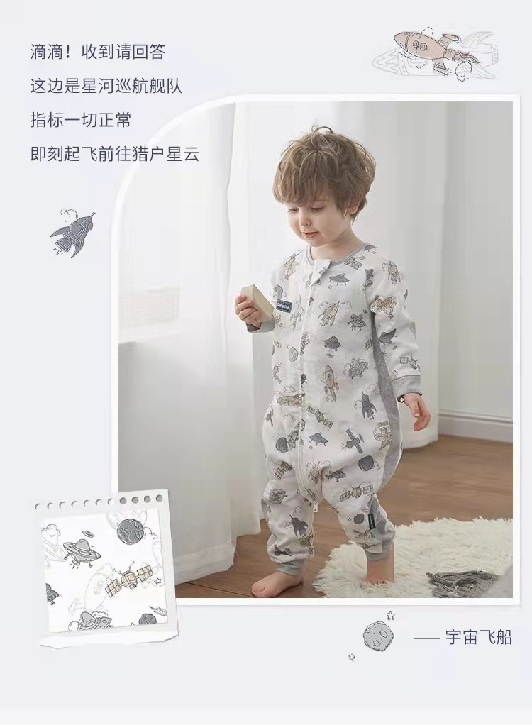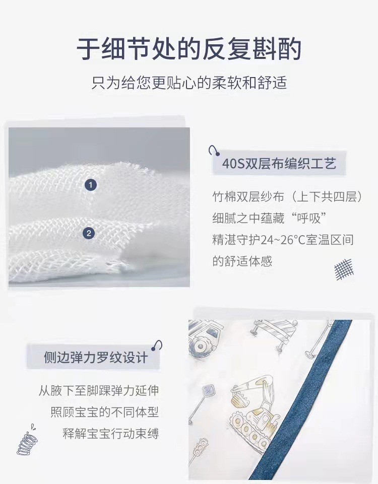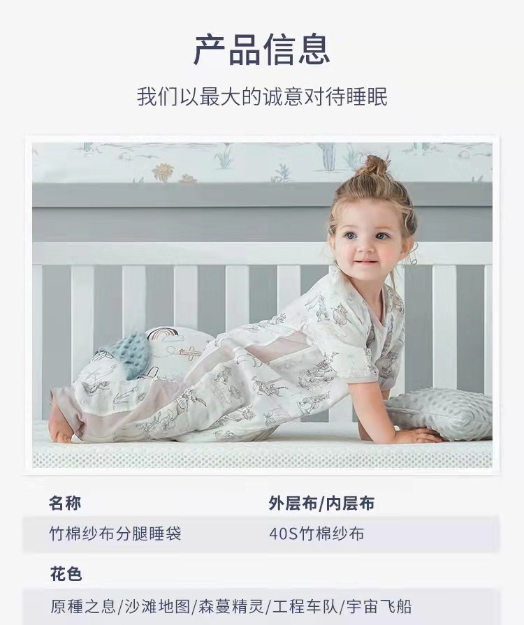 Domiamia哆咪呀抑制菌竹棉纱布婴儿睡袋春夏薄款宝宝暖气房儿童睡衣
