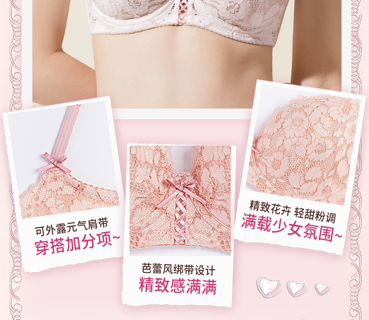 [甜奶茶]大胸显小超薄文胸蕾丝女士胸罩聚拢内衣女