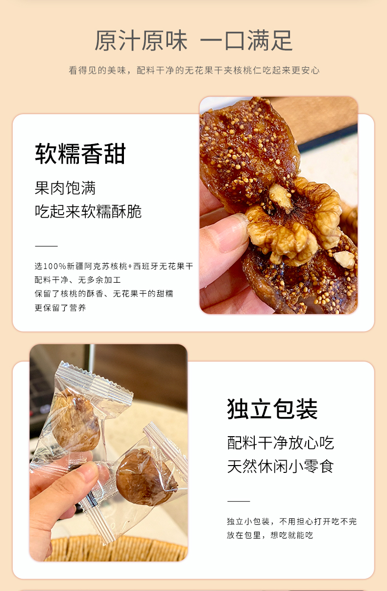 无花果干夹核桃仁200g/袋无花果的甜 核桃仁的香完美结合一口滋养温暖心田