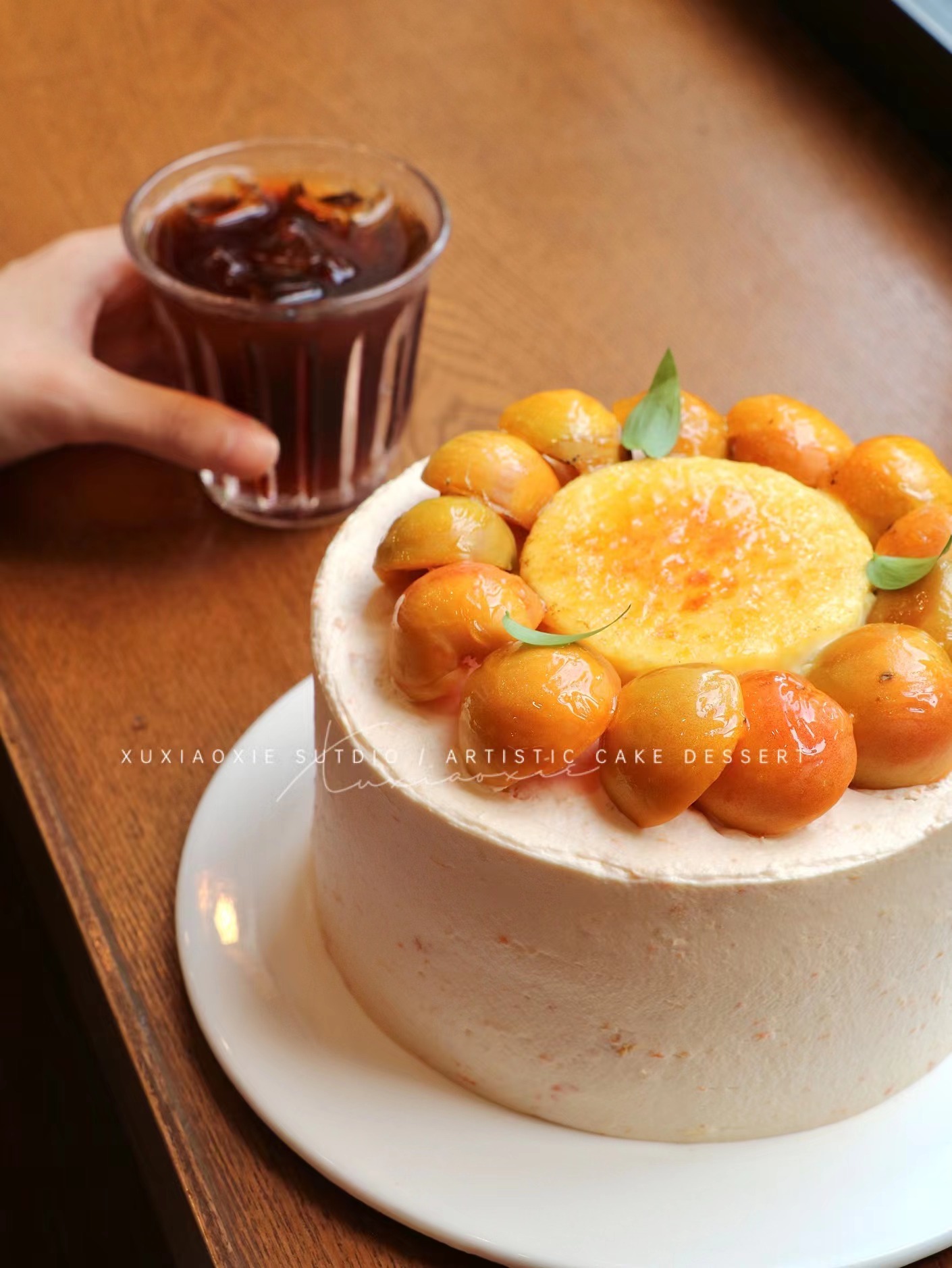 杏子果酱加入淡奶油调配成酸甜的香缇奶油,顶部的香草烤布蕾更是点睛之笔~