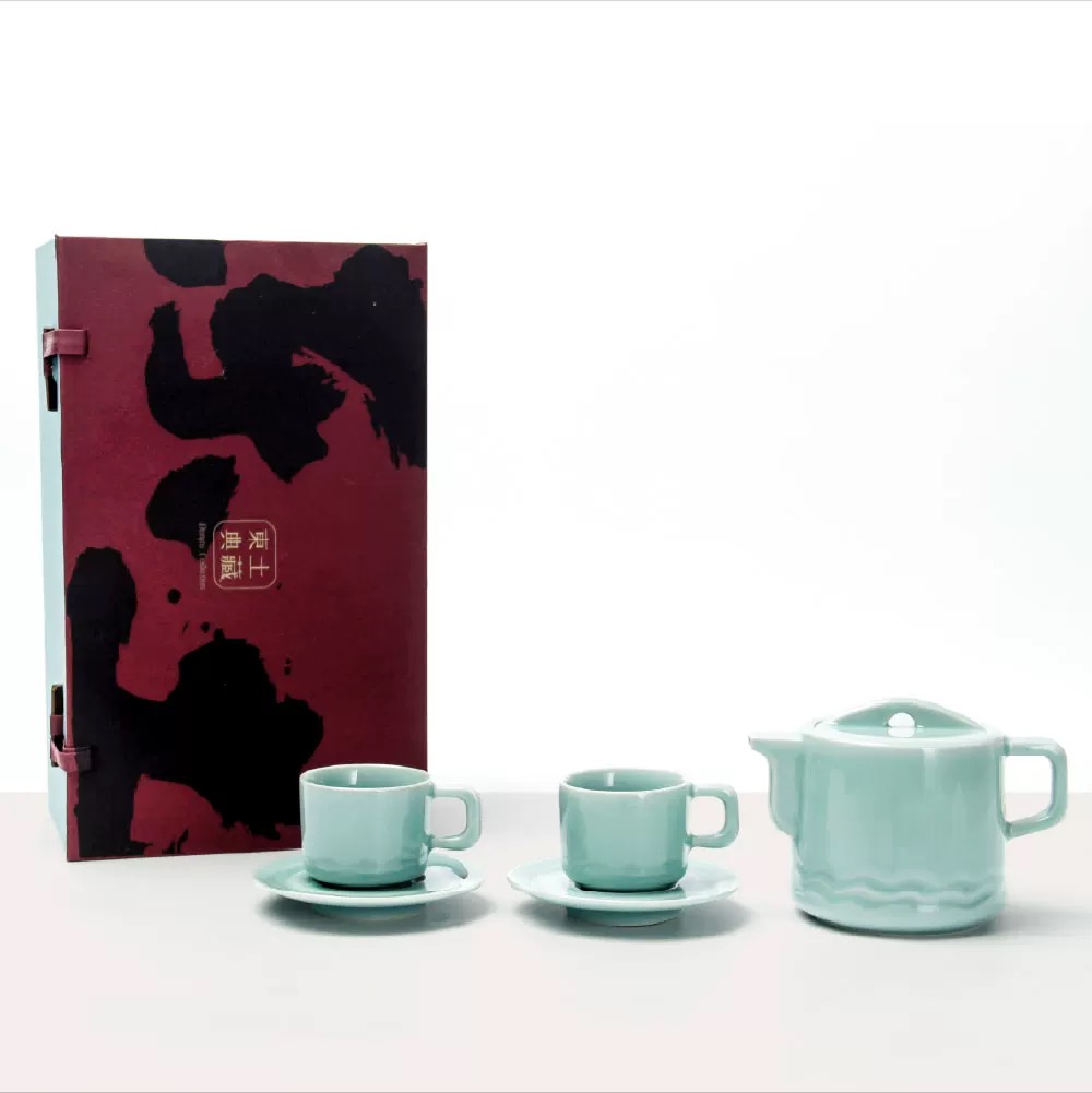青瓷山川本色茶具套装大师系列高端送礼一壶两杯