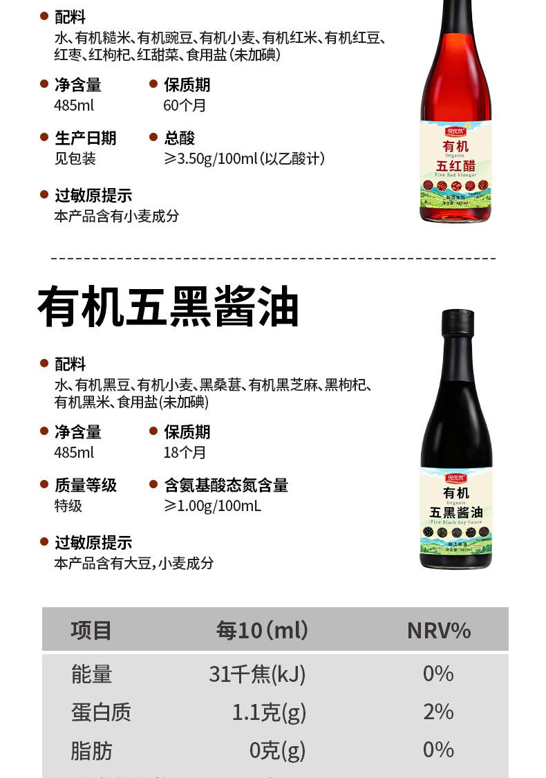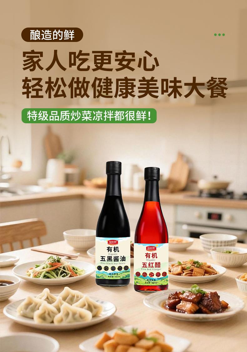 传统工艺发酵纯粮酿造 有机五红醋 五黑酱油 用于蒸煮炖炒