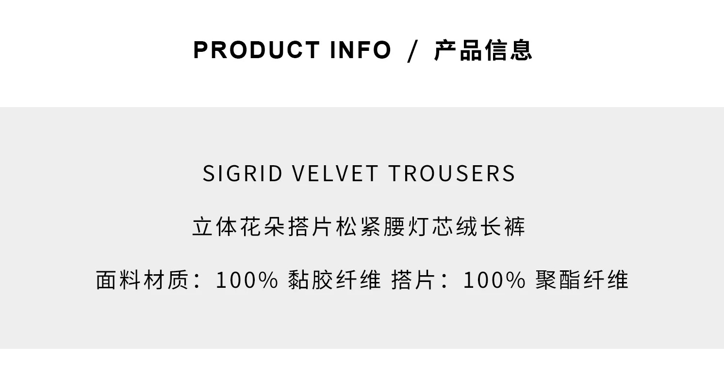 VC|HD25012 Sigrid velvet trousers [ 长裤 黑 / 米白 ]【HOLIDAY】