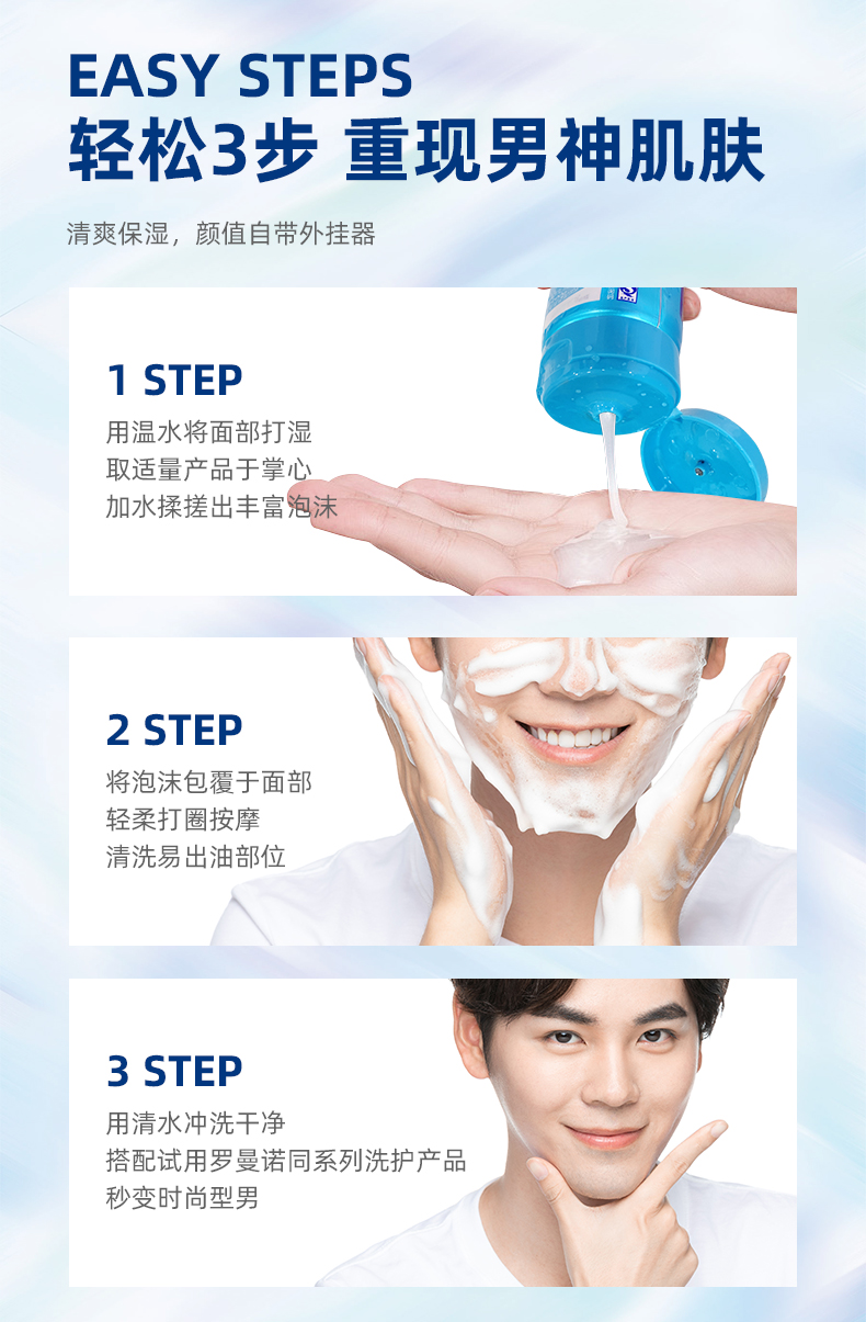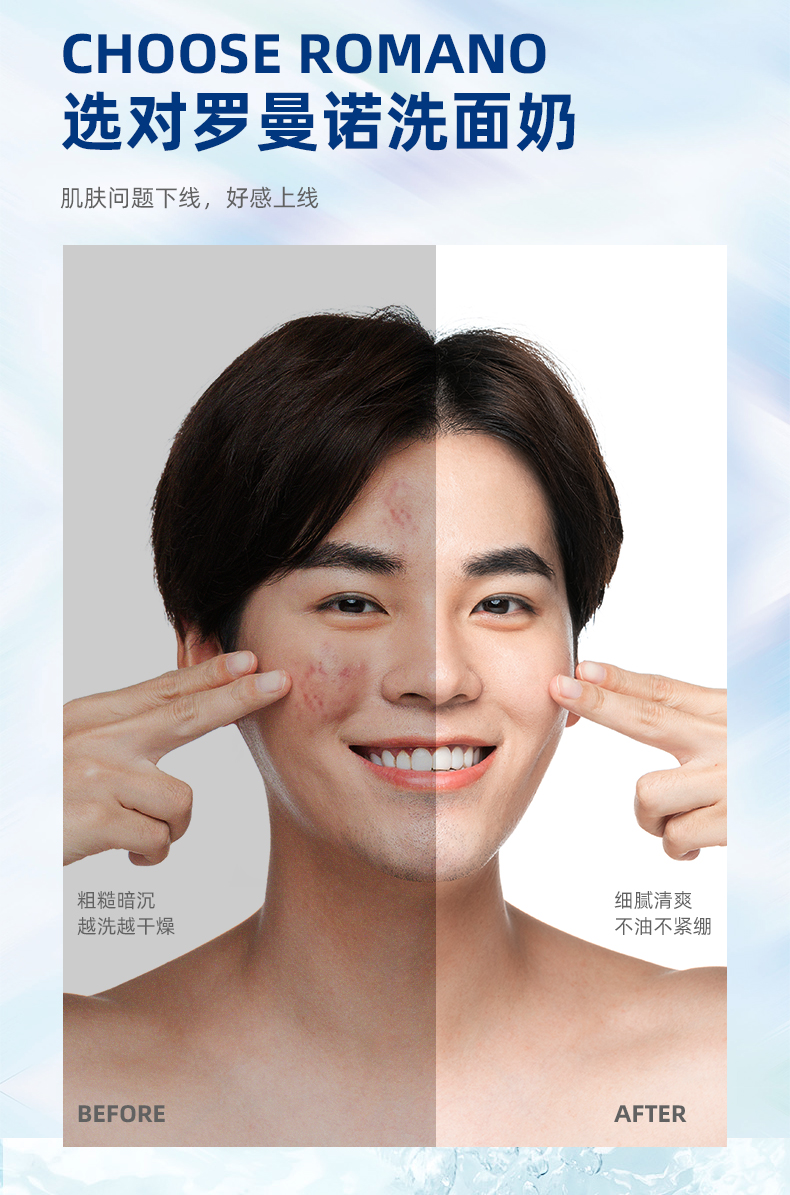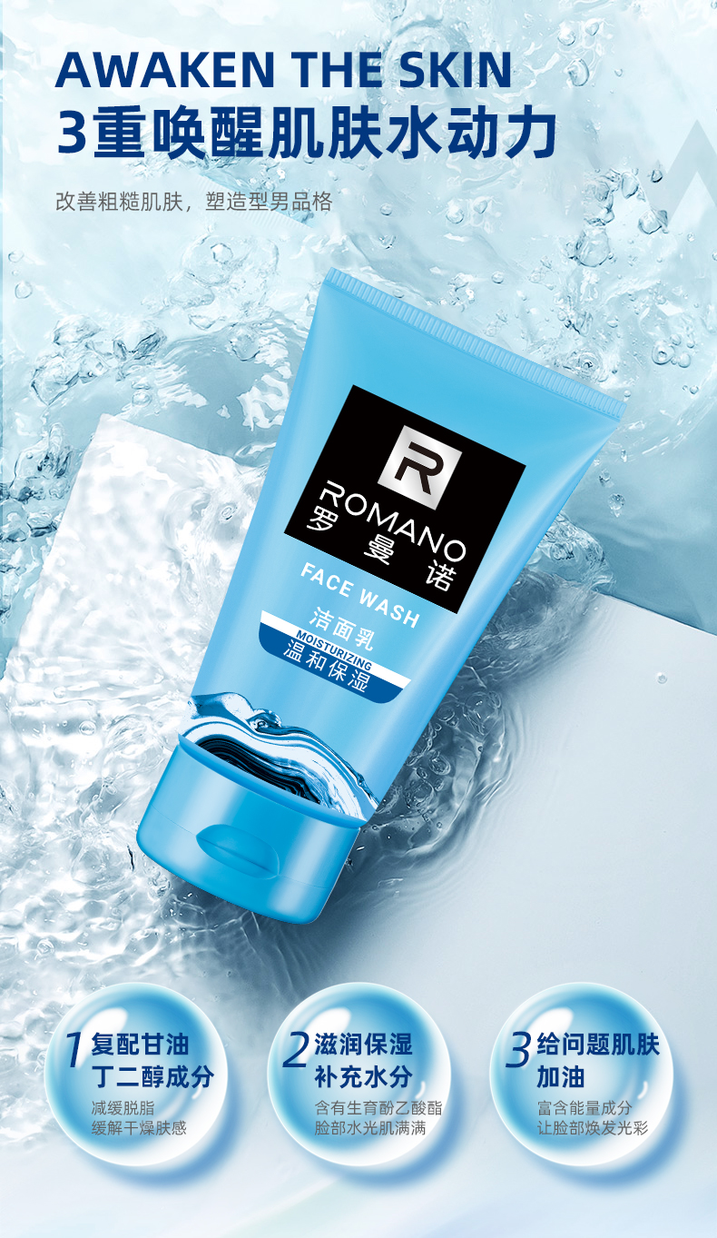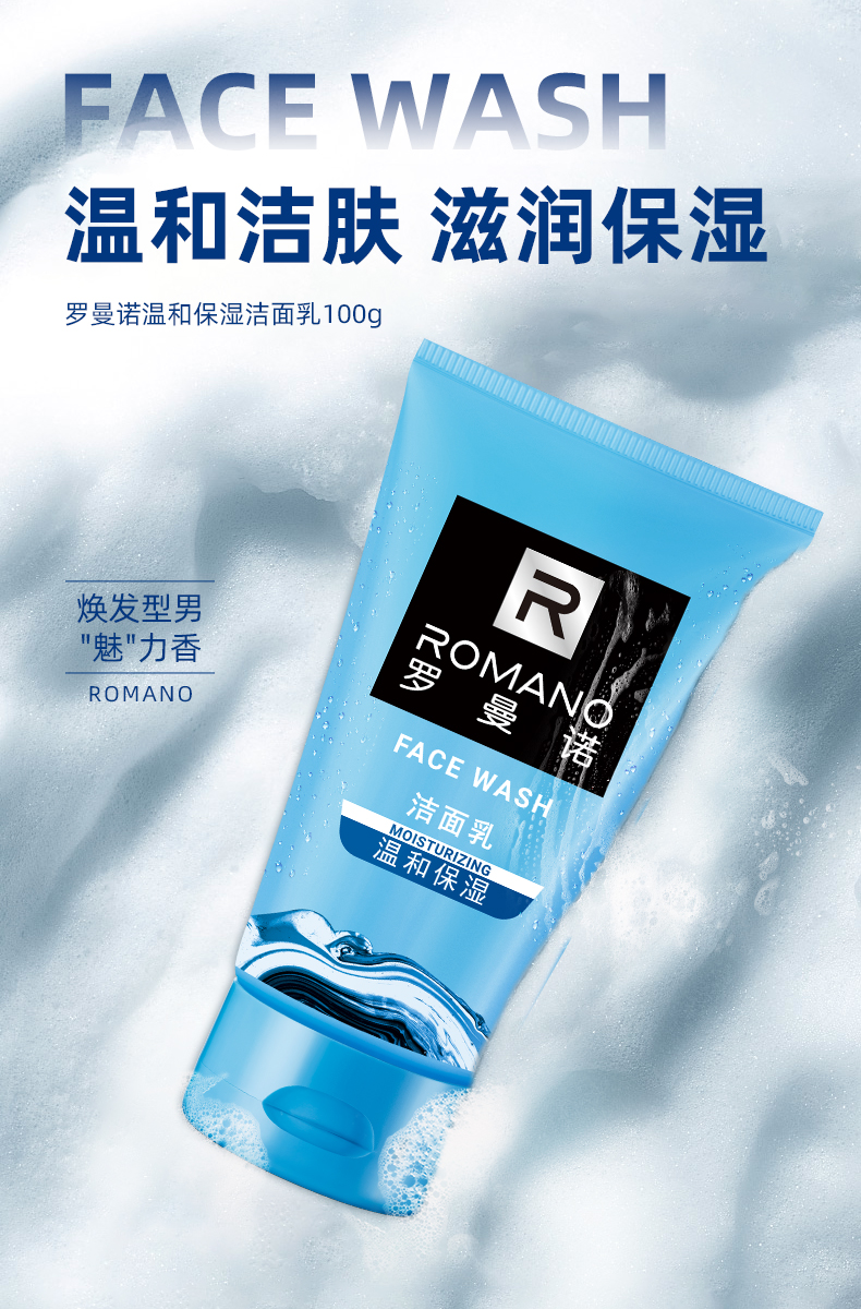 罗曼诺男士清爽洁面乳100g 深层清洁毛孔洗面奶