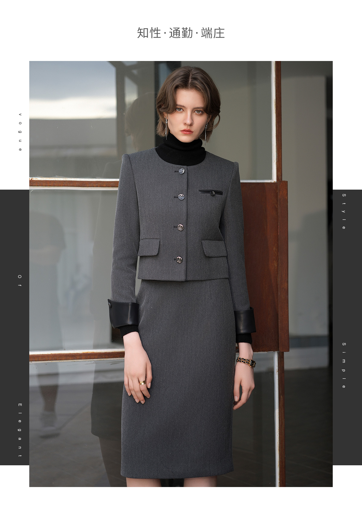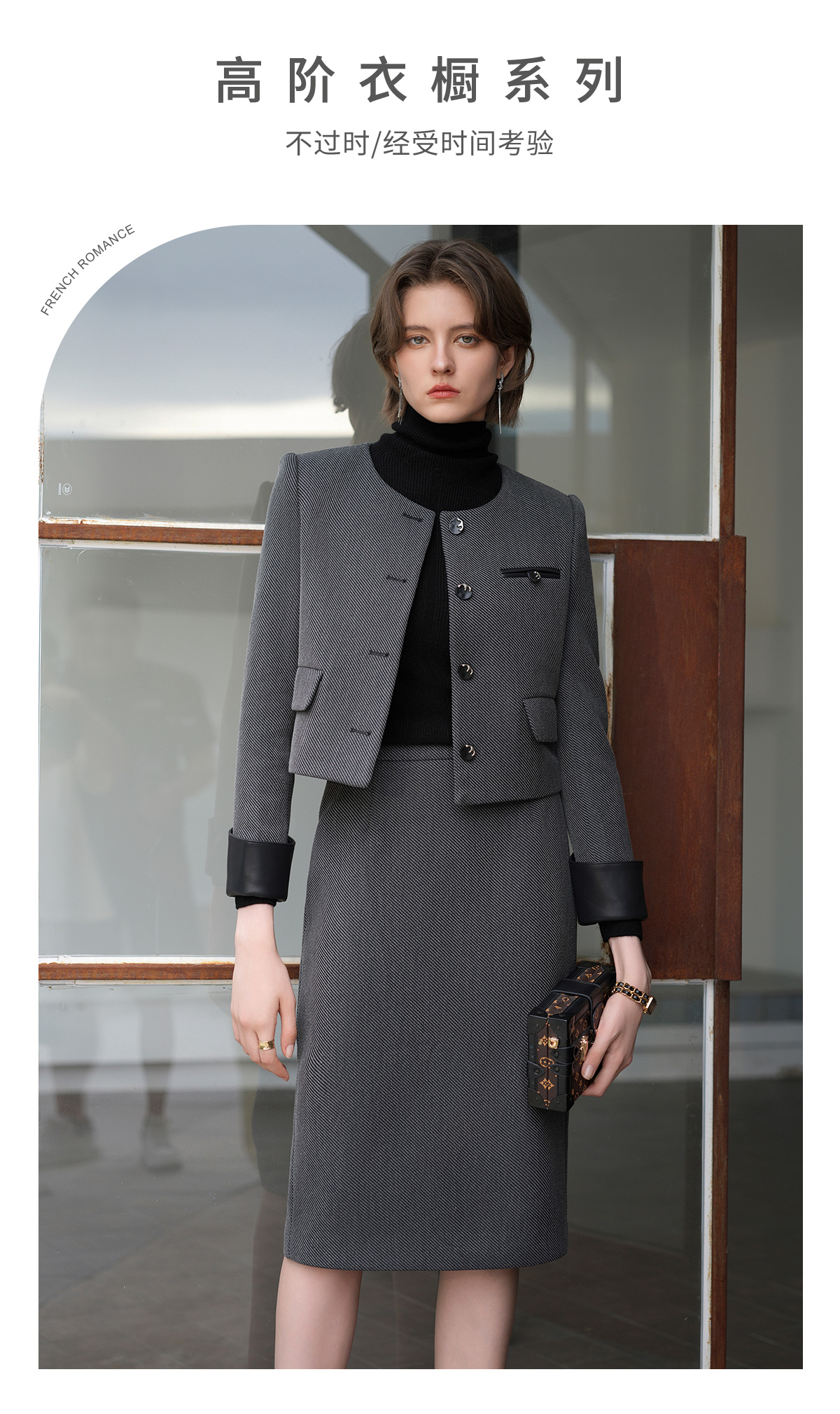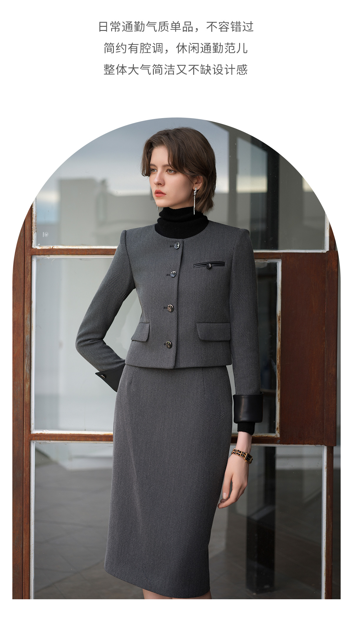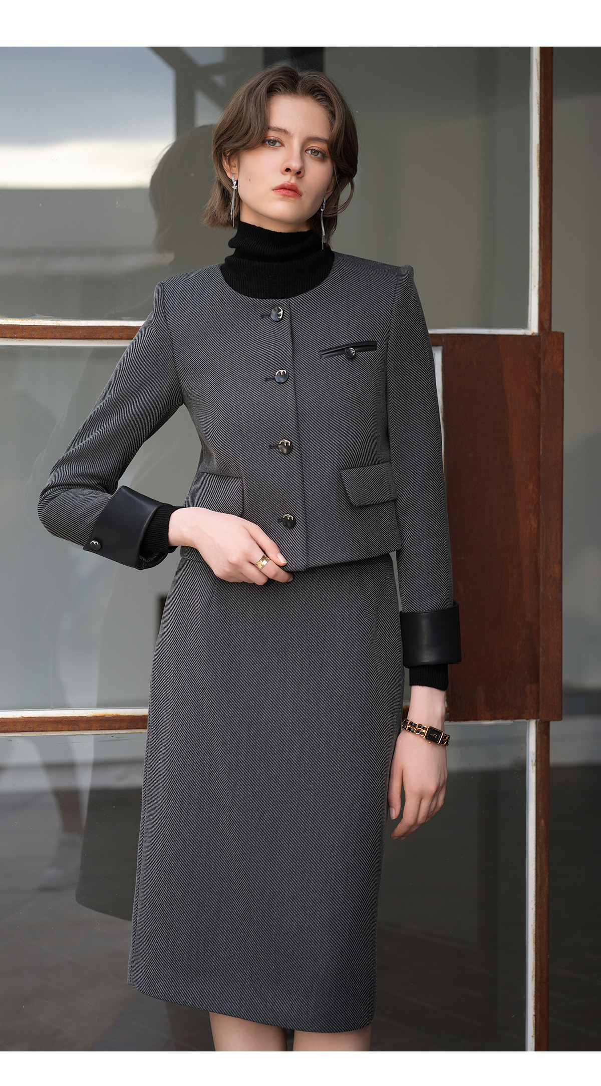 AD入秋小香风套装女知性圆领短外套2024新款斜纹羊毛呢子两件套