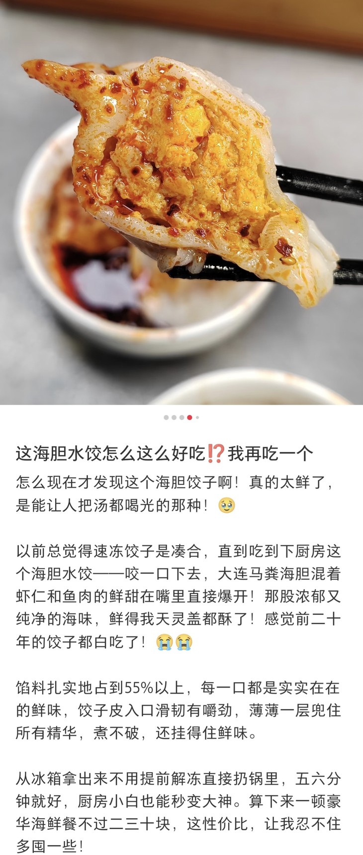 周末试样品时间,也是名正言顺吃得超满足啦!这碗下厨房的海胆水饺,薄薄的饺子皮里,简直裹进了整片大海的味道,一口咬下去汁水在舌尖迸发的快感,过去三天了,我都还念念不忘,太美味啦!