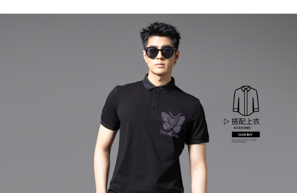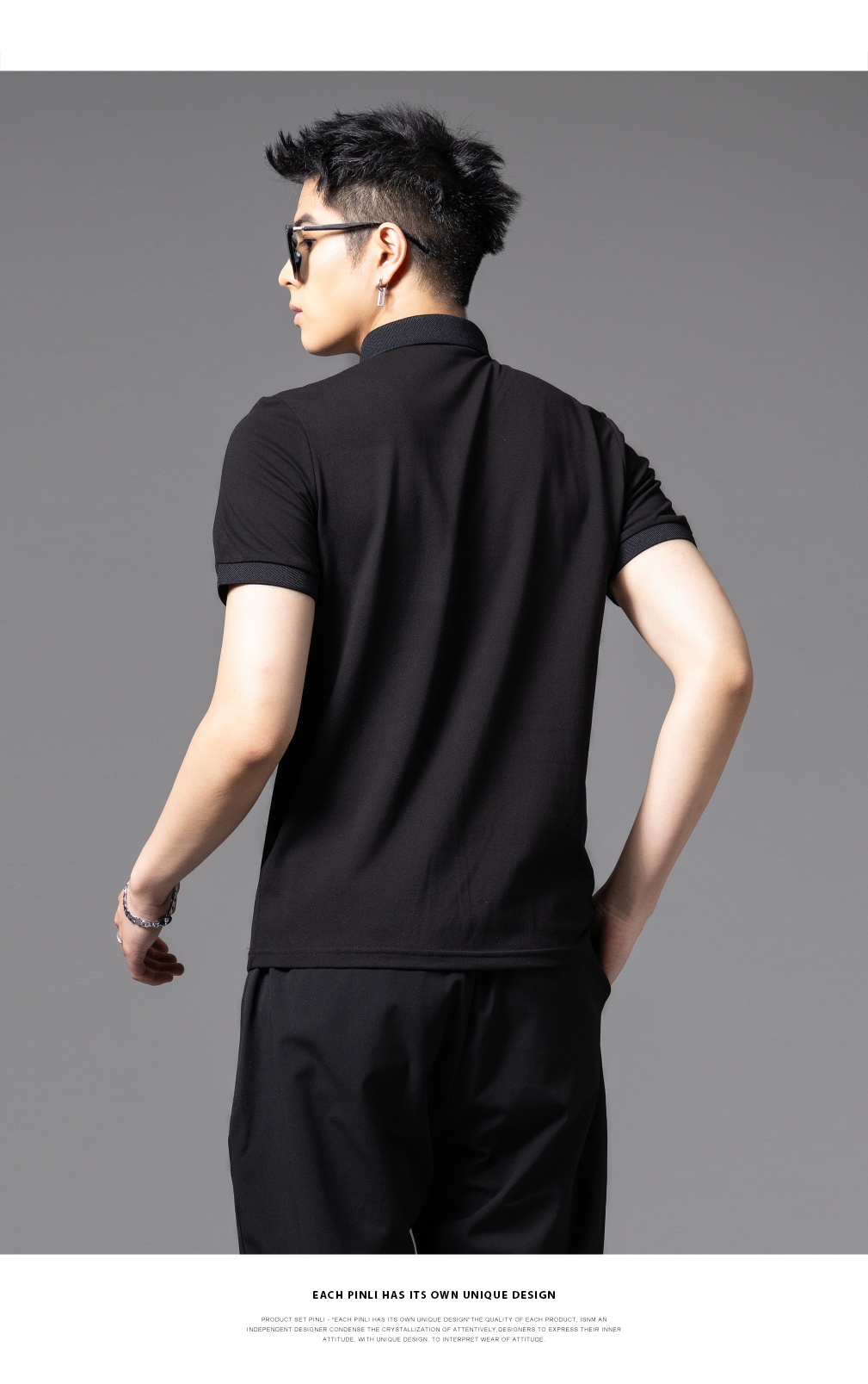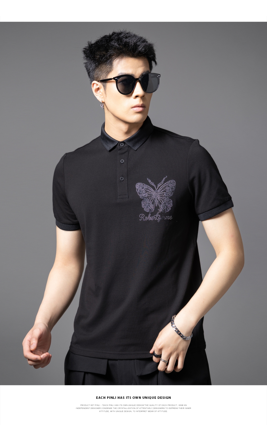 PINLI品立2025夏季新款蝴蝶烫钻修身POLO衫男士商务休闲短袖上衣BG252112090