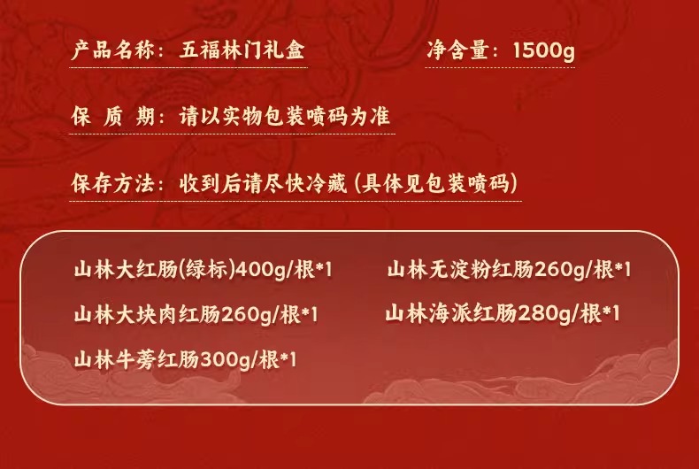 山林大红红肠礼盒熟食年货正宗上海风味真空即食