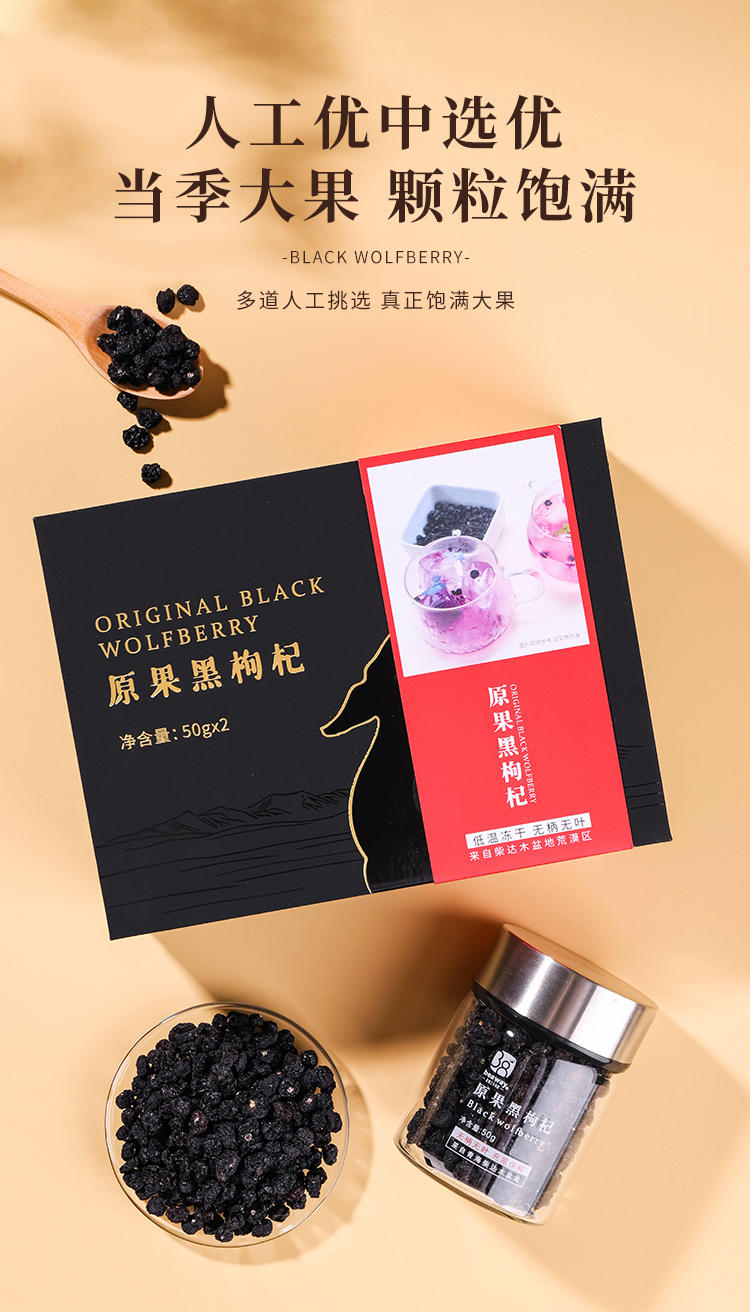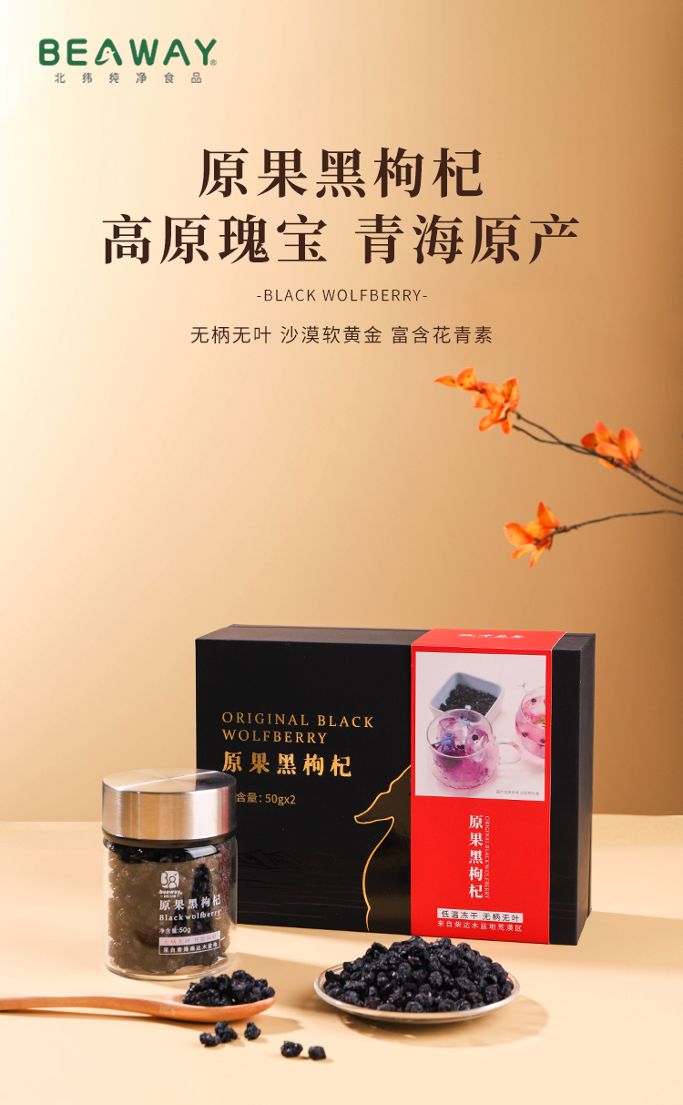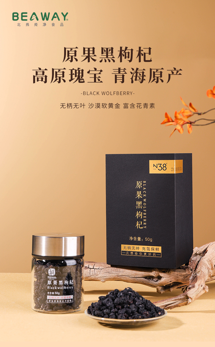 北纬纯净食品|38°青海柴达木黑枸杞野生冻干丰富花青素
