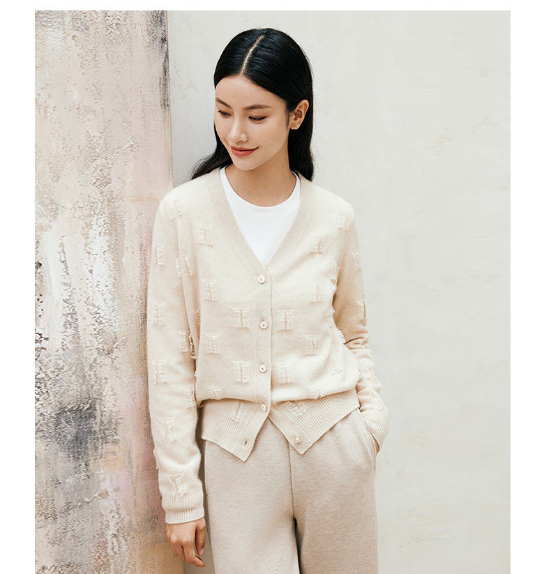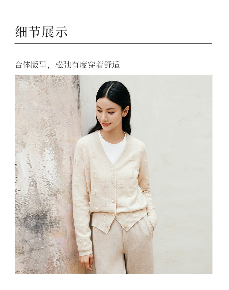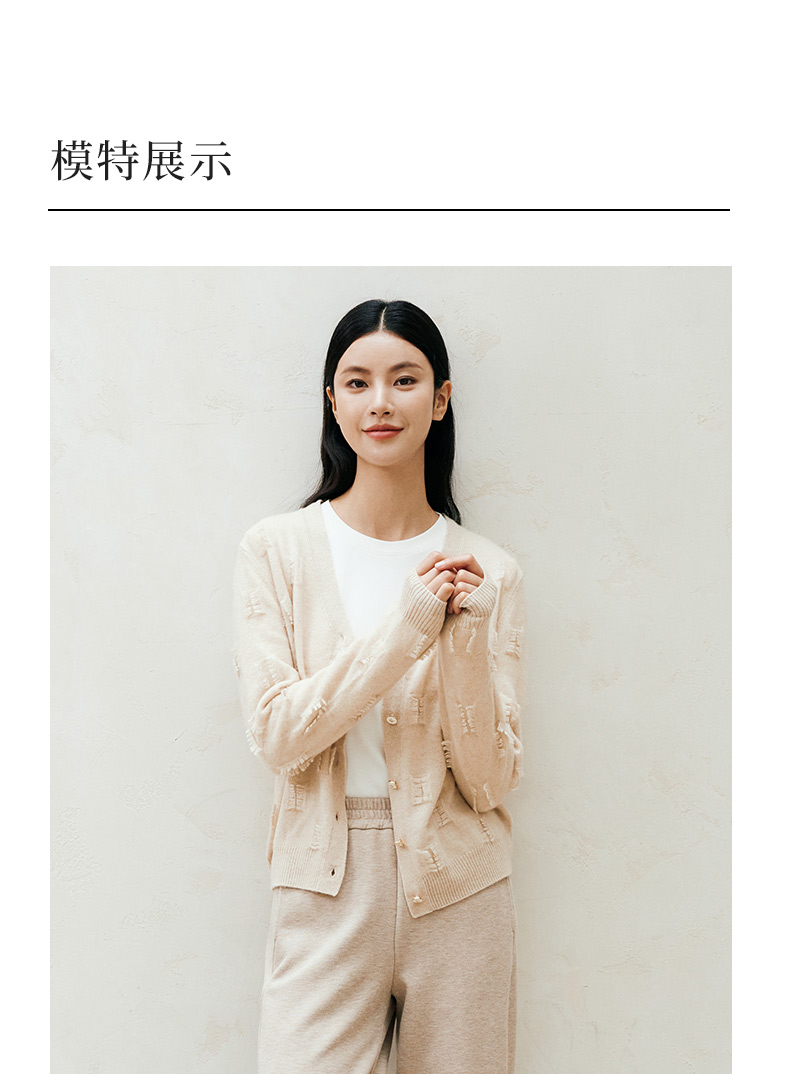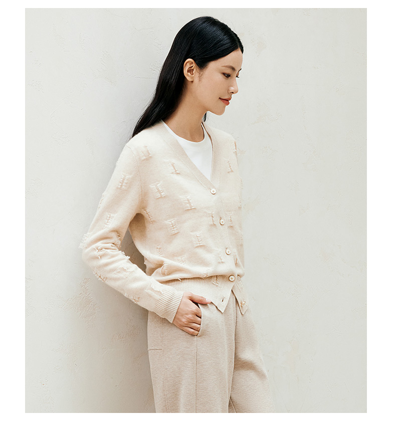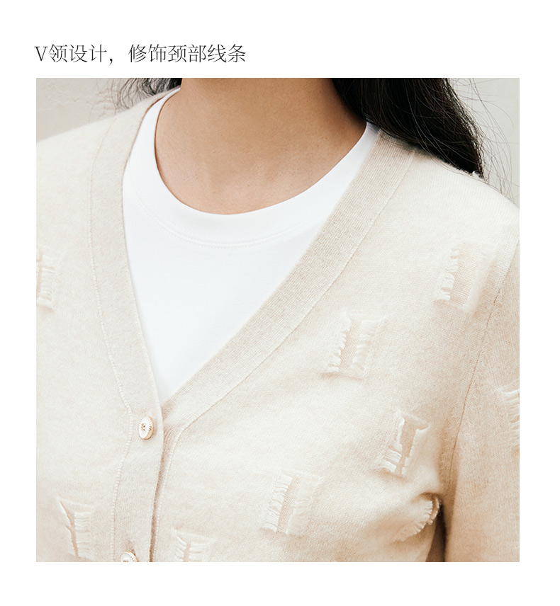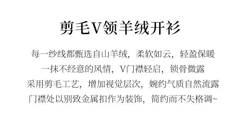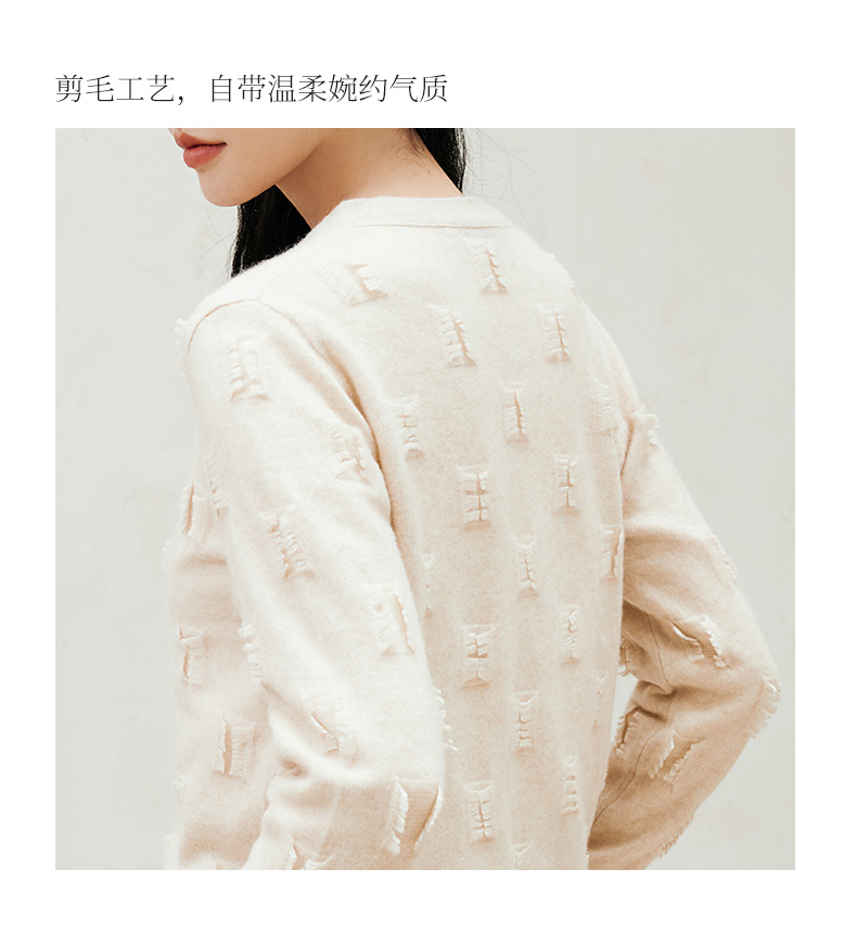 玳莎剪毛全羊绒针织开衫女冬季新款时尚设计感V领毛衣上衣 ED33310