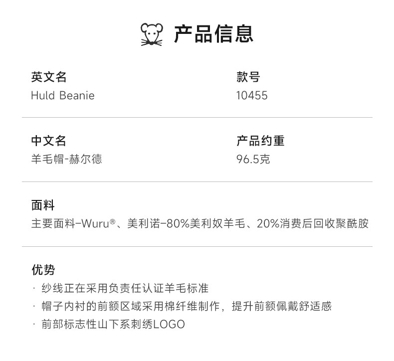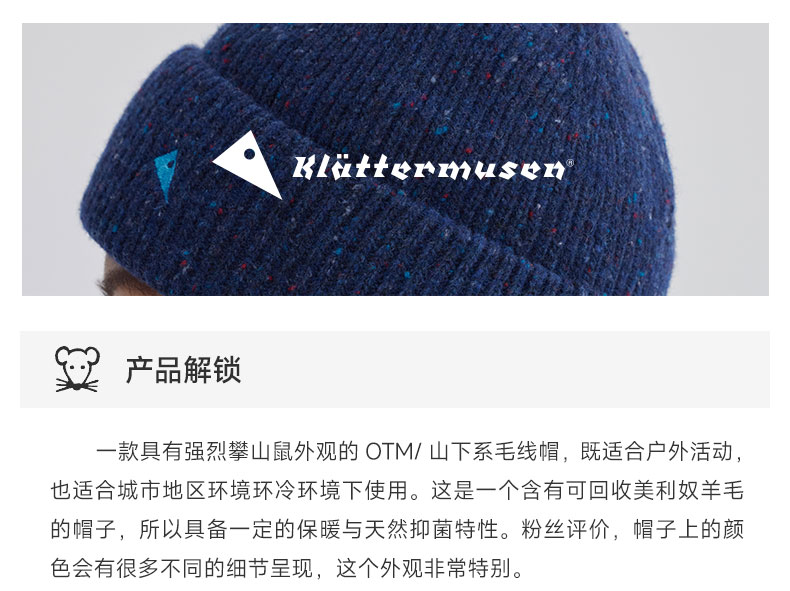 Klattermusen攀山鼠羊毛帽(赫尔德)户外保暖帽毛线帽子 10455
