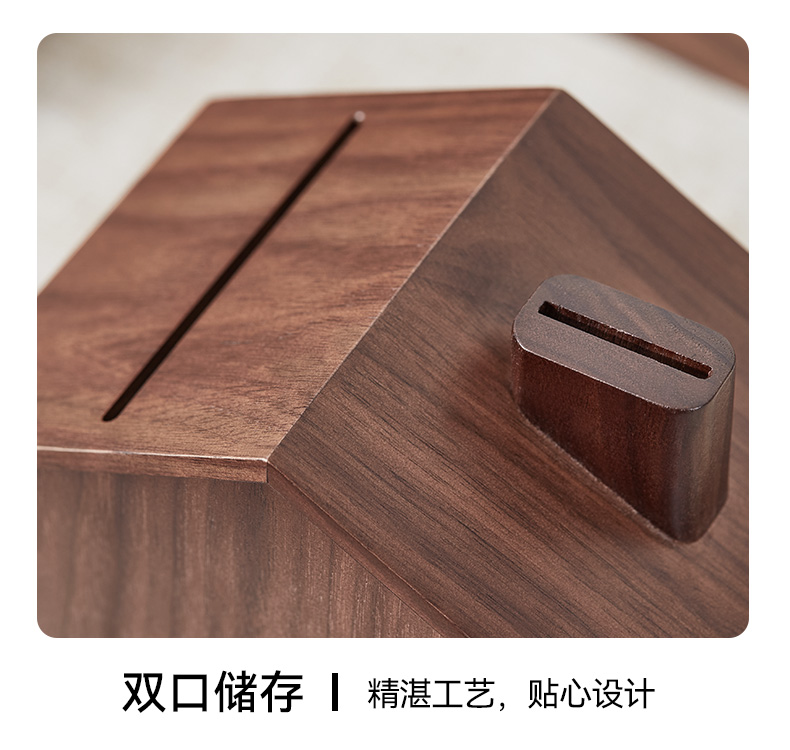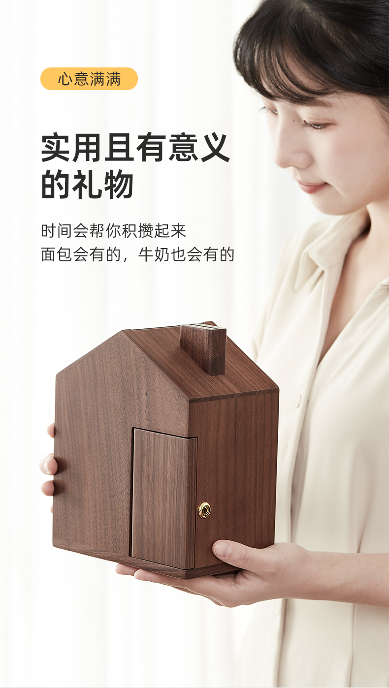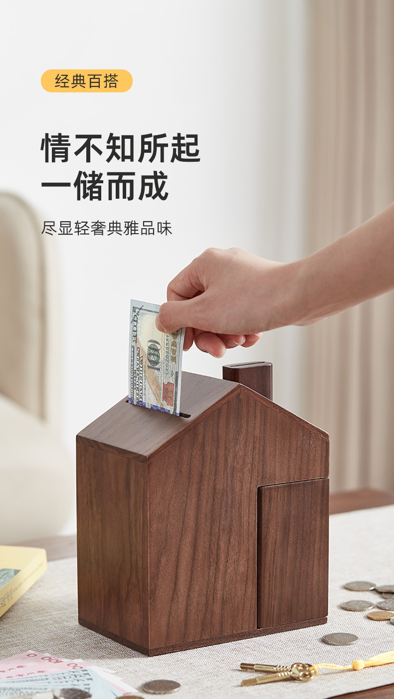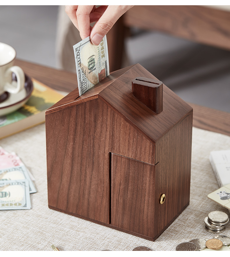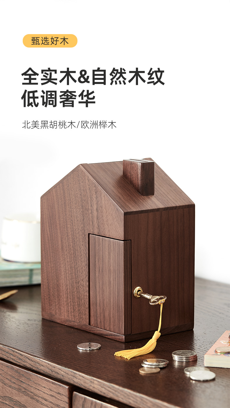 初心| 创意小屋实木存钱罐轻奢黑胡桃木榉木创意摆件孩子送礼