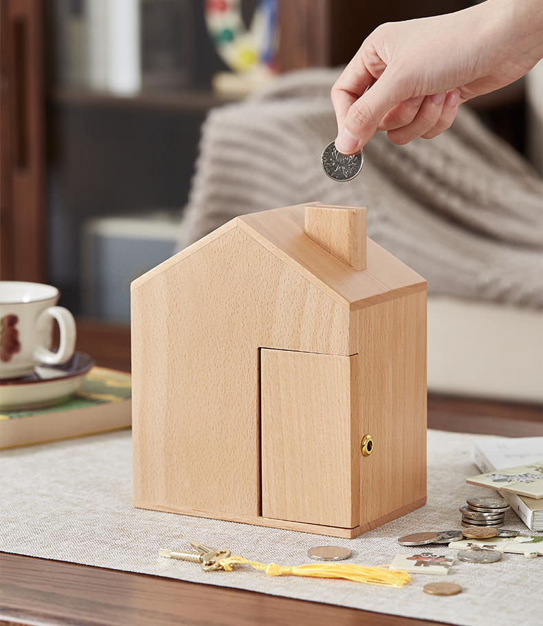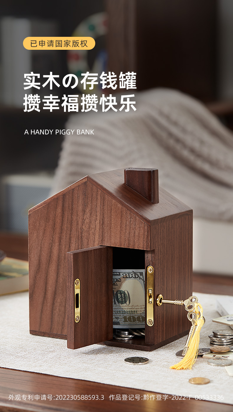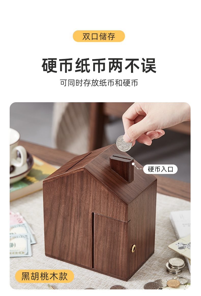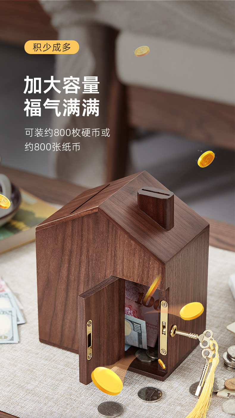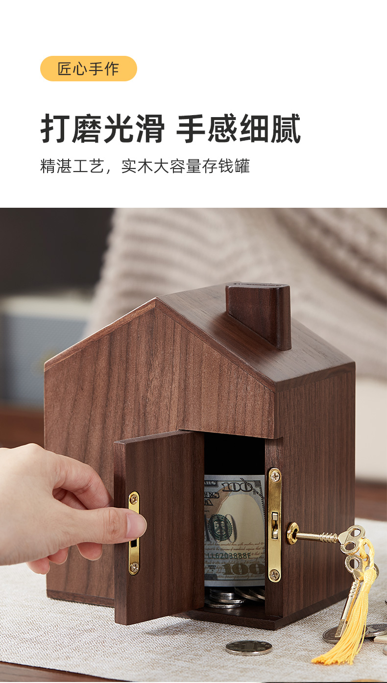 初心| 创意小屋实木存钱罐轻奢黑胡桃木榉木创意摆件孩子送礼