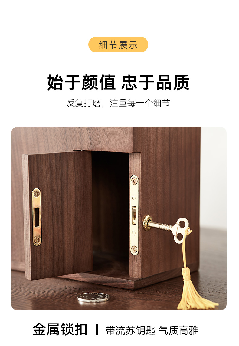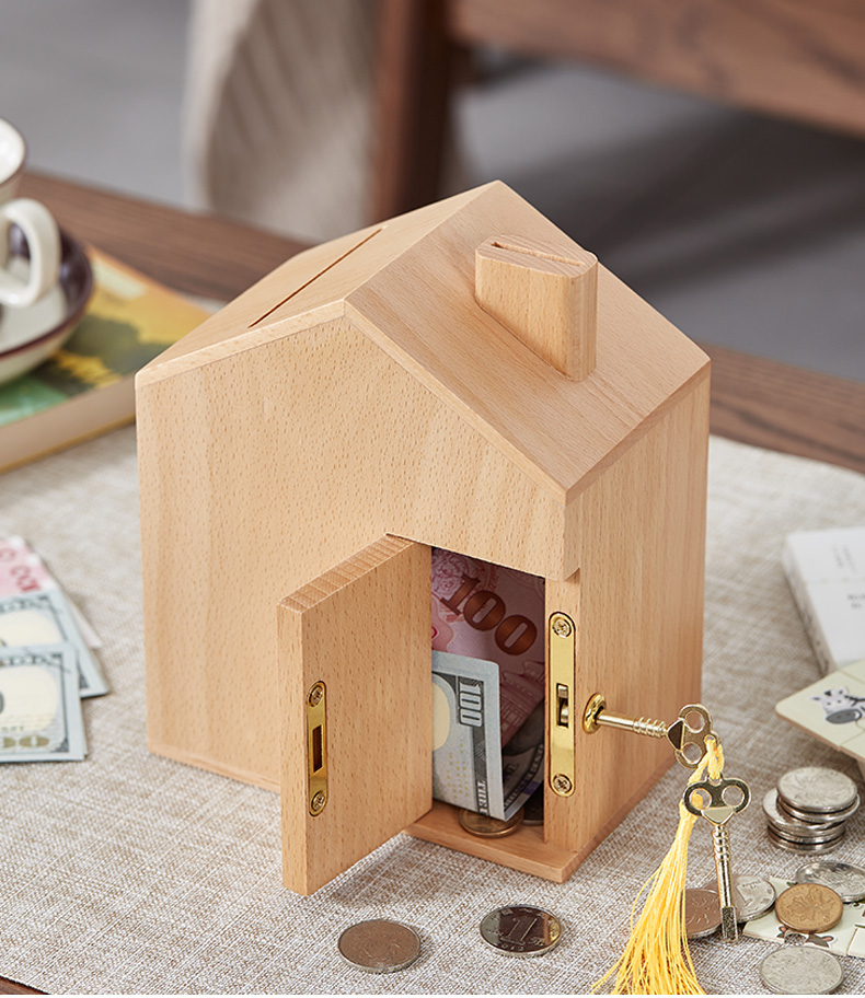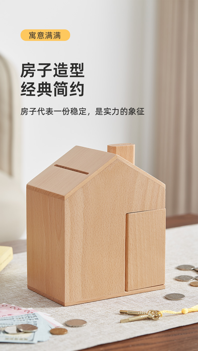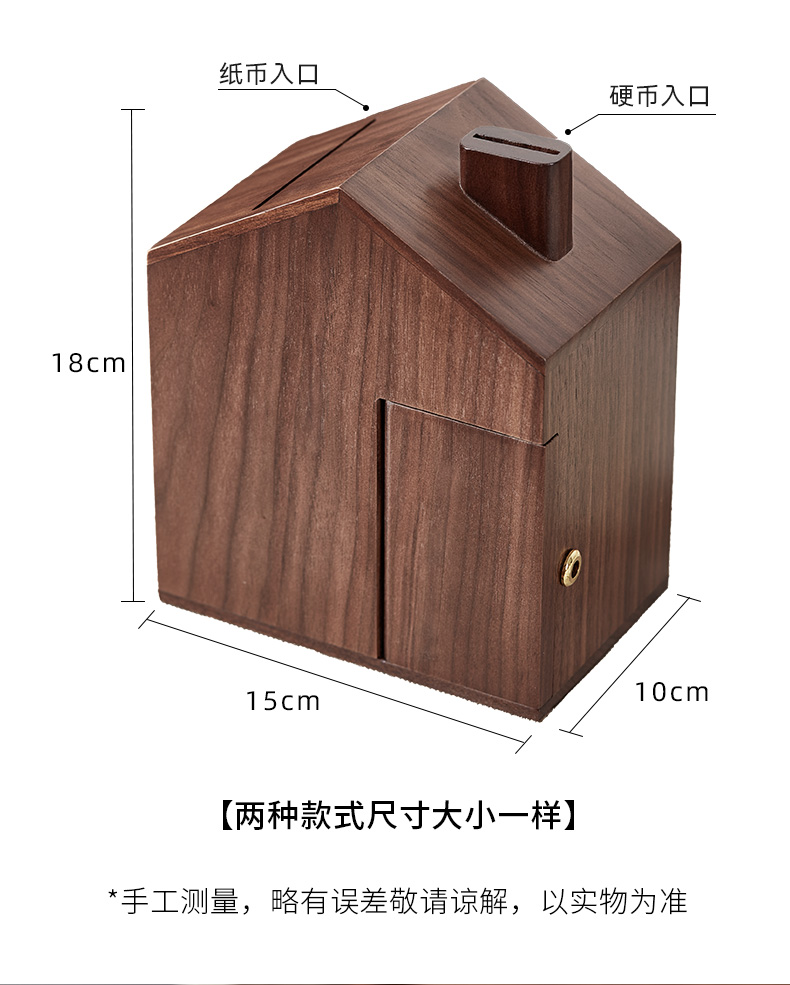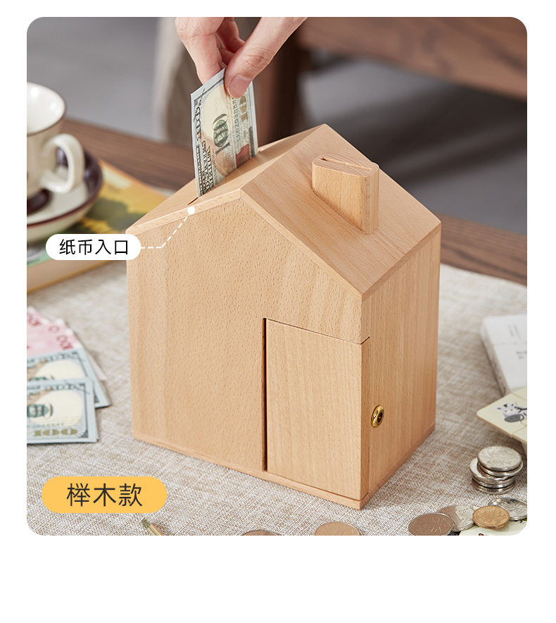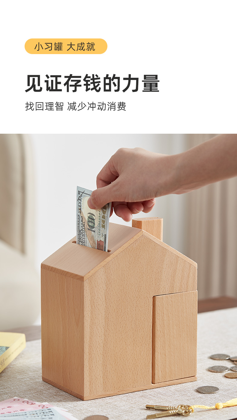 初心| 创意小屋实木存钱罐轻奢黑胡桃木榉木创意摆件孩子送礼