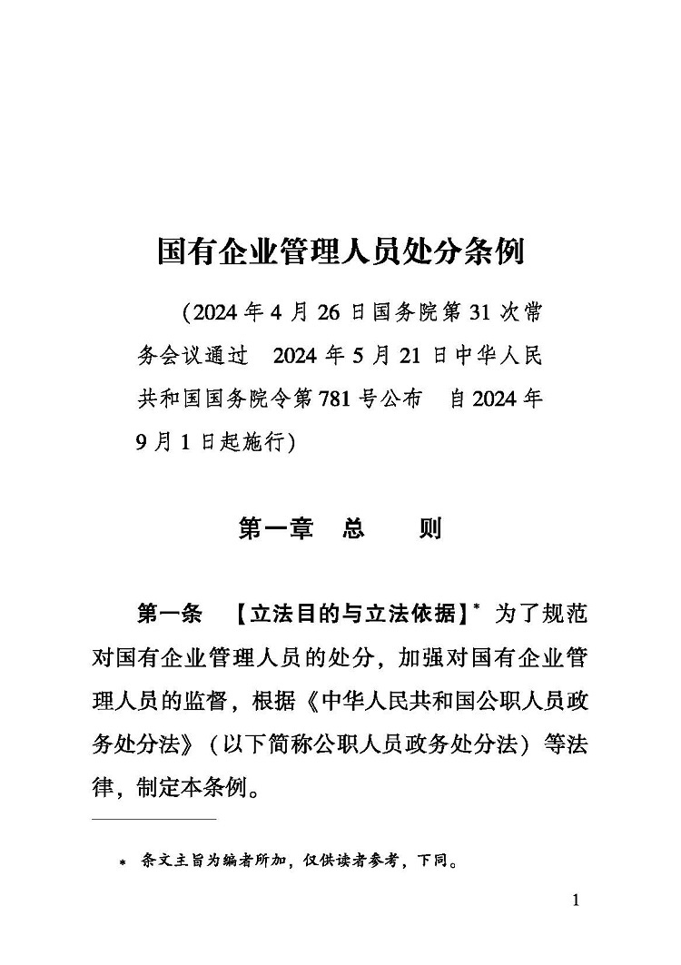 含2024年5月21日公布、2024年9月1日起施行的《国有企业管理人员处分条例》