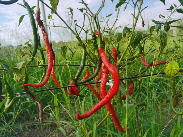 辣椒育苗在头年12月到次年1月,分批移植在二月底到四月底结束;移植过程先羊粪打底(羊粪来源四川阿坝或内蒙),中途只浇灌河水,辣椒种植病虫害极少,曾经出现病株就直接拔除;覆膜不除草;6月下旬到9月中旬可以采摘青椒,7月中旬到10月上旬可以采摘红椒。
