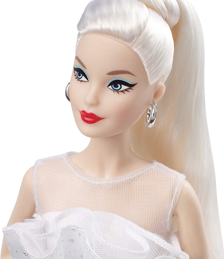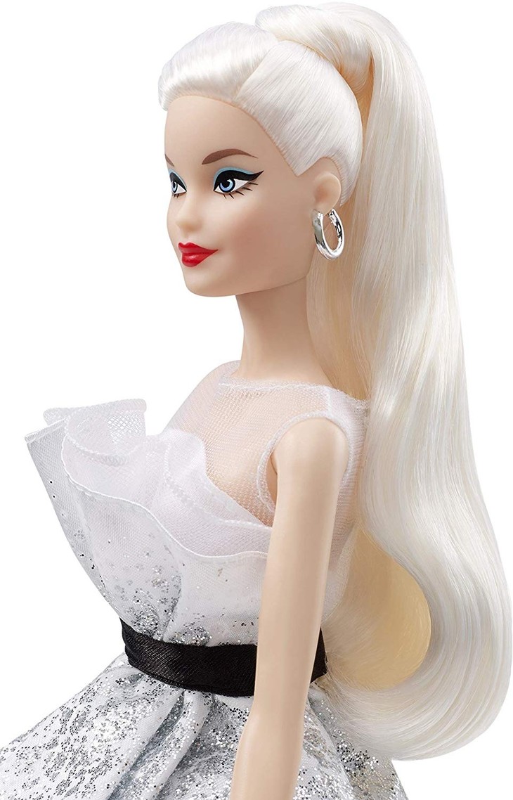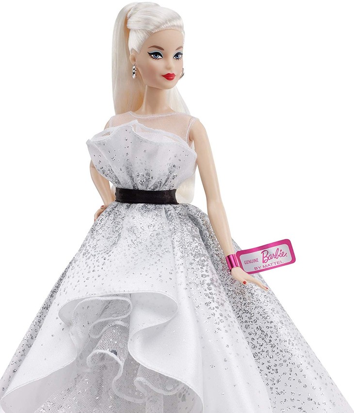 这是芭比在2019年为60周年纪念推出的特别款。经典的盘头长发,高雅的礼服长裙。裙上有颜色和钻石般的闪耀,凸显高贵。带有正品证书。