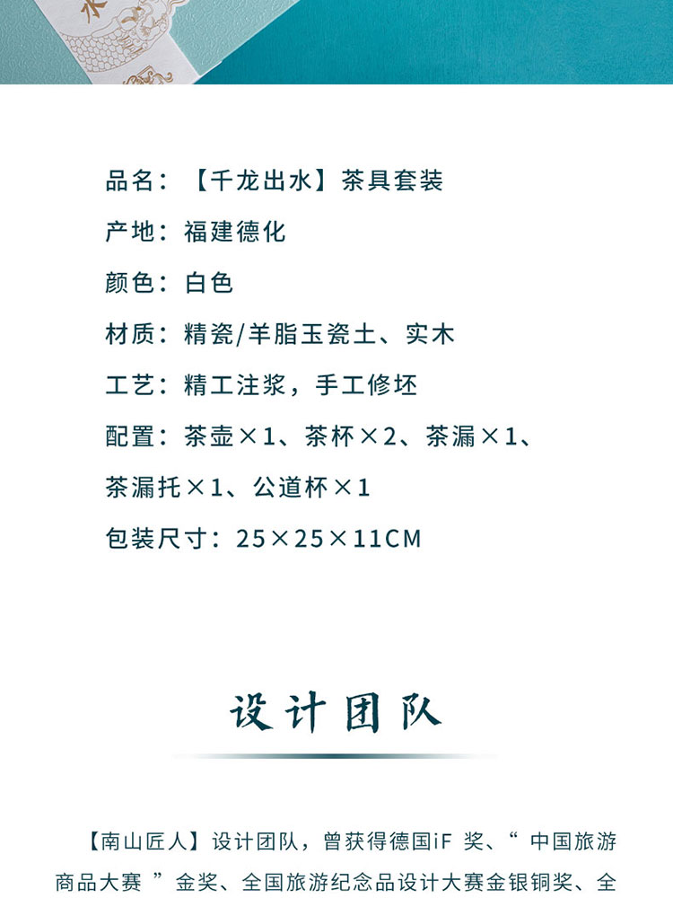 【采购专享】宫里的世界&南山匠人 千龙出水茶具套装精瓷 一壶两杯一公道杯