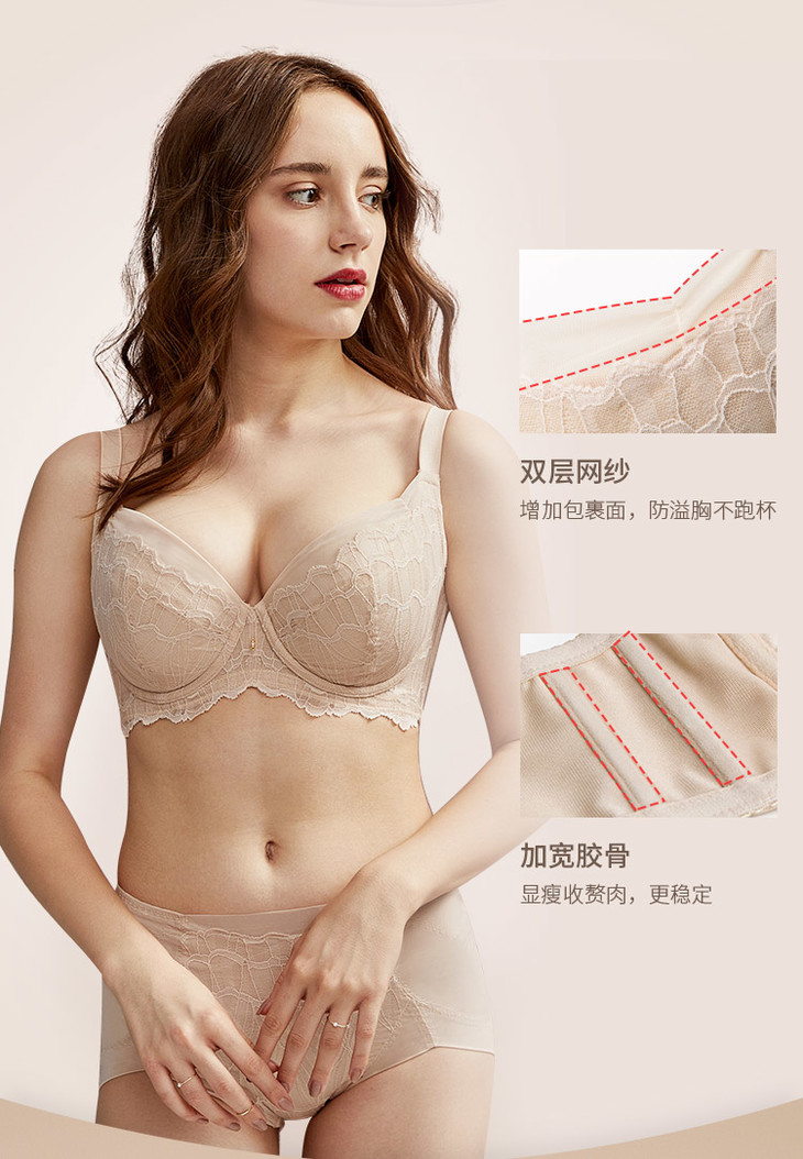 [嫣语]大胸显小全罩杯法式深V蕾丝性感文胸