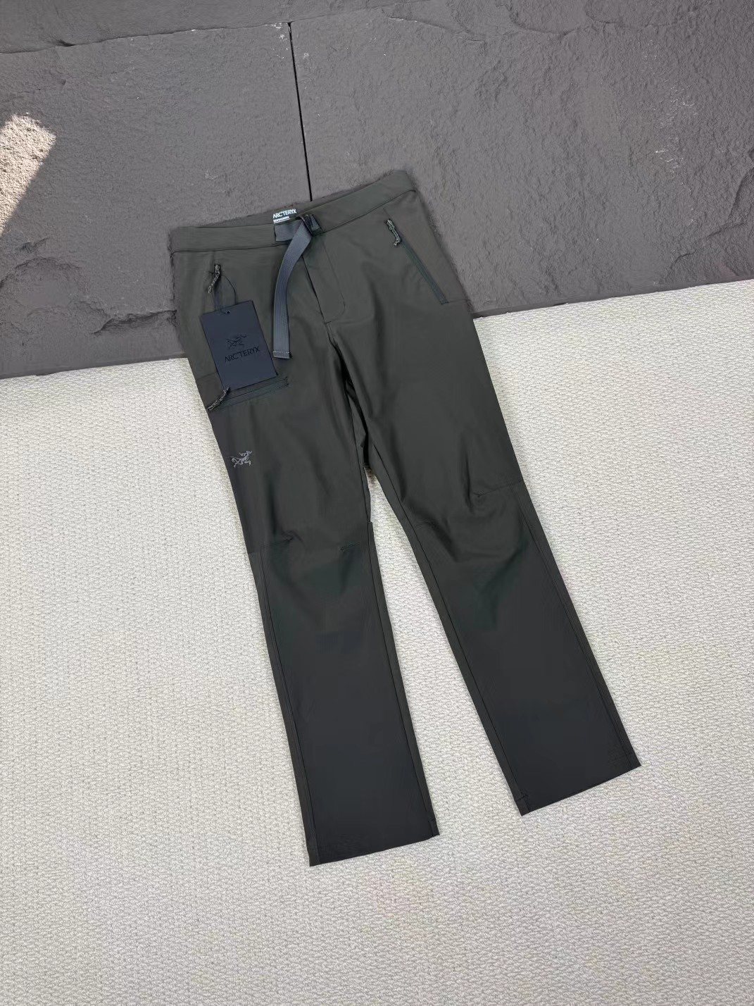 微抛袋户腰带外休闲裤,采用防泼水的弹力尼龙氨纶进口面料。胯部三角接片设计,可增强活动灵活性和舒适性,整体剪裁采用了立体结构剪裁,符合人体工学,在穿着时更加灵活自如。前面三个拉链斜插口袋,完全满足了平时的收纳功能,门襟则采用了防翘起设计,避免了在穿着时门襟角翘起的尴尬。