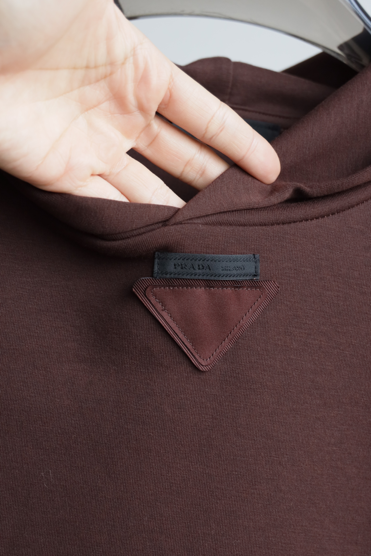 P.R.D 25秋季新款 可可棕 领布标丝光宽松连帽卫衣