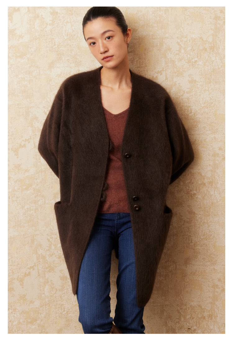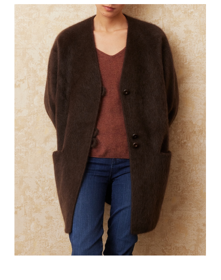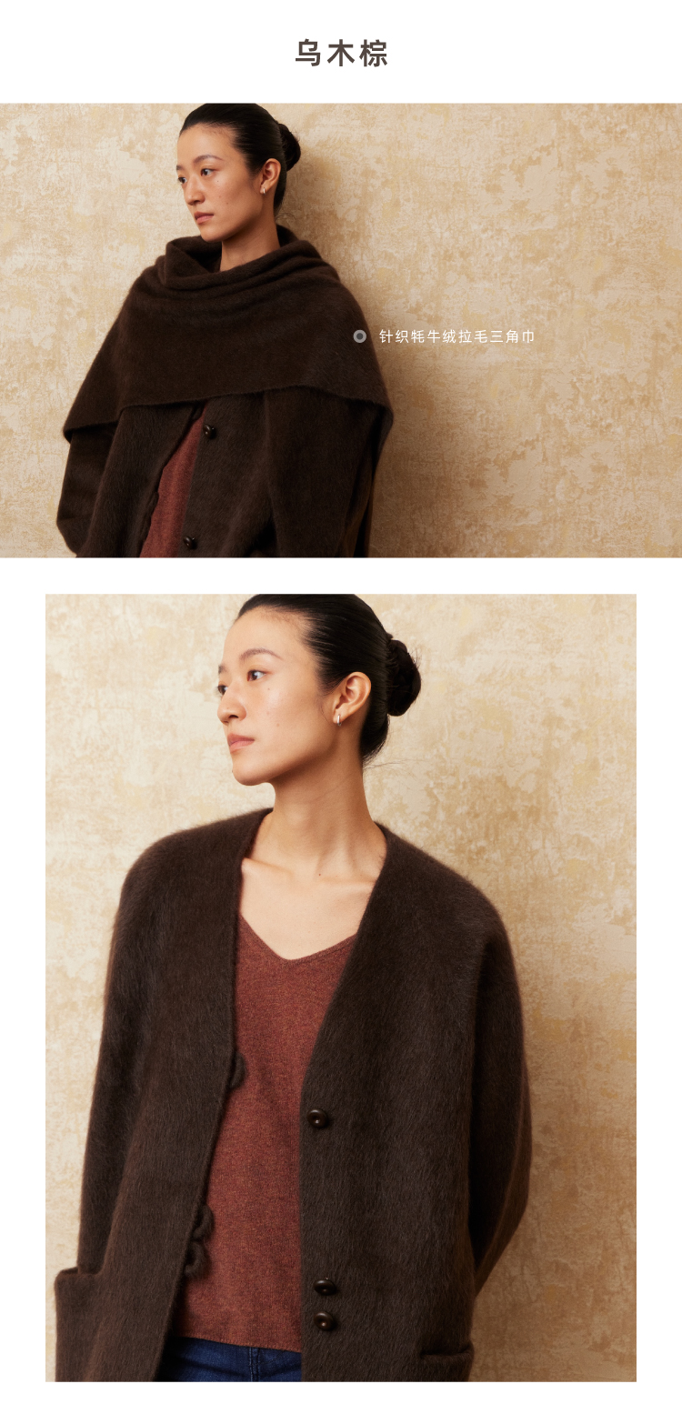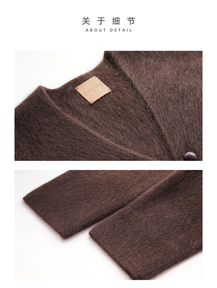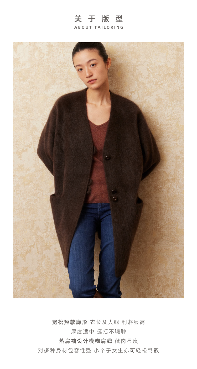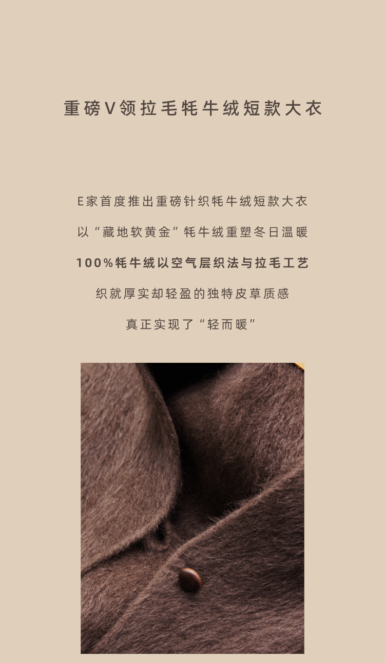 重磅V领拉毛牦牛绒短款大衣