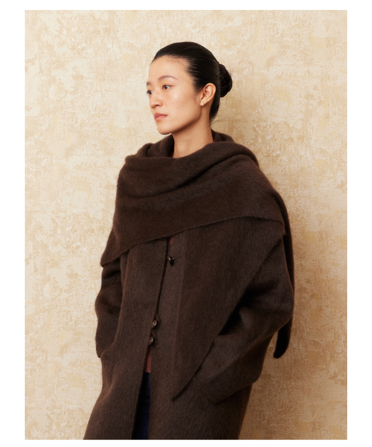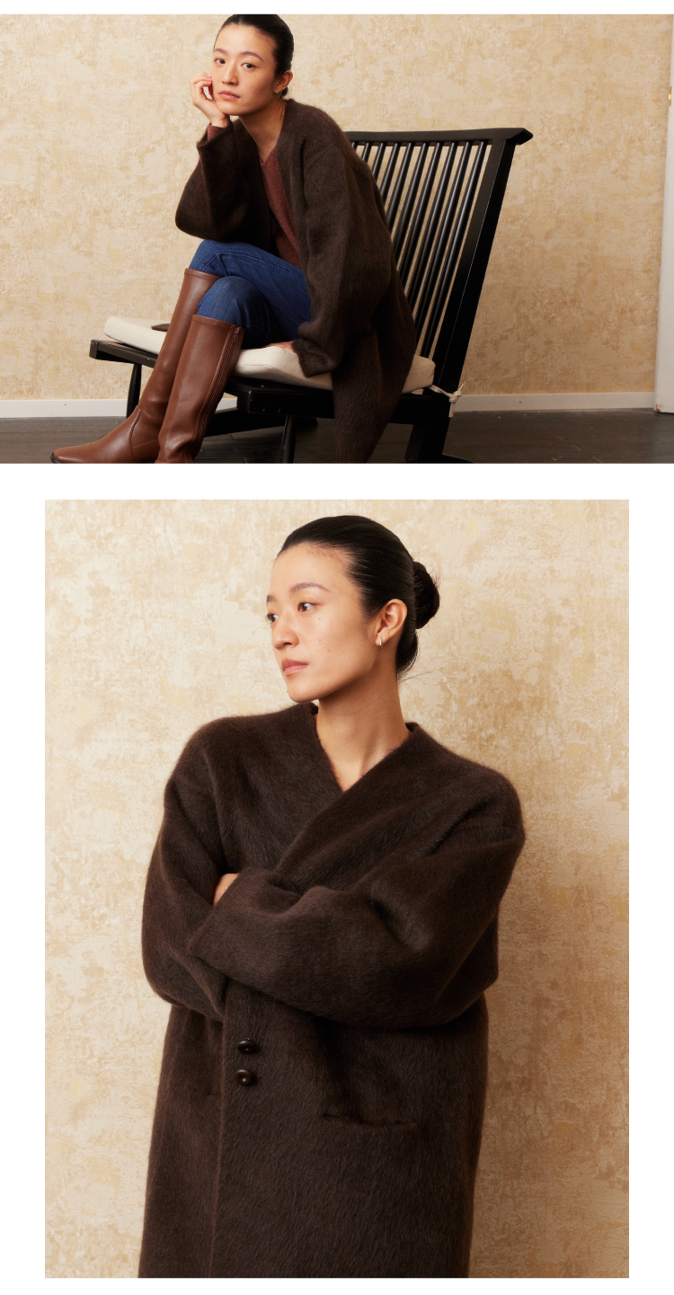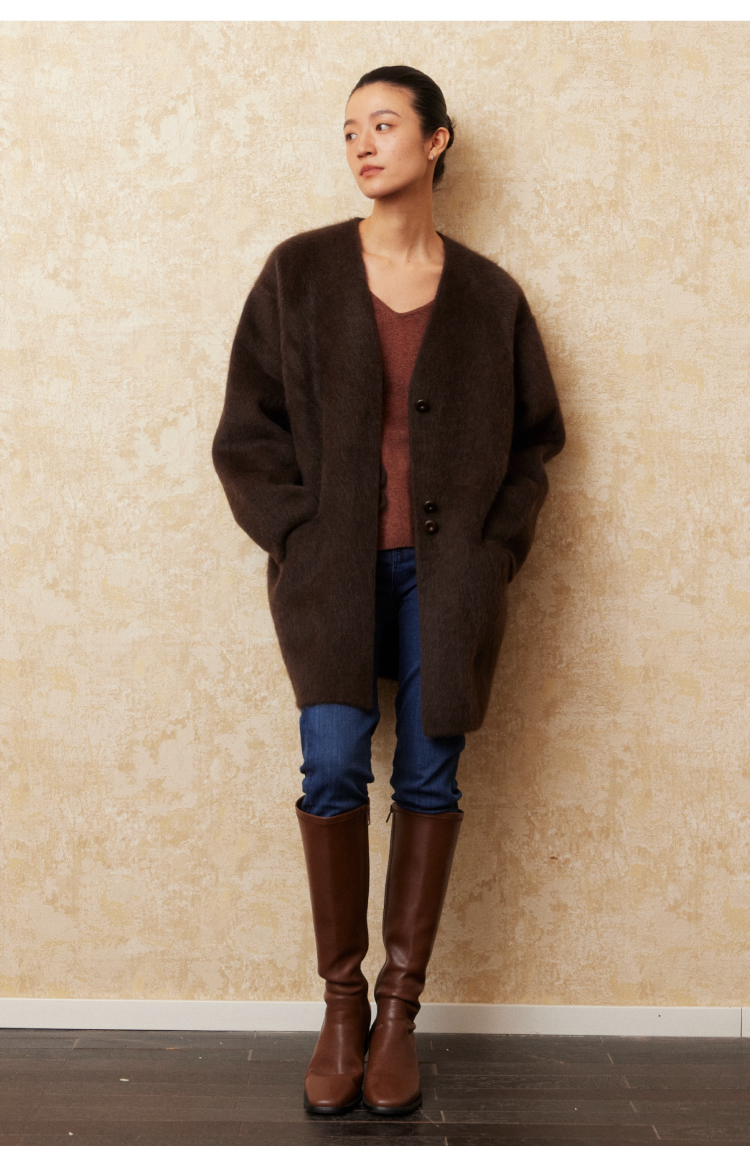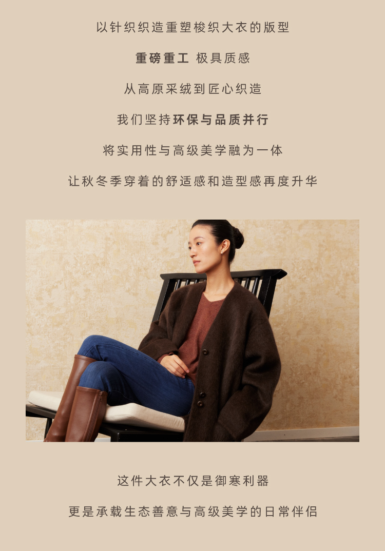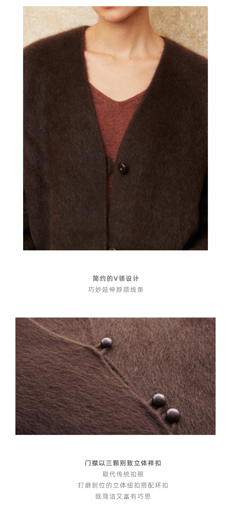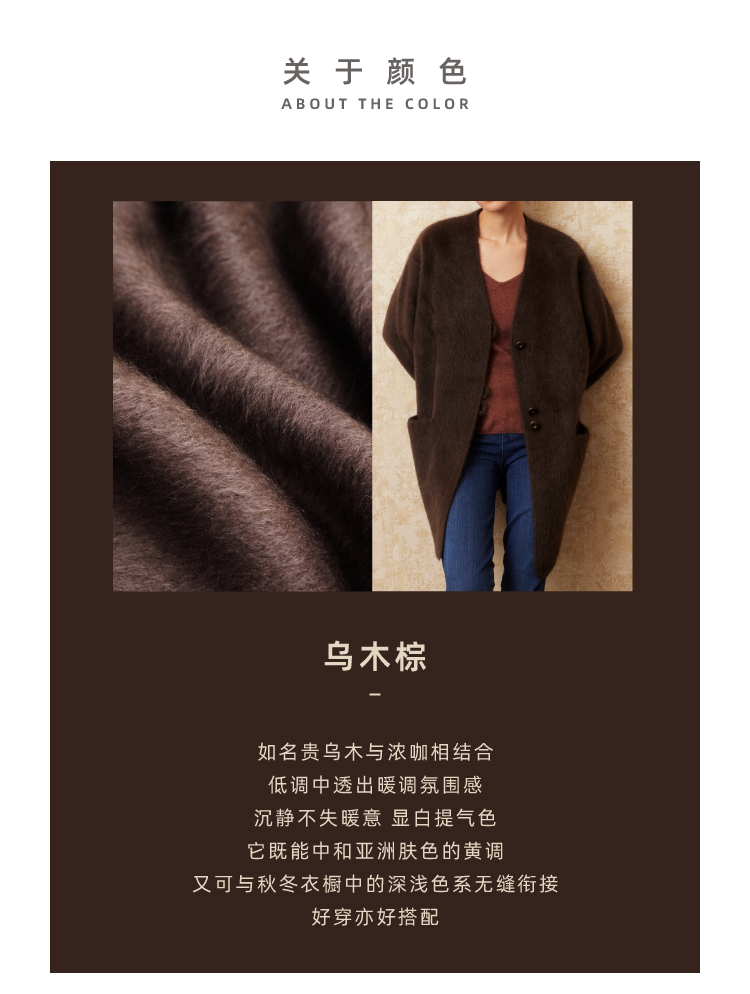 重磅V领拉毛牦牛绒短款大衣