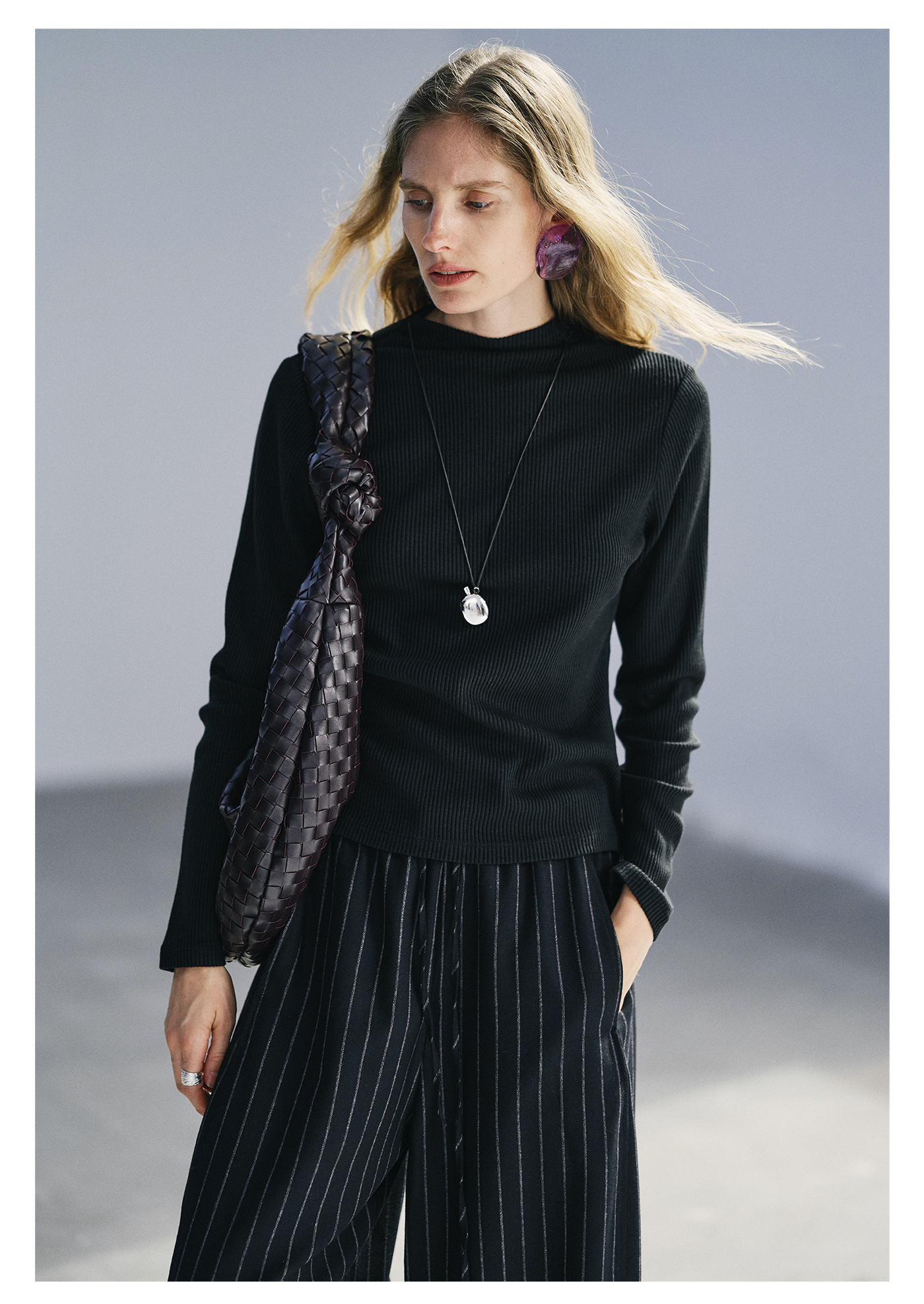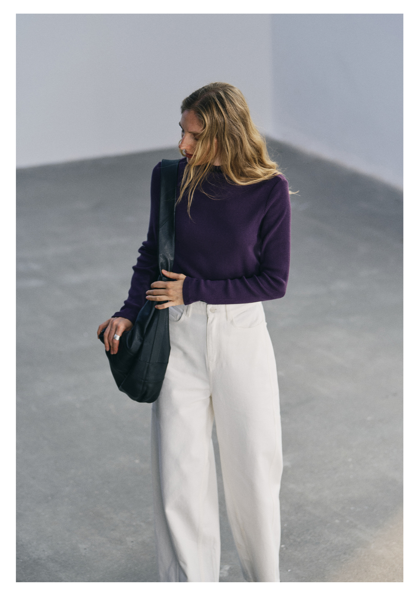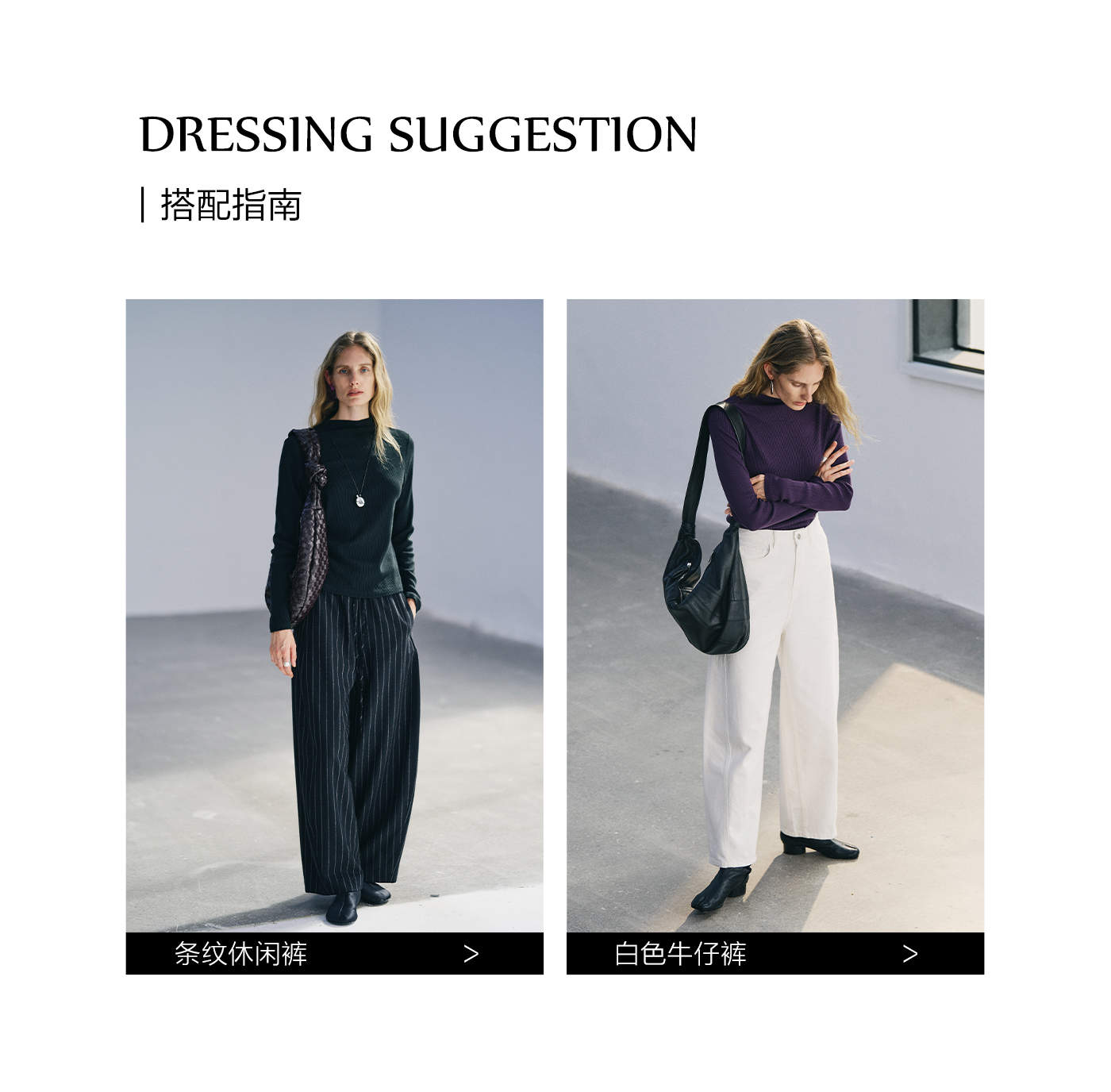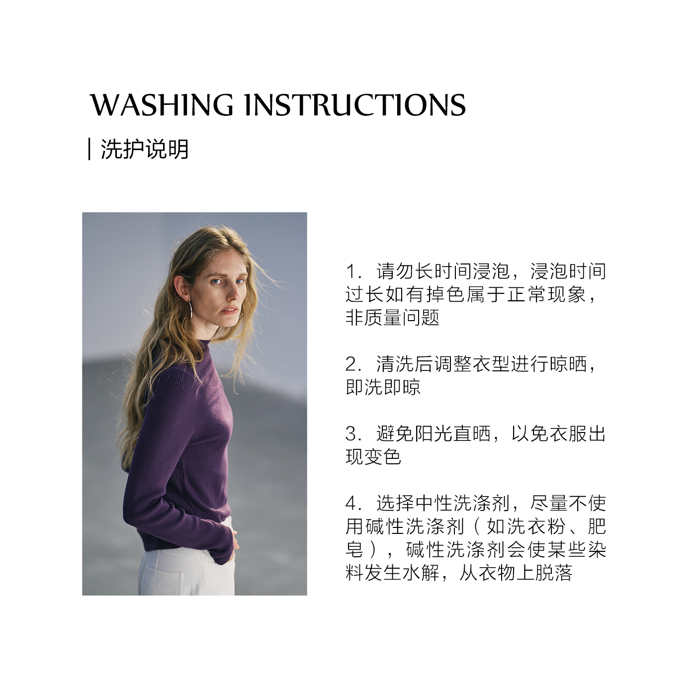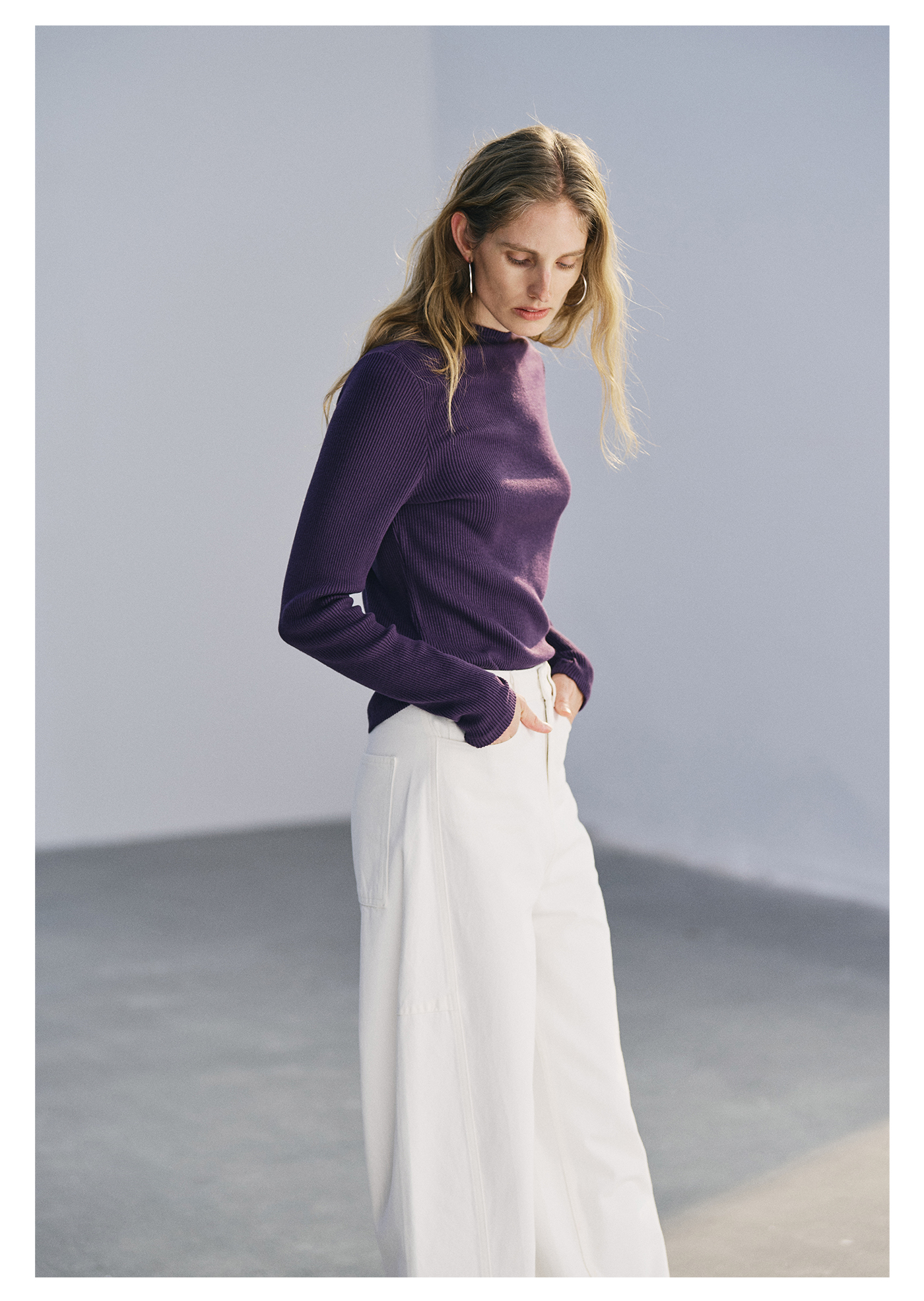 棉仓3661501012-半高领坑条打底衫女 25秋冬紫色修身长袖T恤内搭