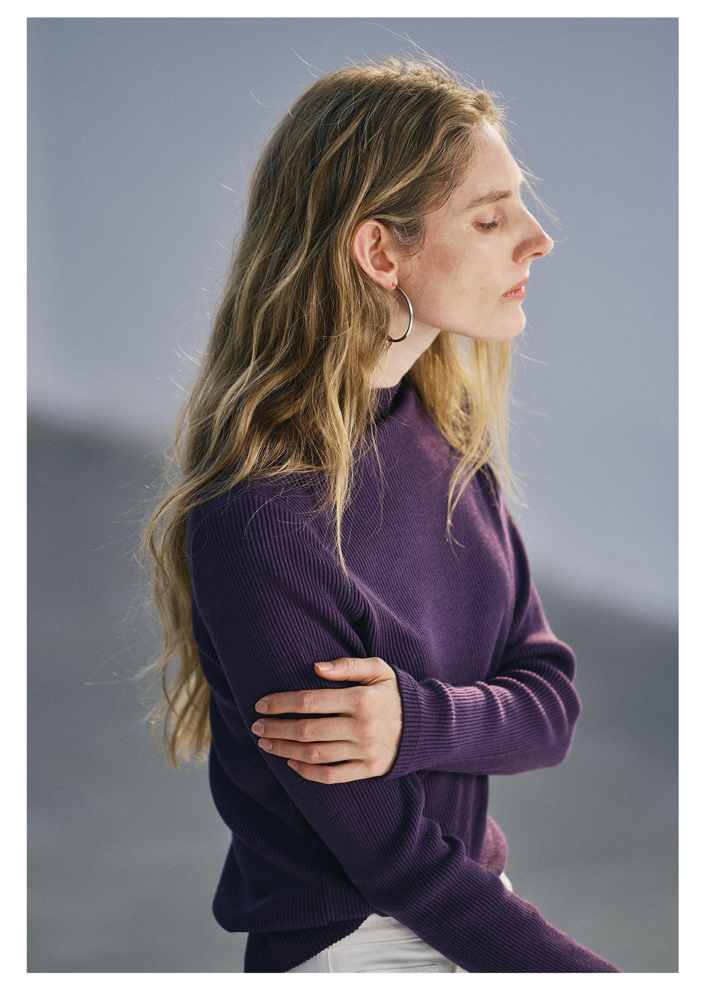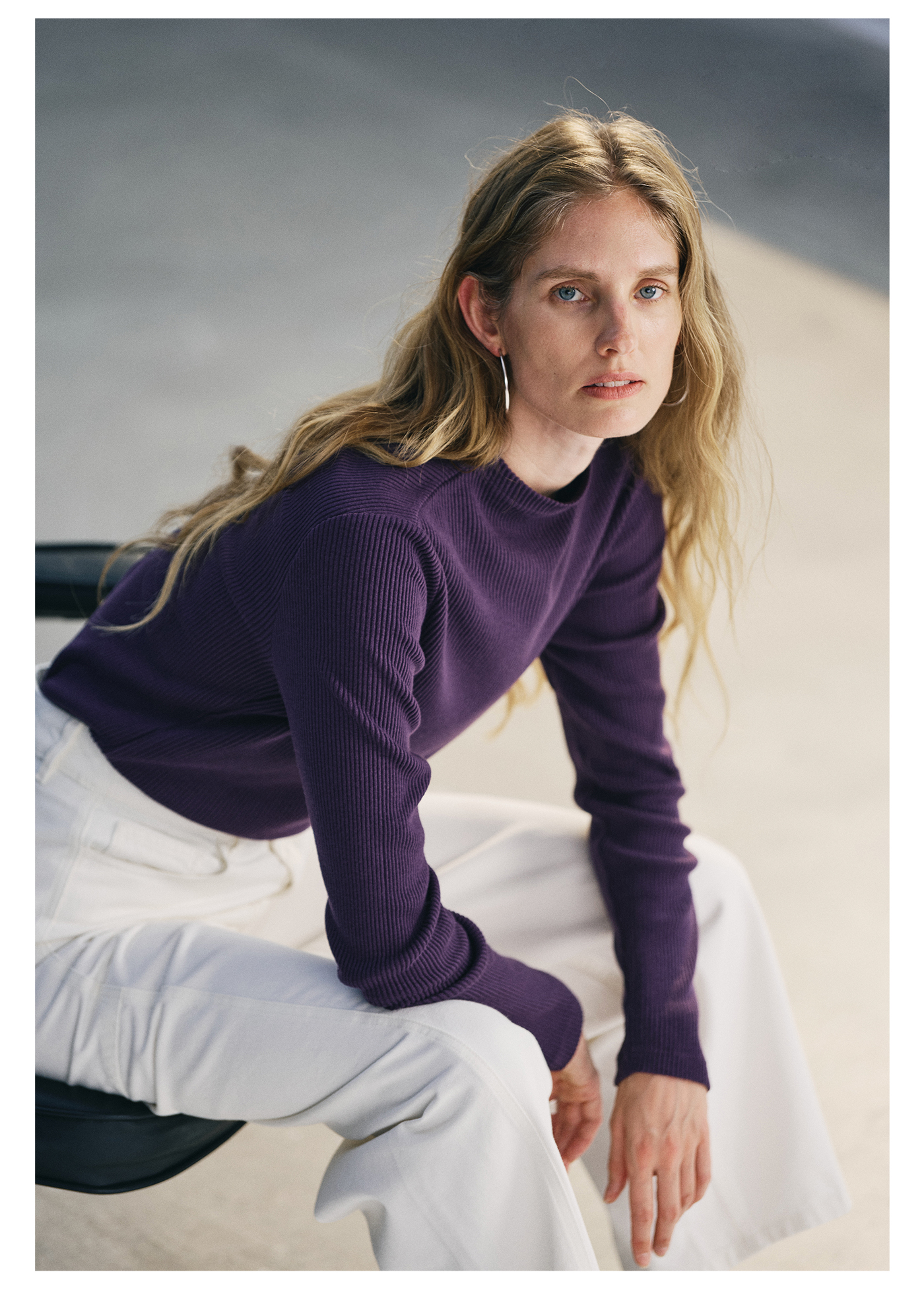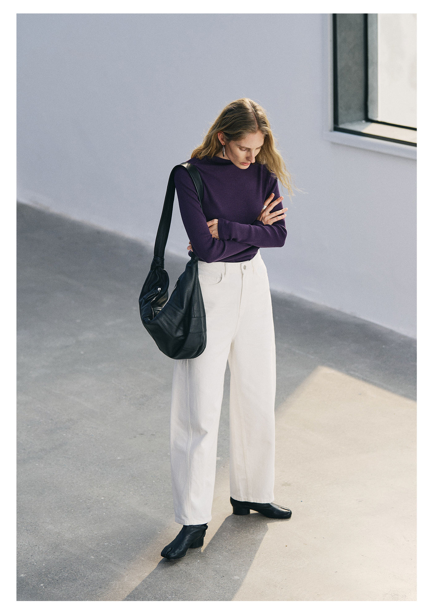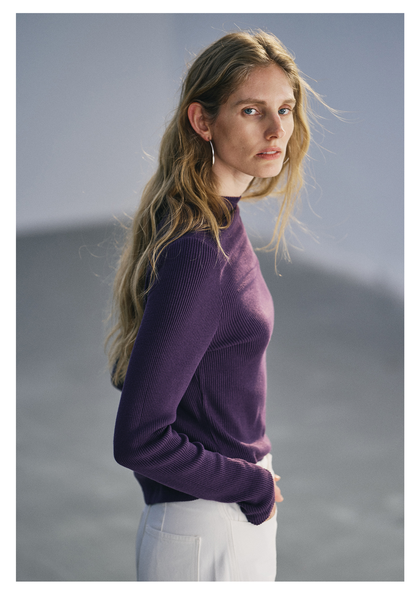 棉仓3661501012-半高领坑条打底衫女 25秋冬紫色修身长袖T恤内搭