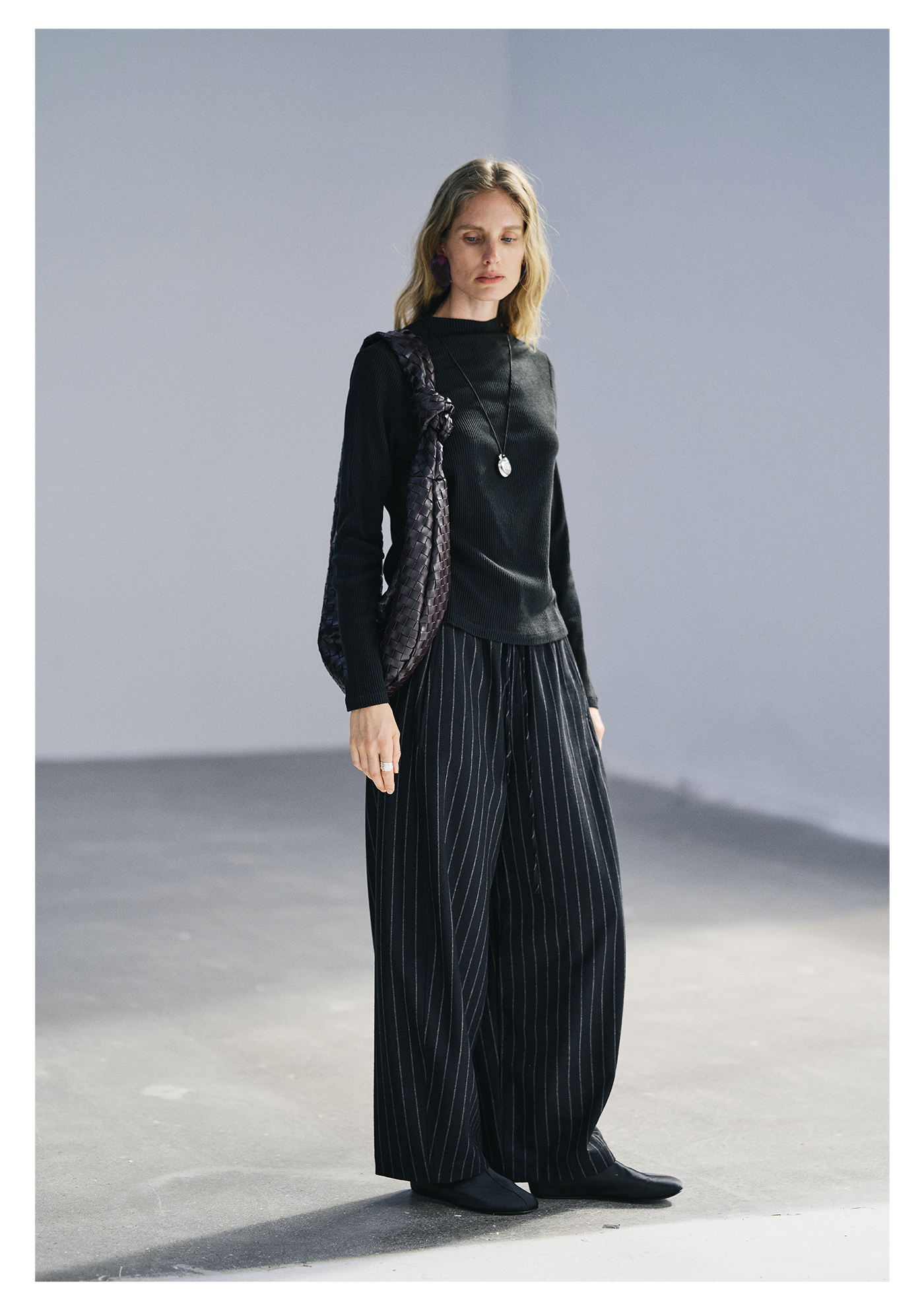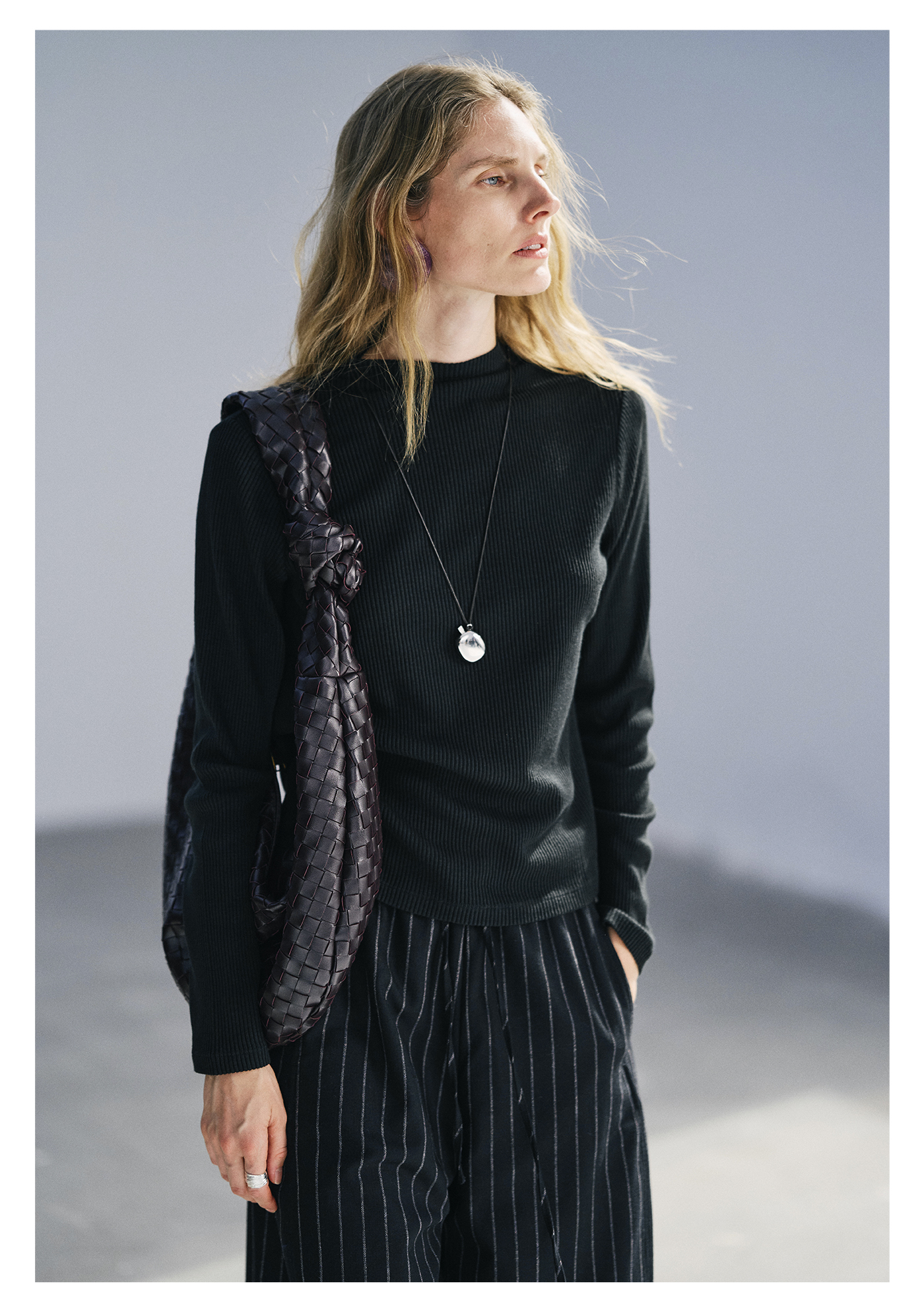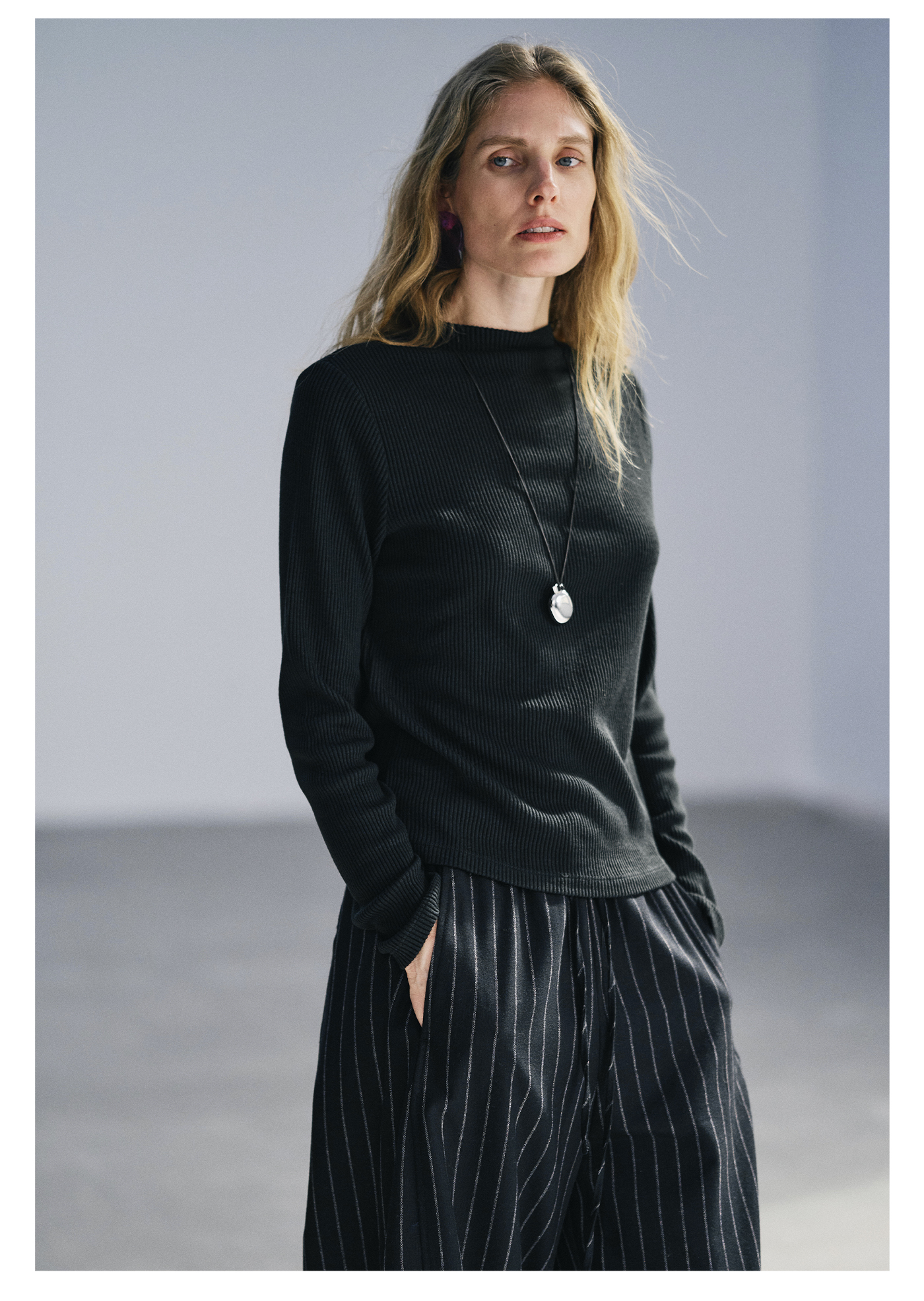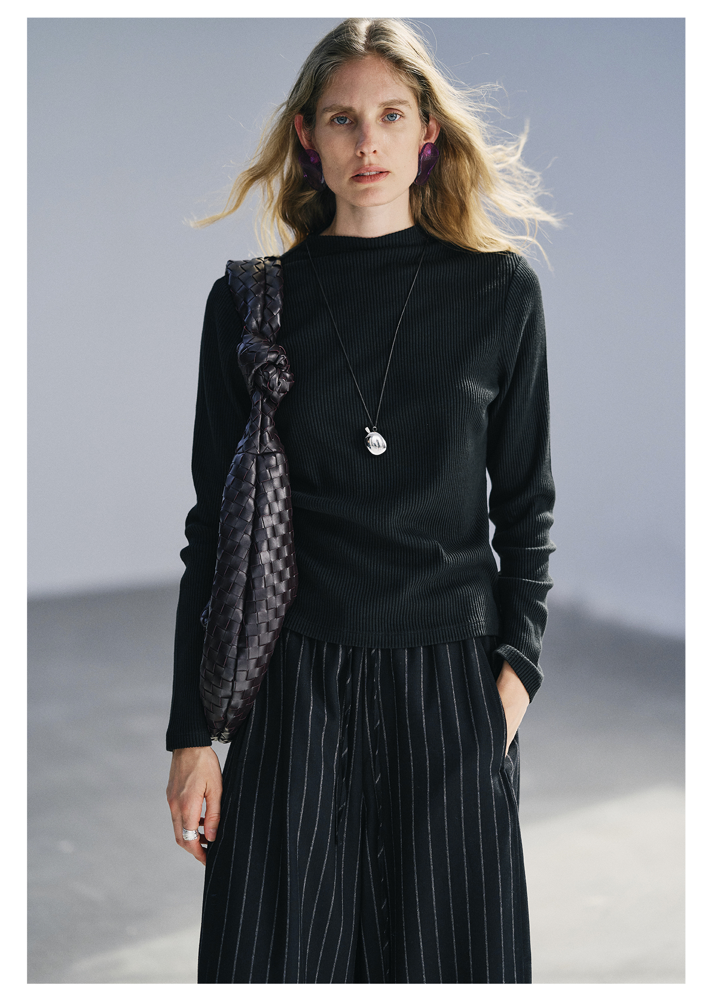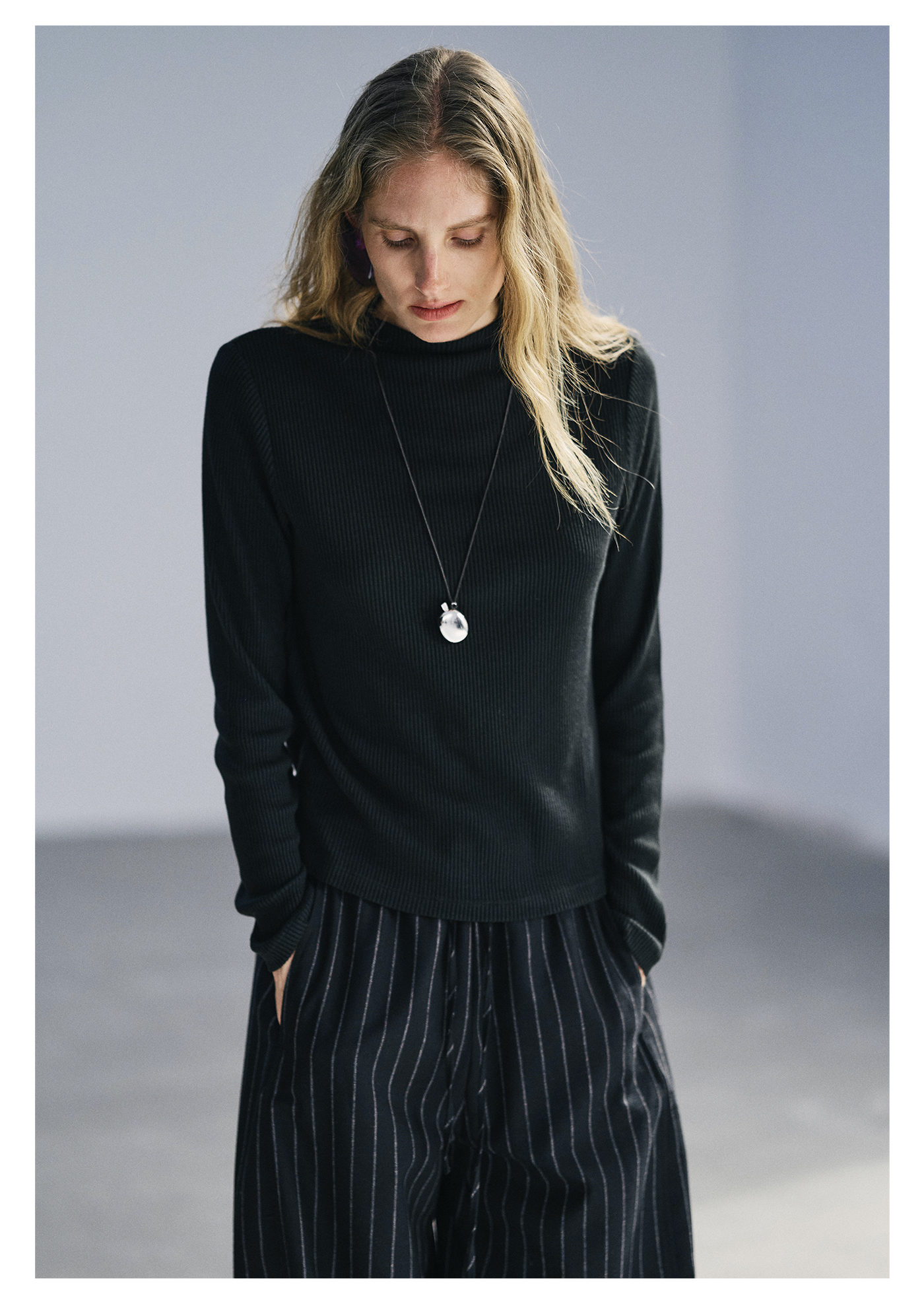 棉仓3661501012-半高领坑条打底衫女 25秋冬紫色修身长袖T恤内搭