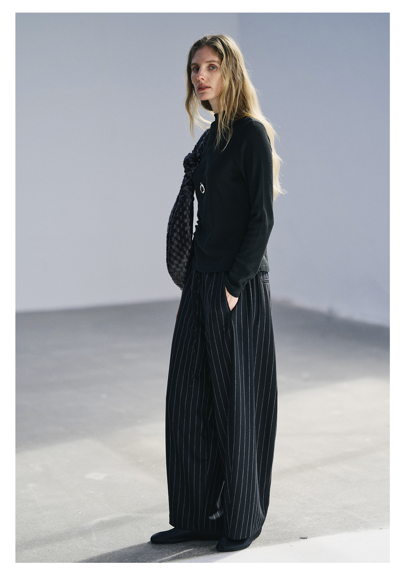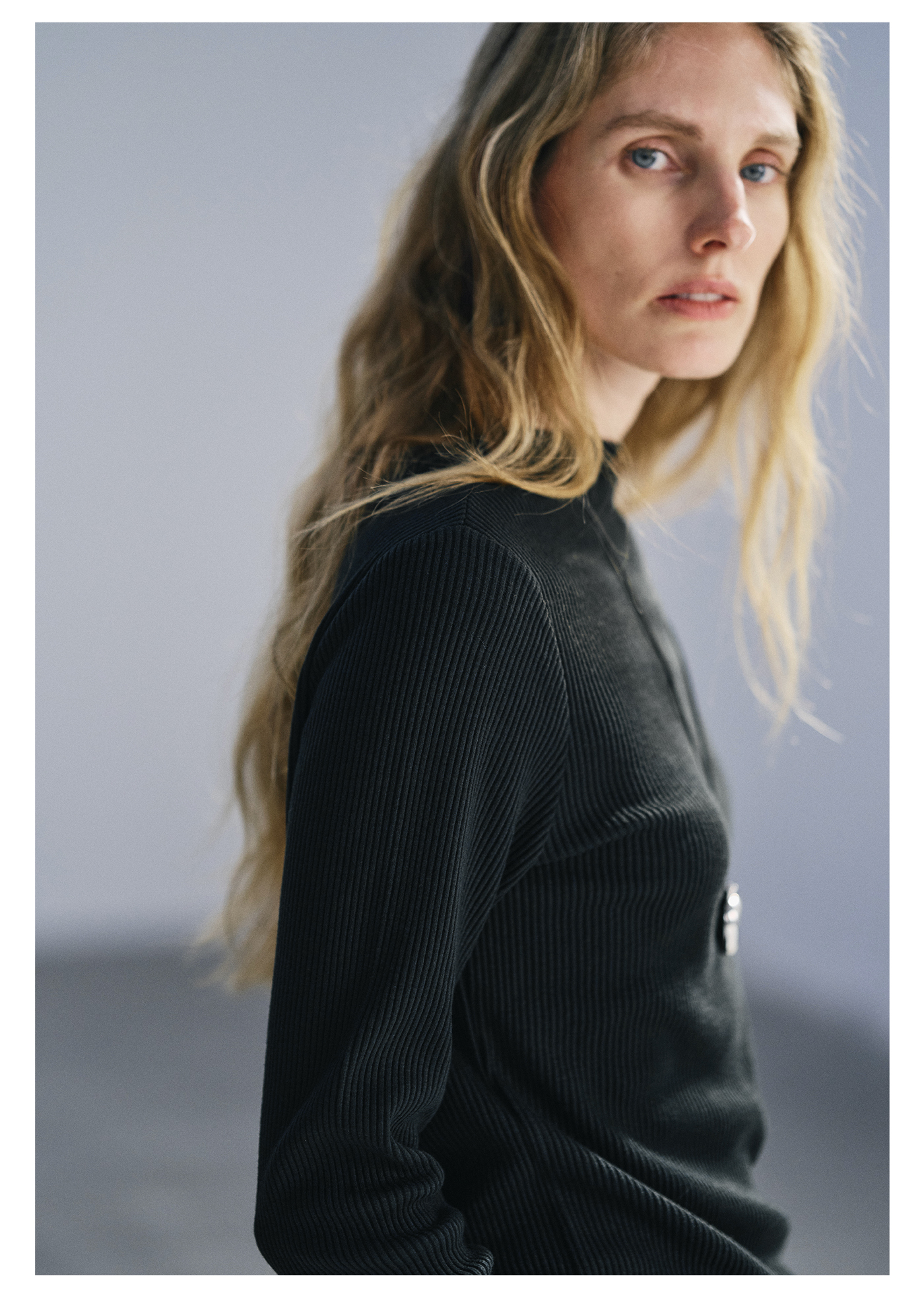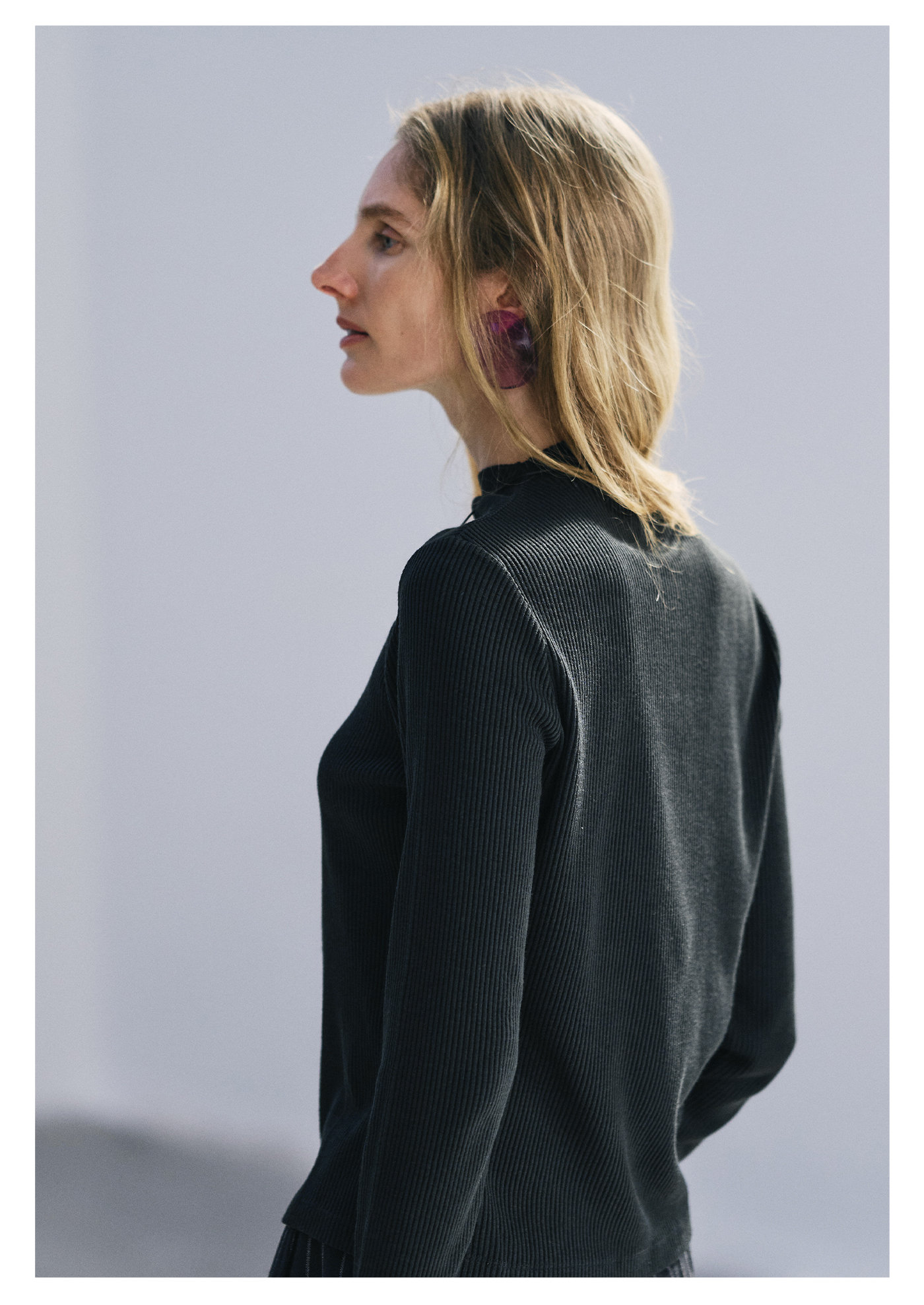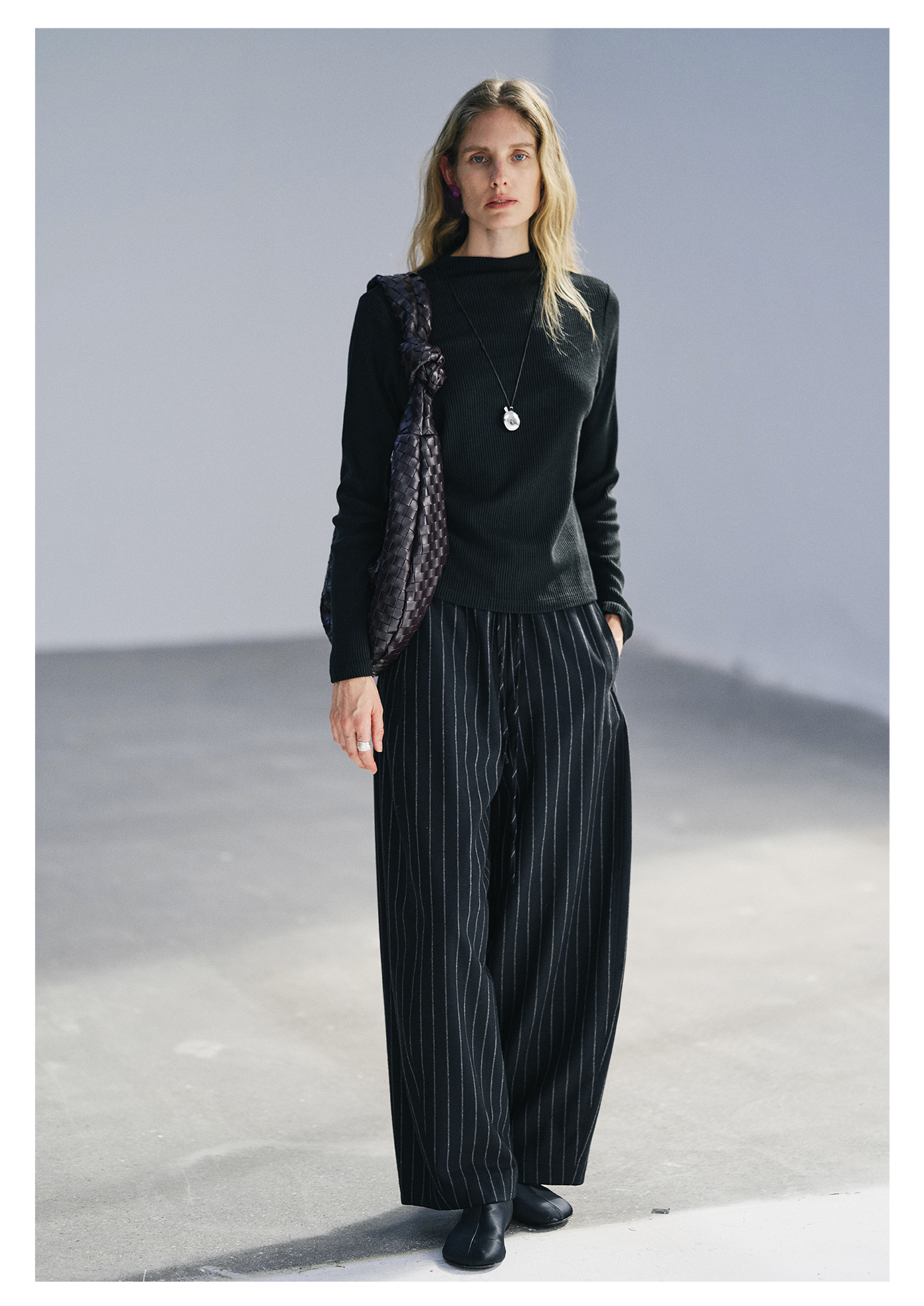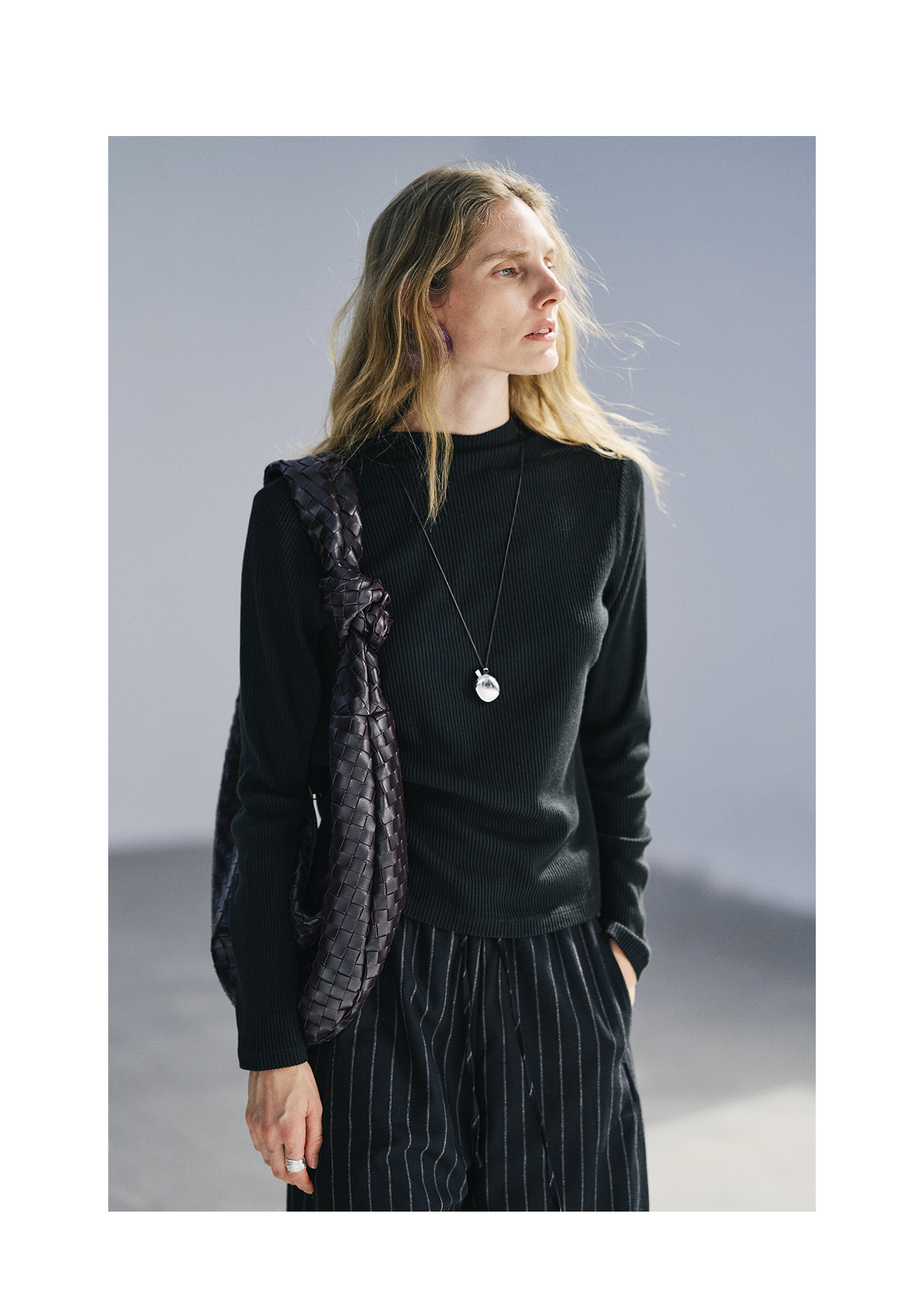 棉仓3661501012-半高领坑条打底衫女 25秋冬紫色修身长袖T恤内搭