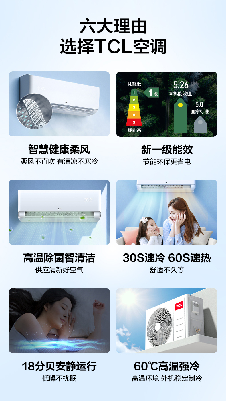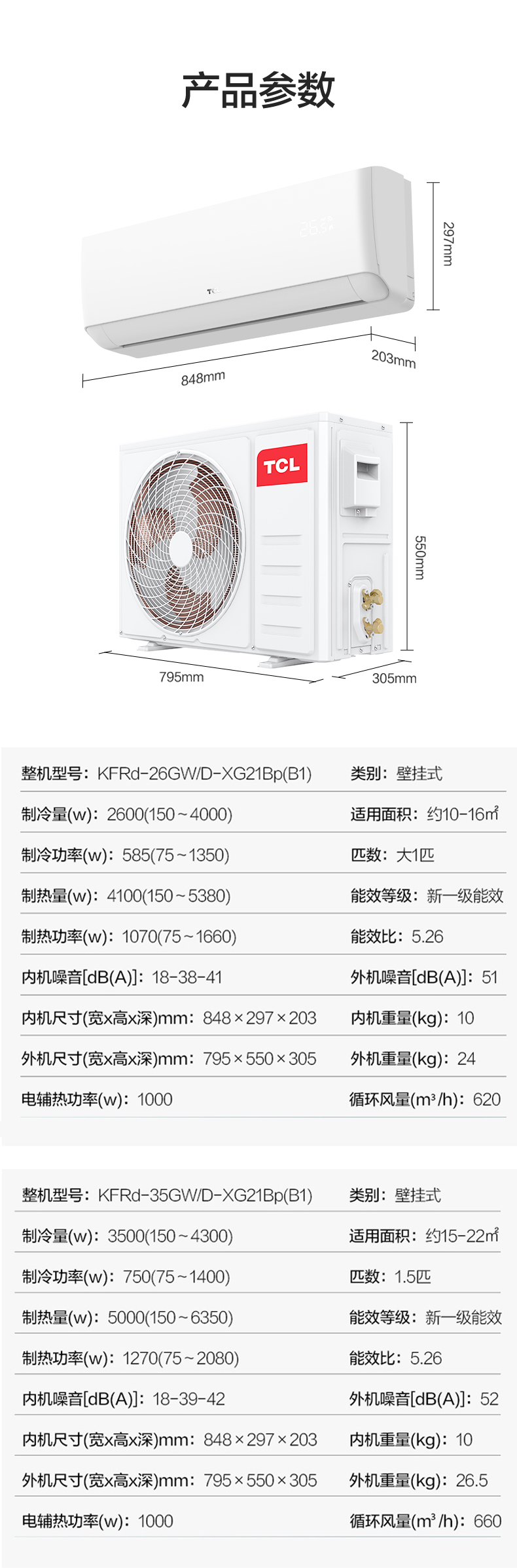 【TCL空调】TCLKFRd-35GW/D-XG21Bp(B1)1.5匹一级变频智能凉感柔风壁挂式空调挂机