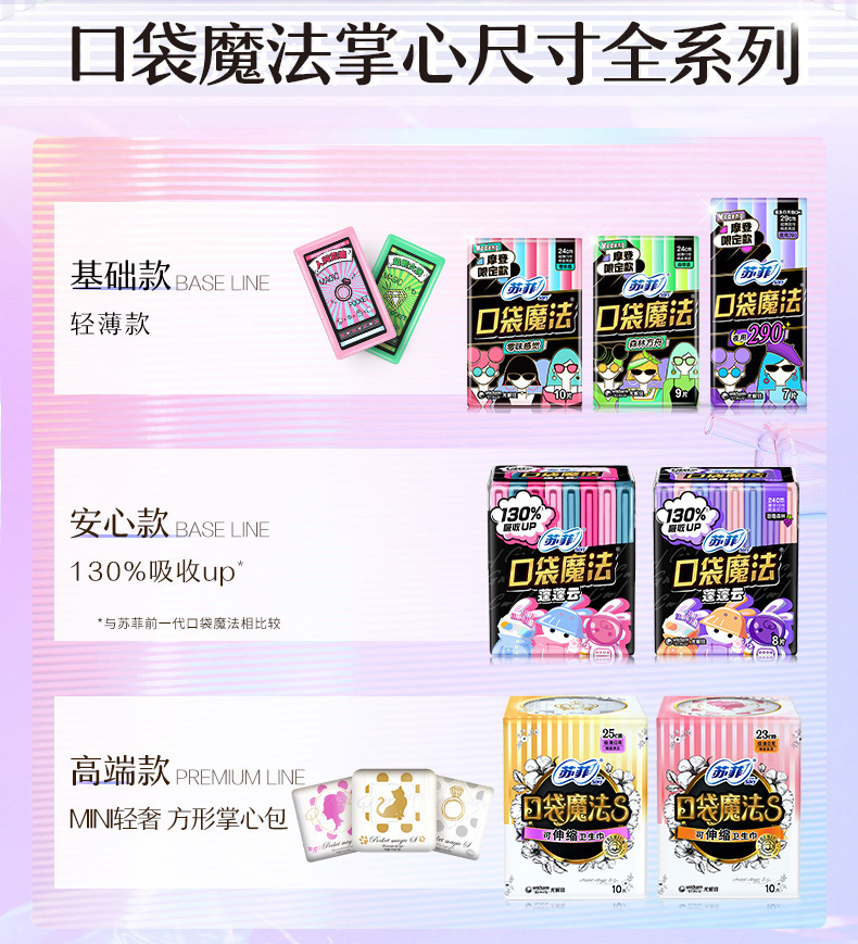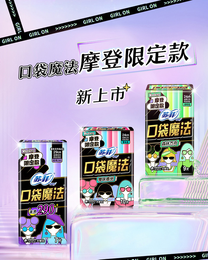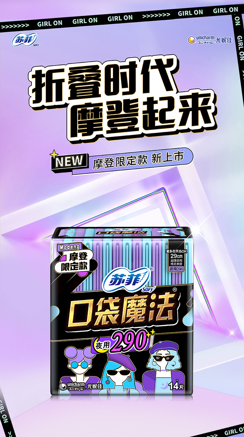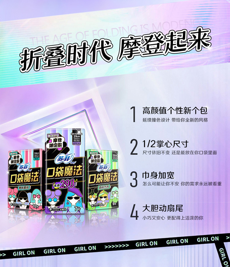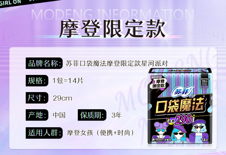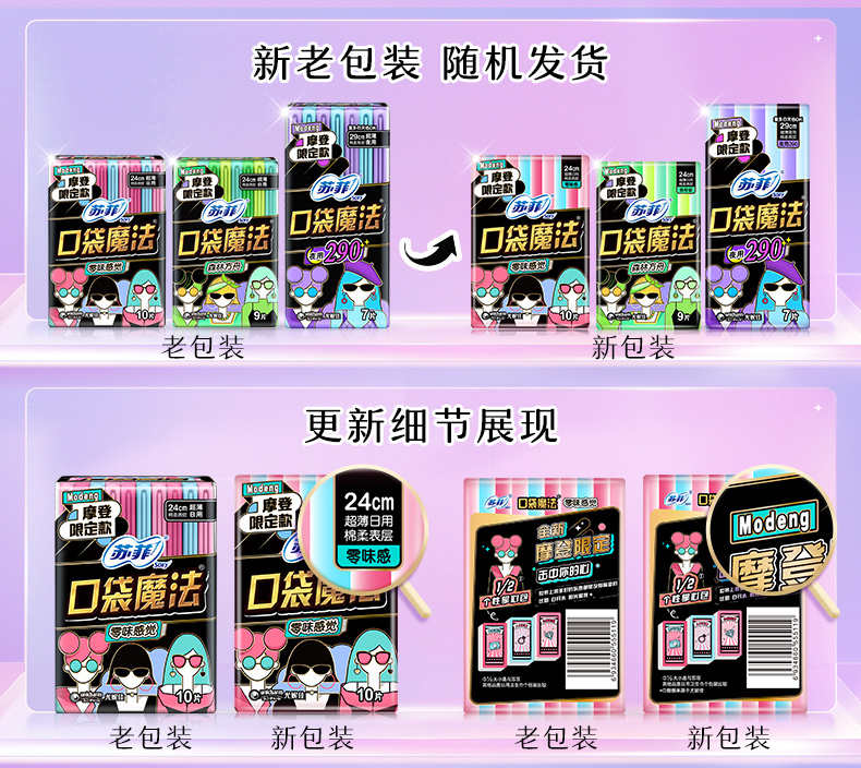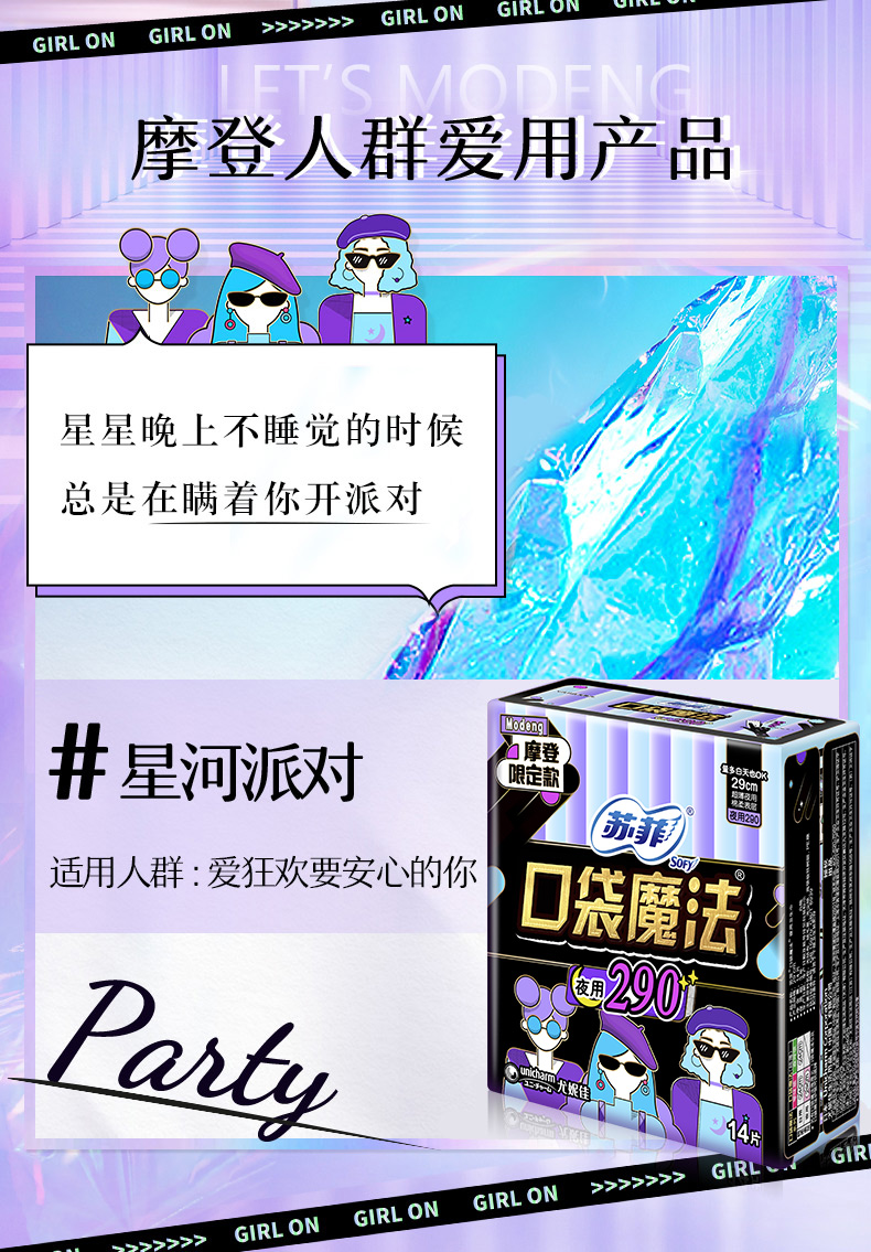 苏菲口袋魔法卫生巾290mm棉柔夜用7片零味感姨妈巾
