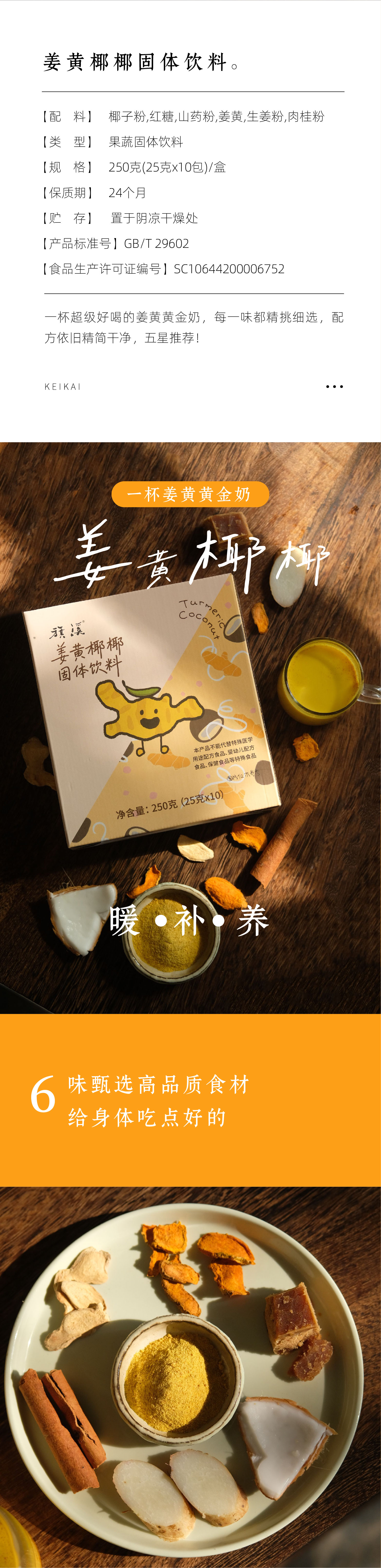 姜黄椰椰固体饮料25g*10【基地直发】| 产地:广东广州 | 生产者:旗溪【公平贸易农人定价】