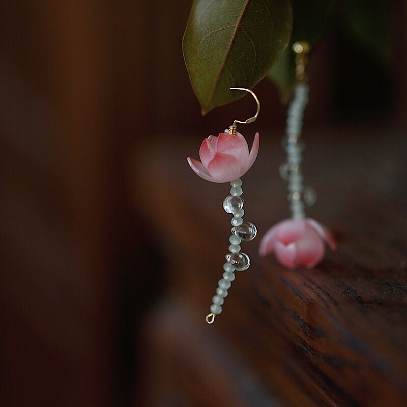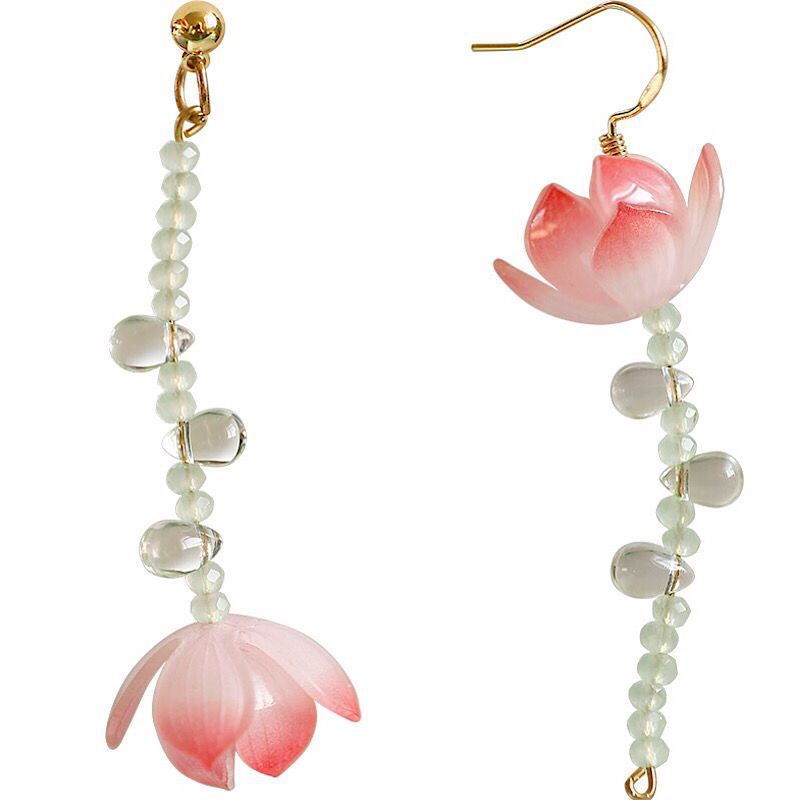 疏雨小荷丨软语文艺古典不对称荷花仿S925纯银耳针耳坠古风礼物女