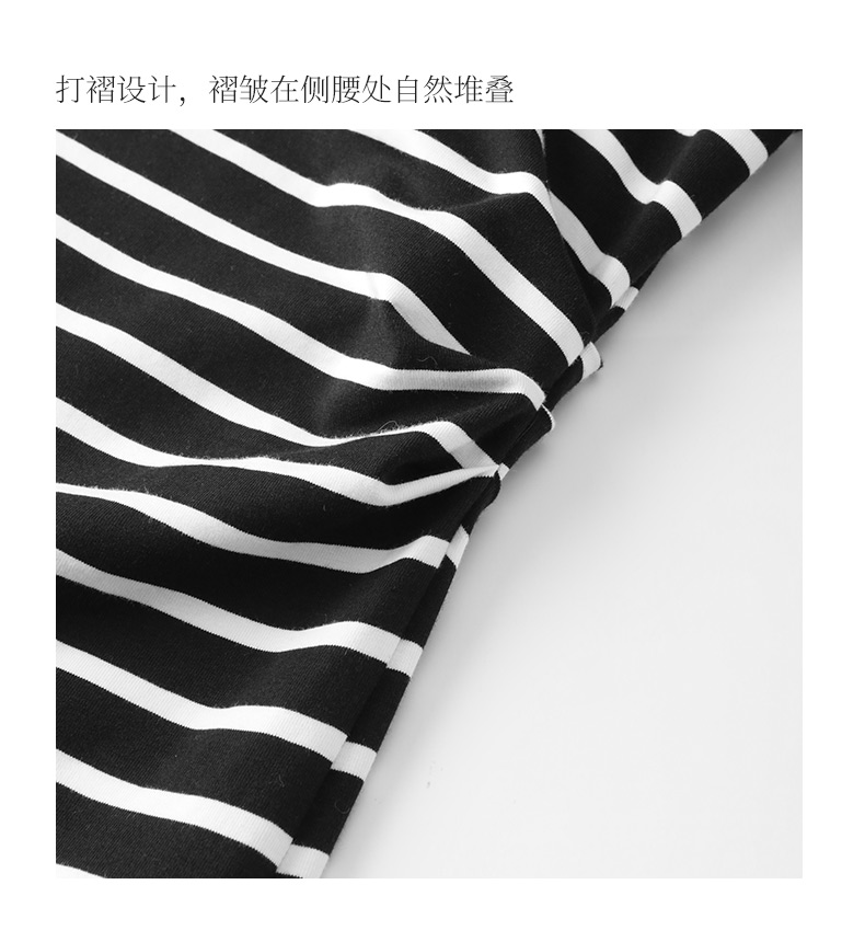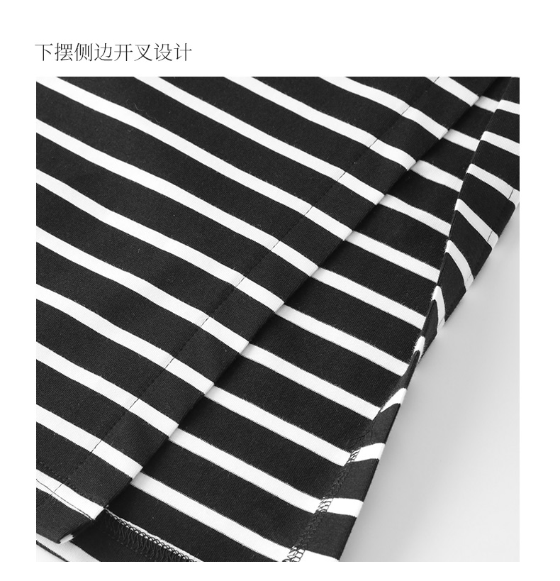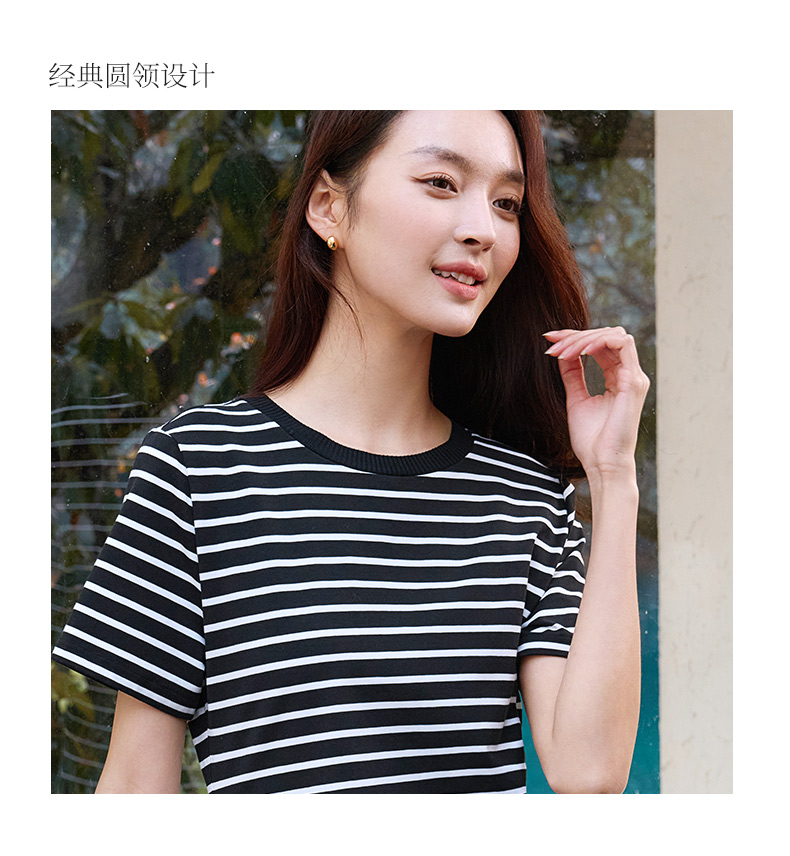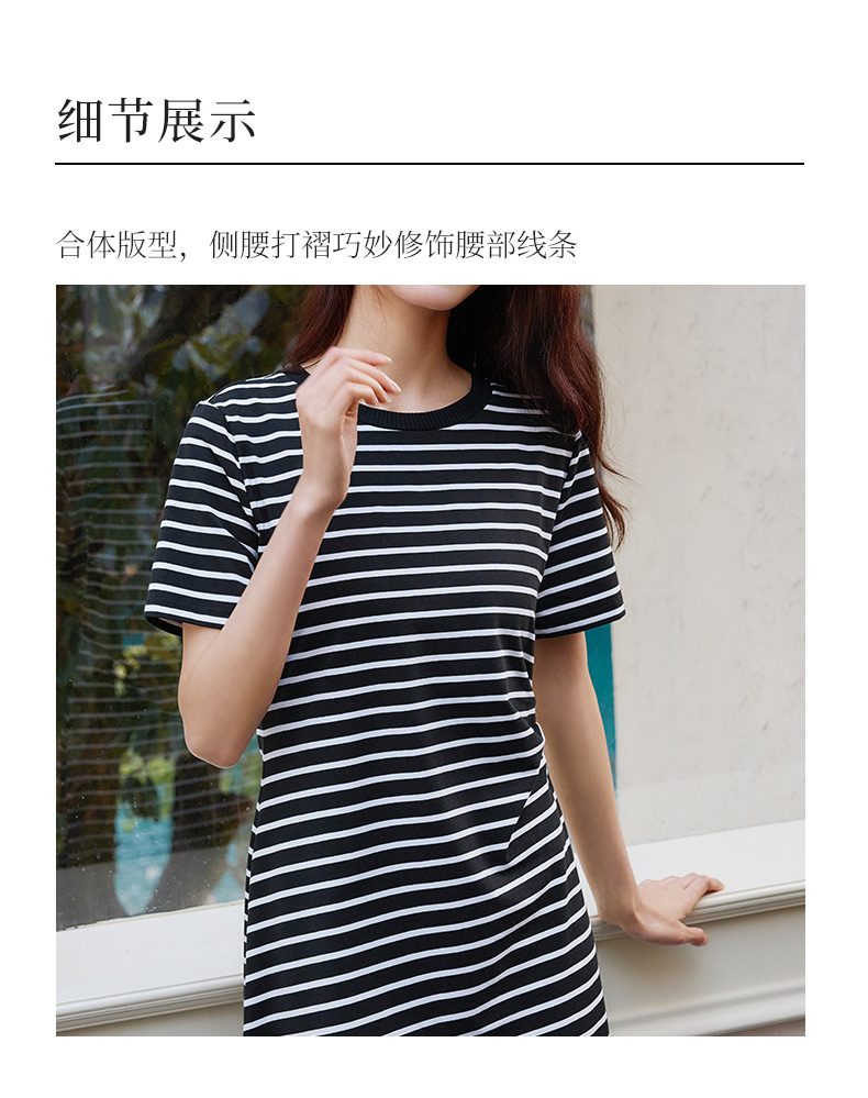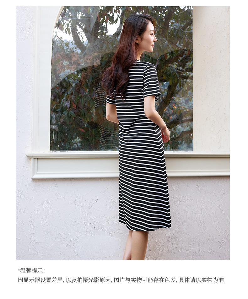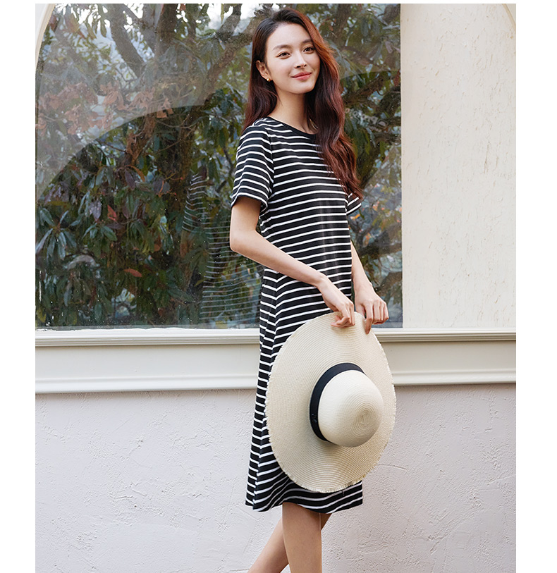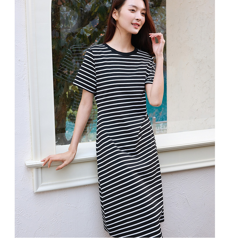 玳莎黑白条纹连衣裙2025夏季新款宽松显瘦休闲百搭短袖圆领中长裙 FB35101