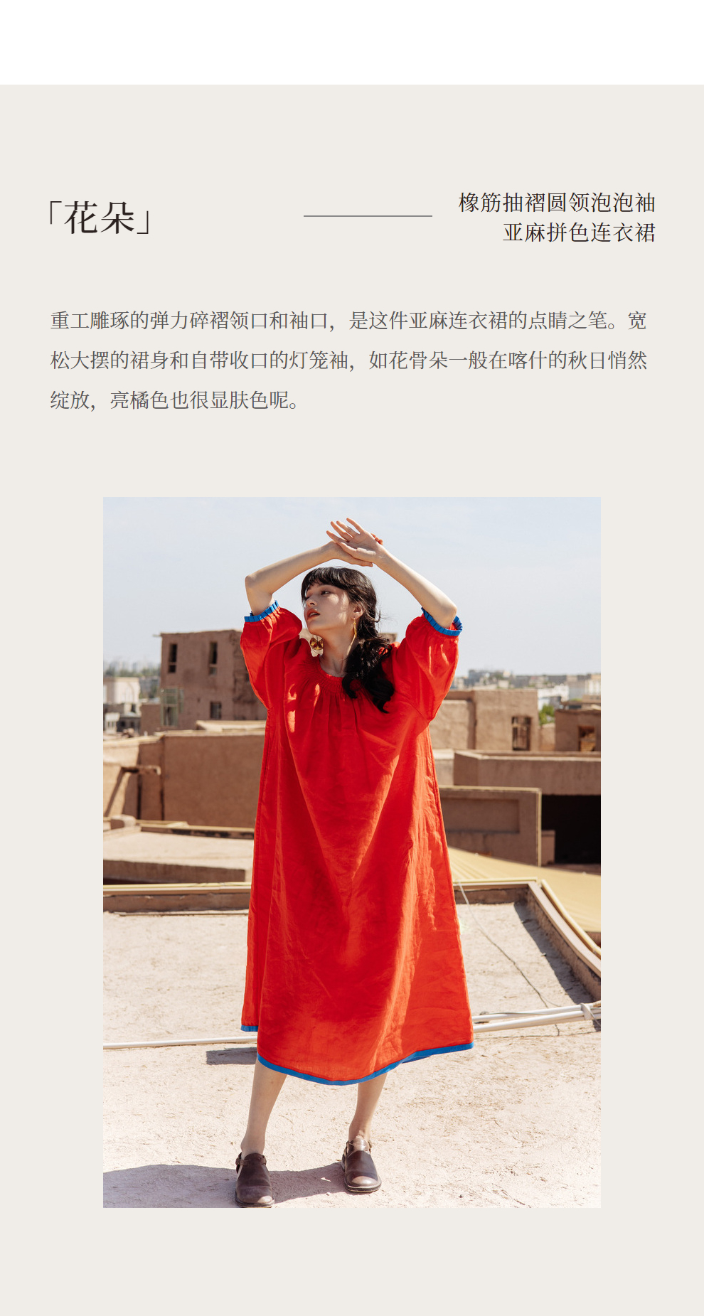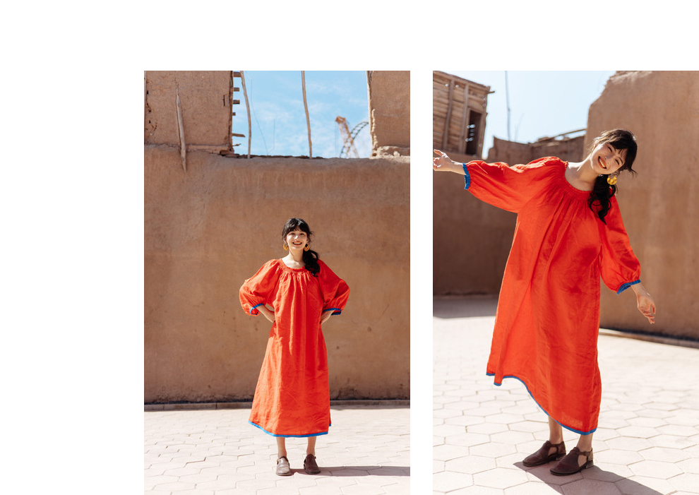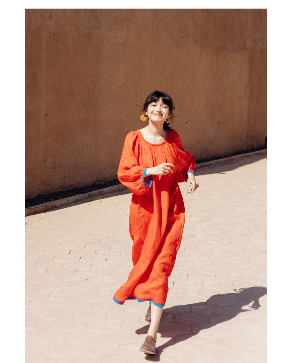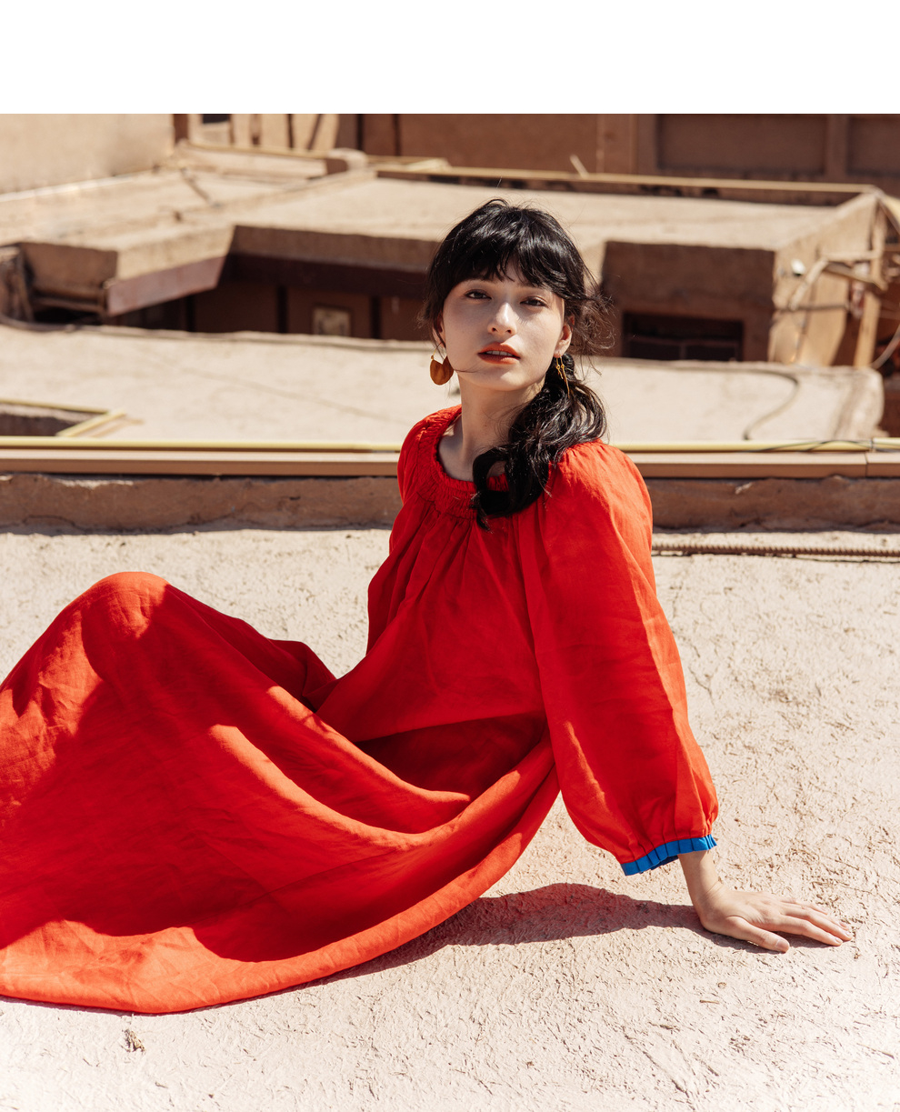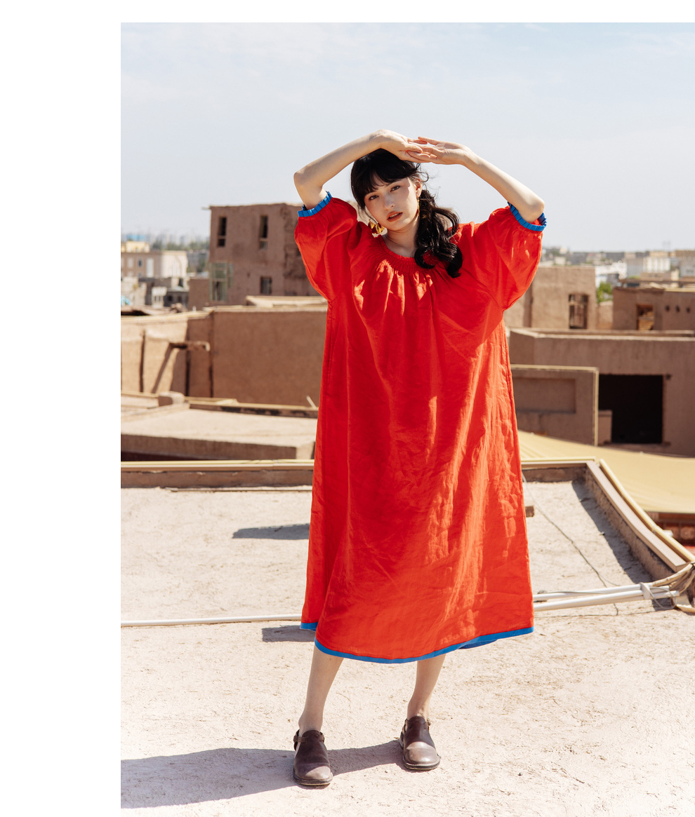 以天然亚麻为载体,融合热烈色彩与自在剪裁为身在城市、心怀远方的女性提供兼具美学与舒适的旅行着装