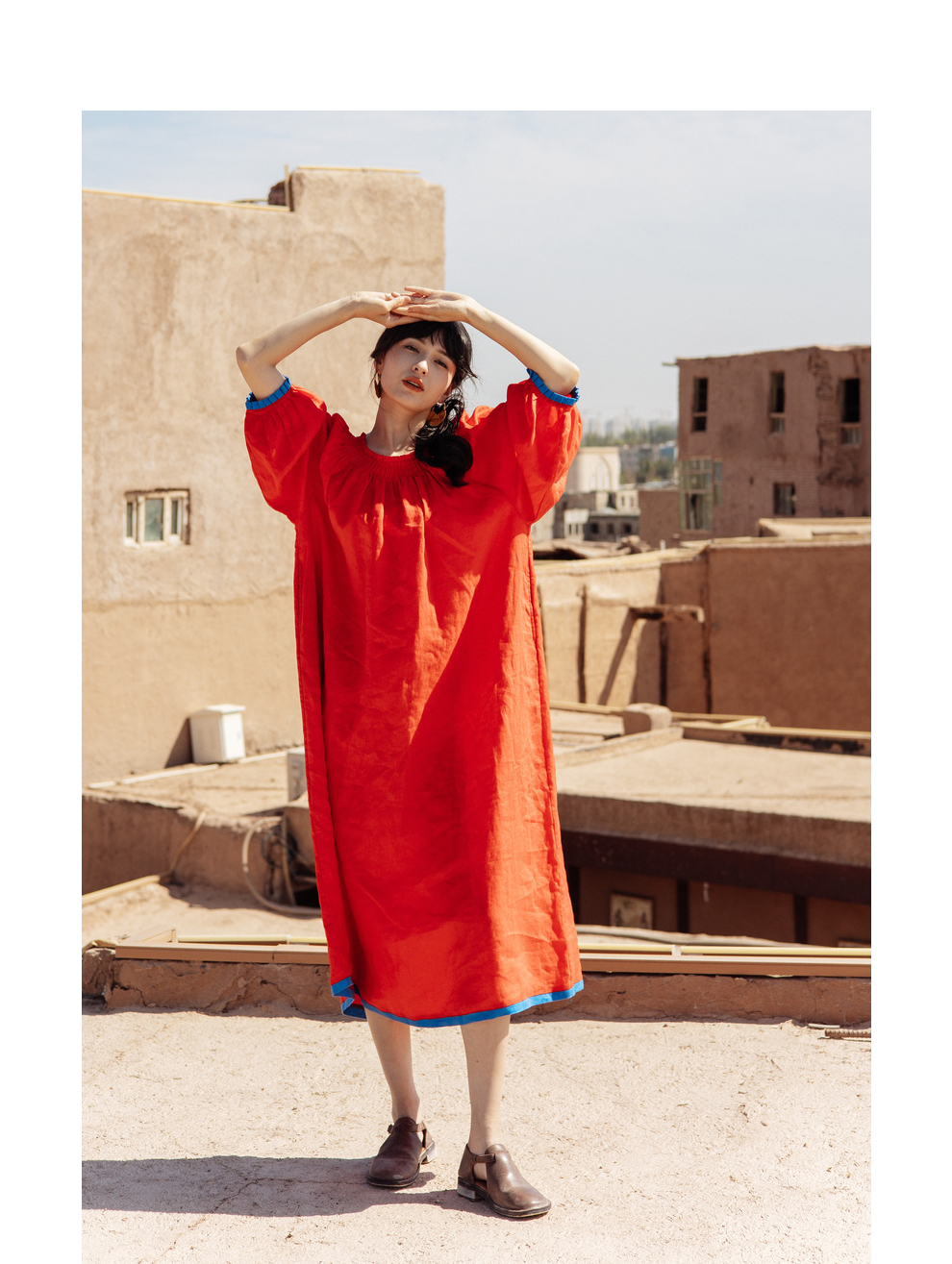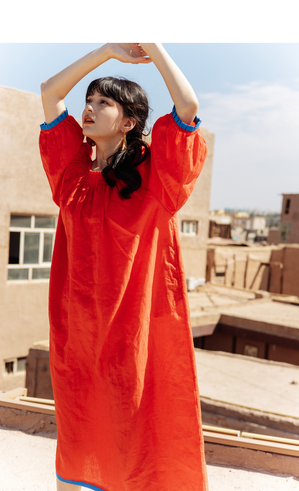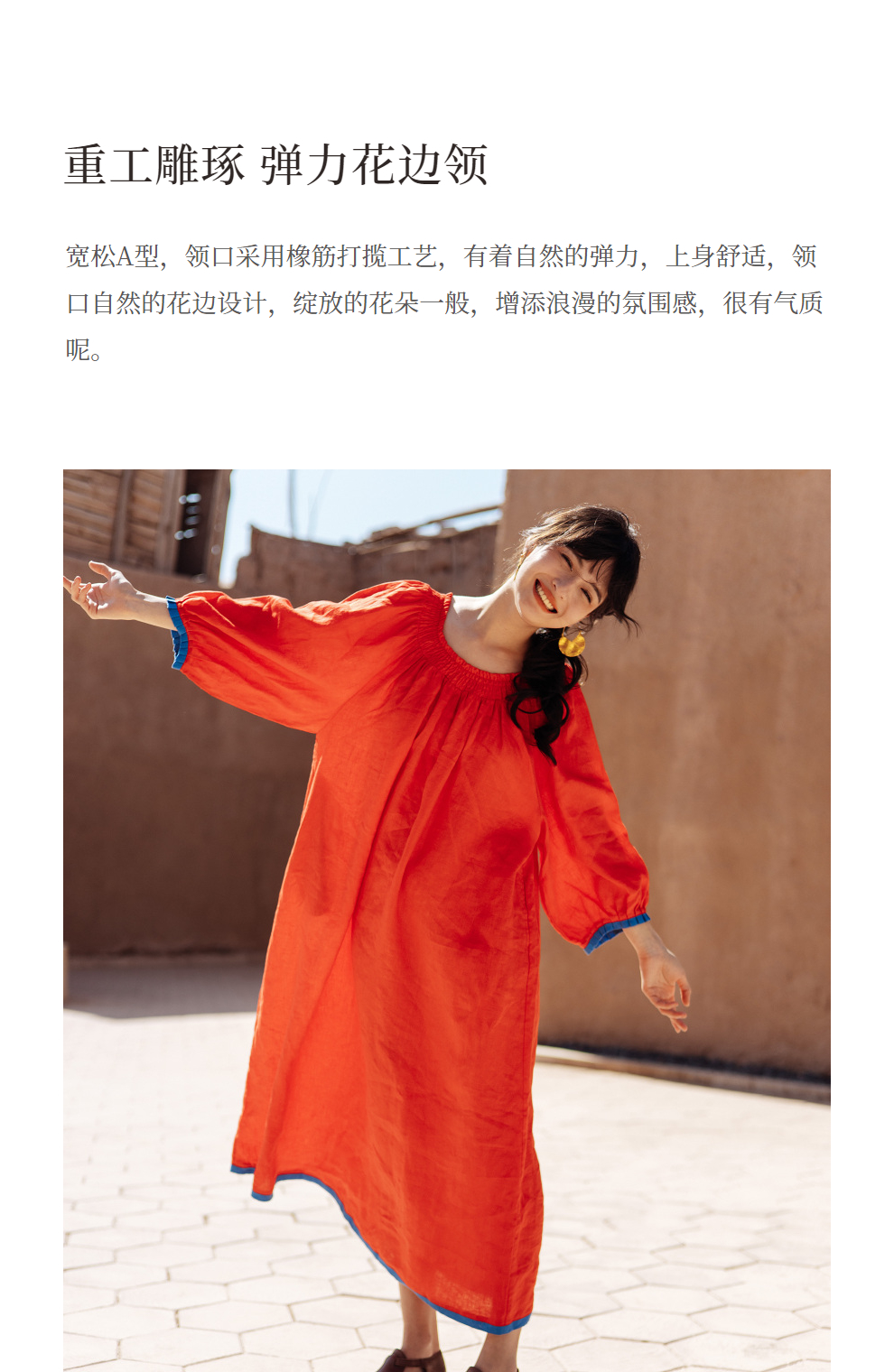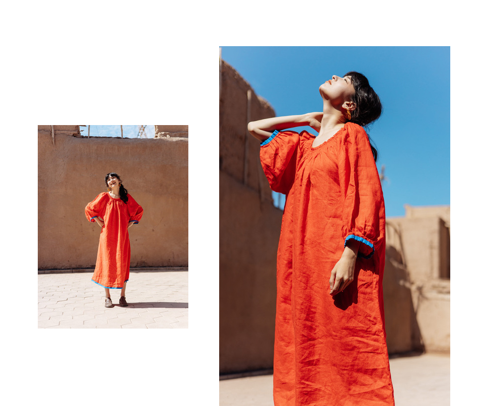 以天然亚麻为载体,融合热烈色彩与自在剪裁为身在城市、心怀远方的女性提供兼具美学与舒适的旅行着装