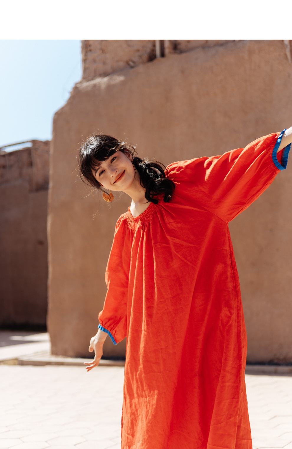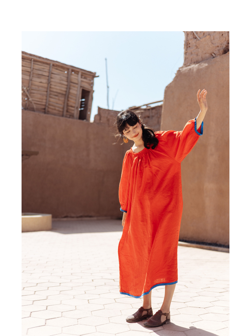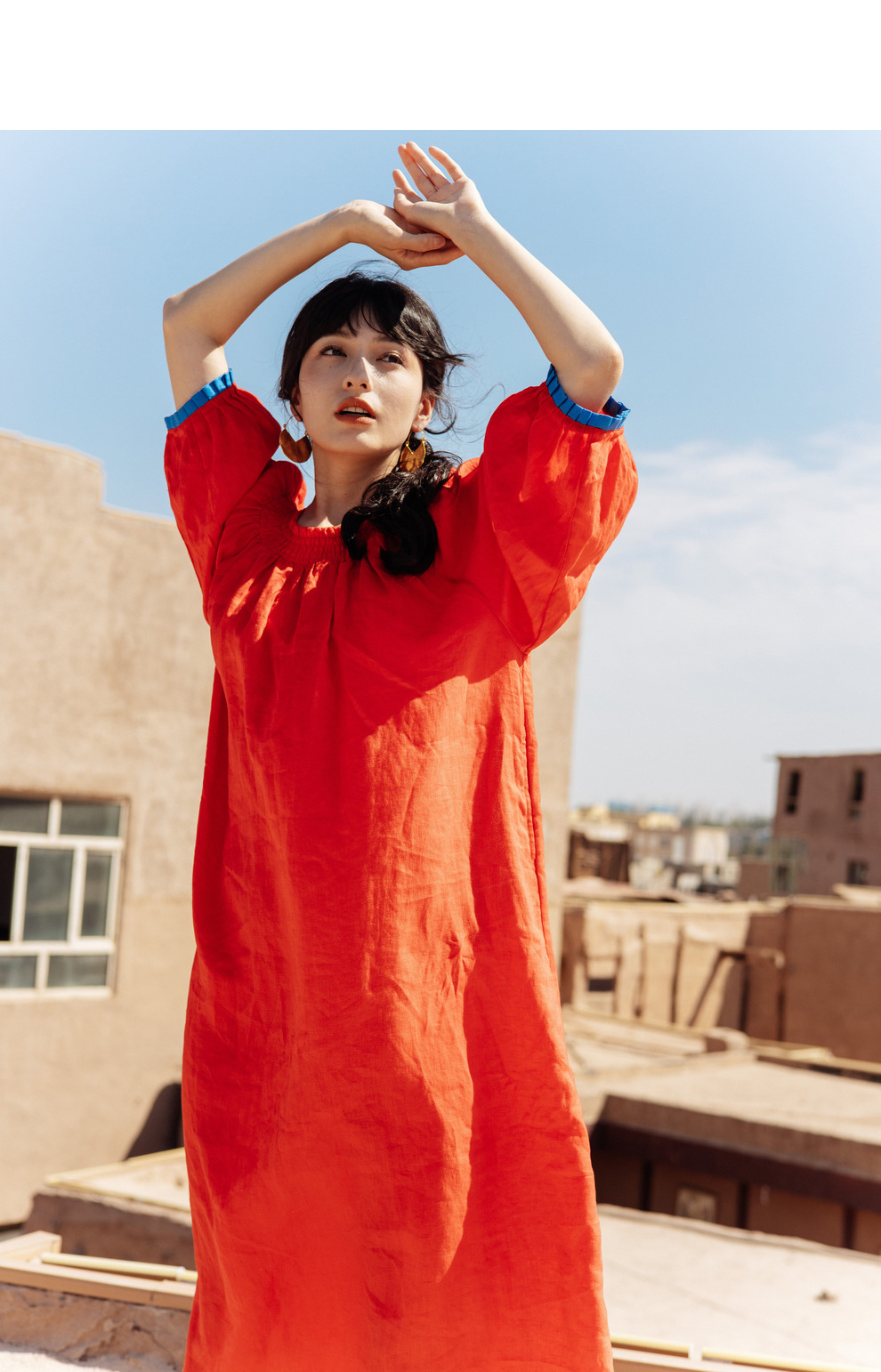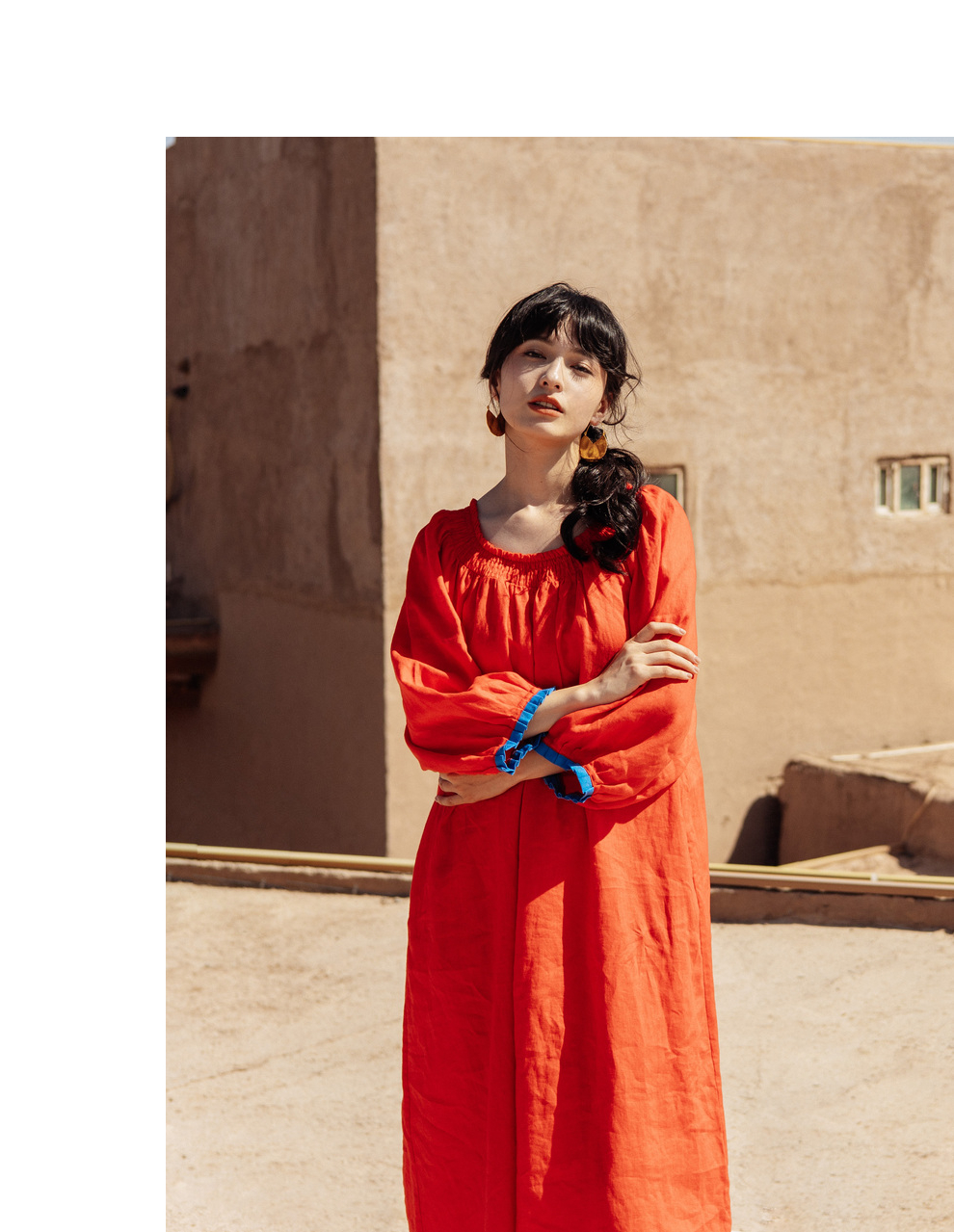 以天然亚麻为载体,融合热烈色彩与自在剪裁为身在城市、心怀远方的女性提供兼具美学与舒适的旅行着装