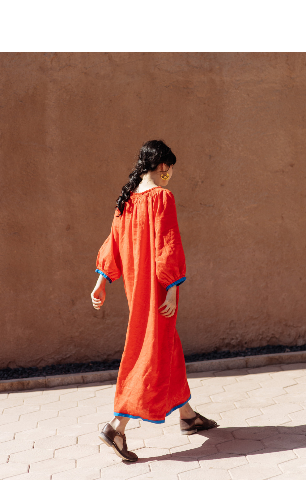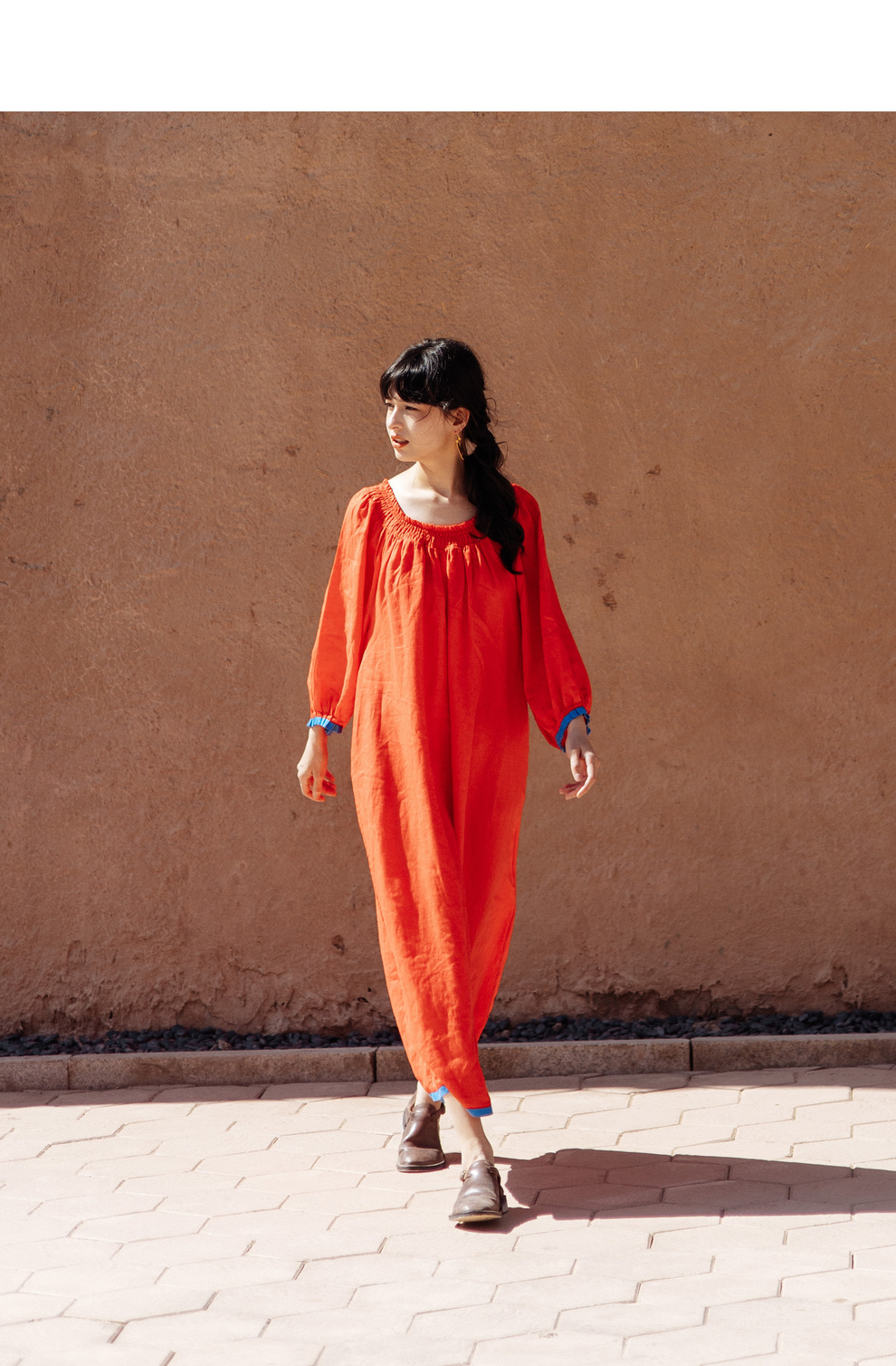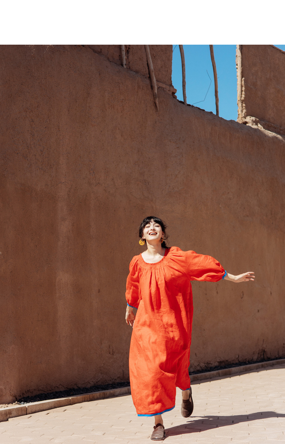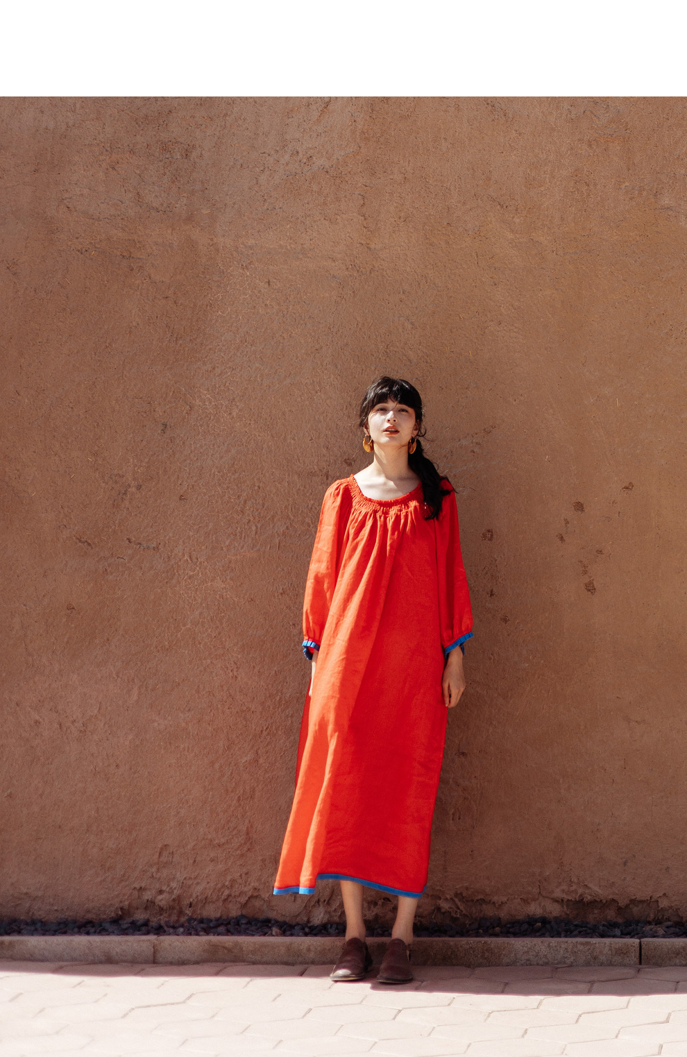 以天然亚麻为载体,融合热烈色彩与自在剪裁为身在城市、心怀远方的女性提供兼具美学与舒适的旅行着装