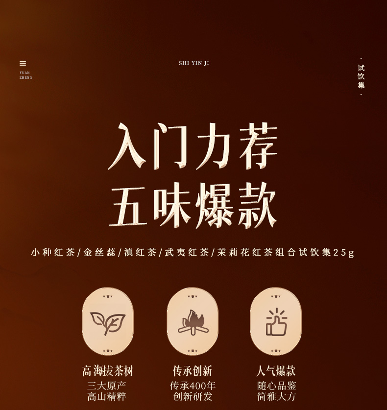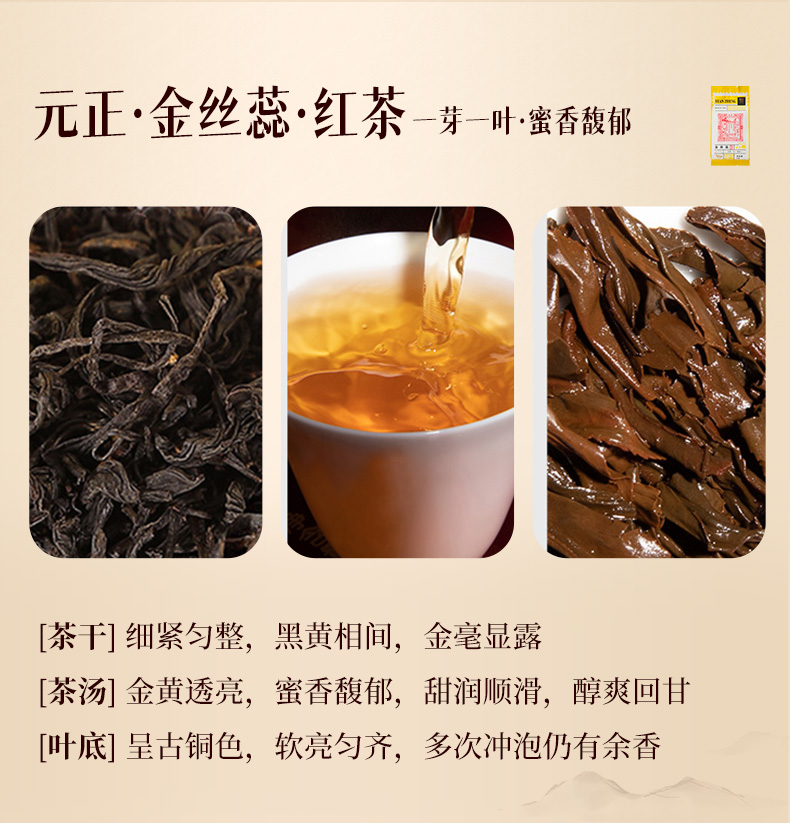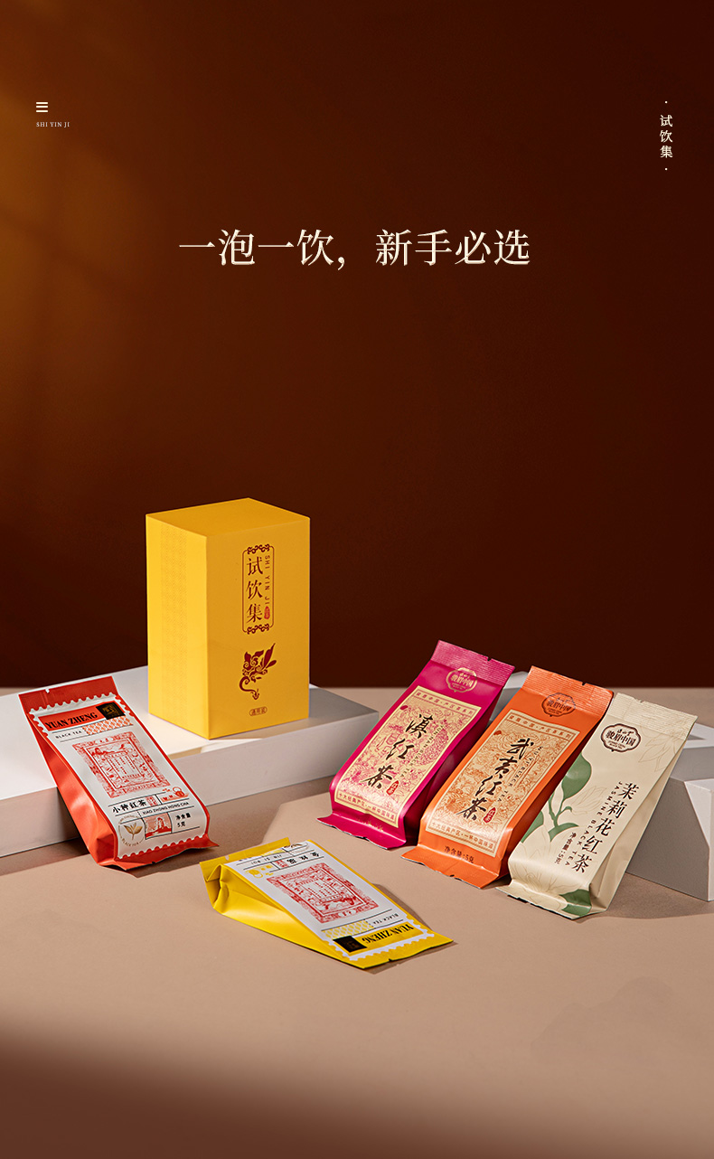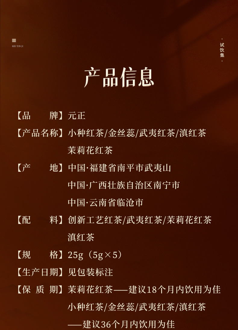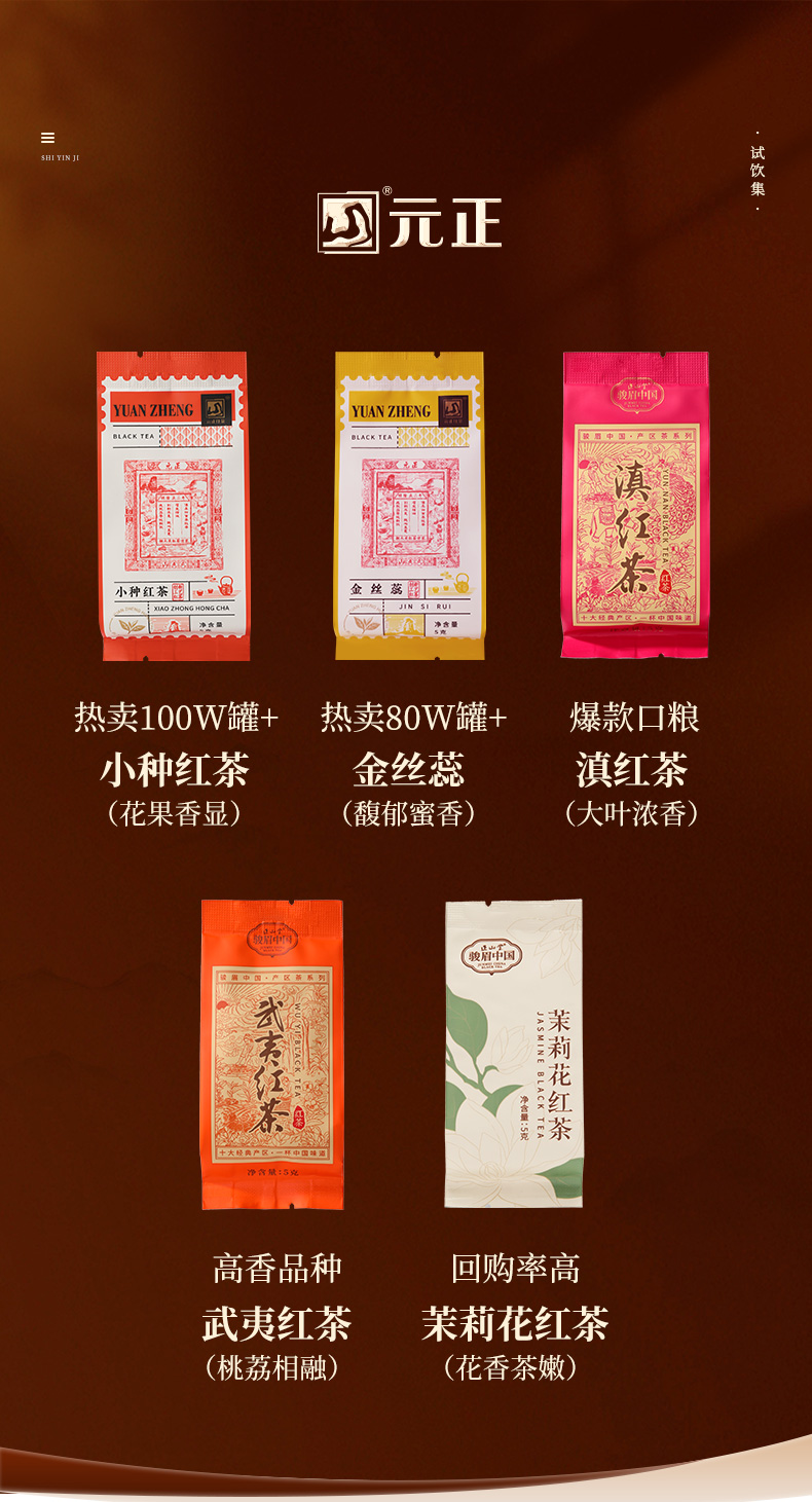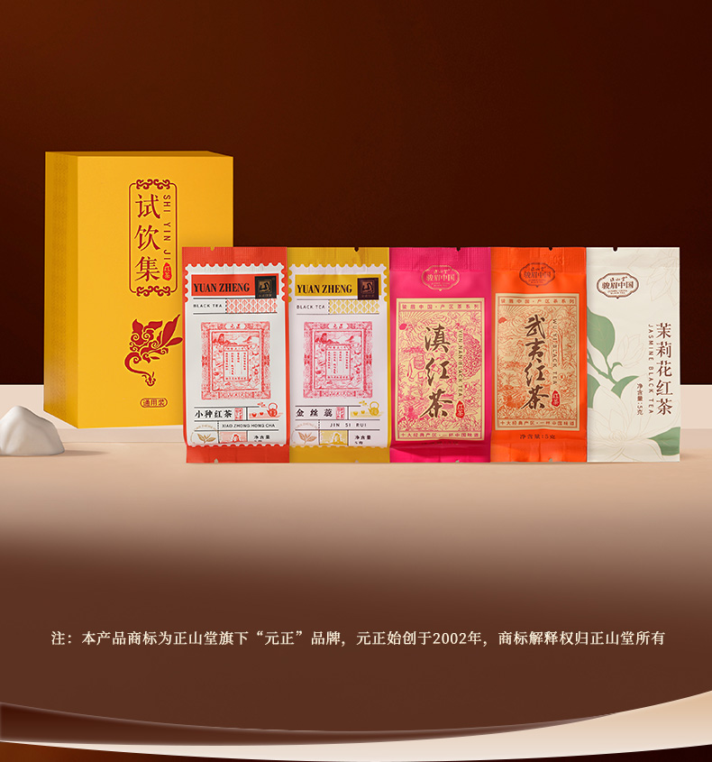 元正 茶票小种金丝蕊茉莉花滇红武夷红茶组合5款特级茶叶试饮集25g