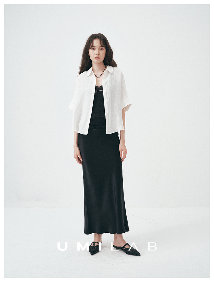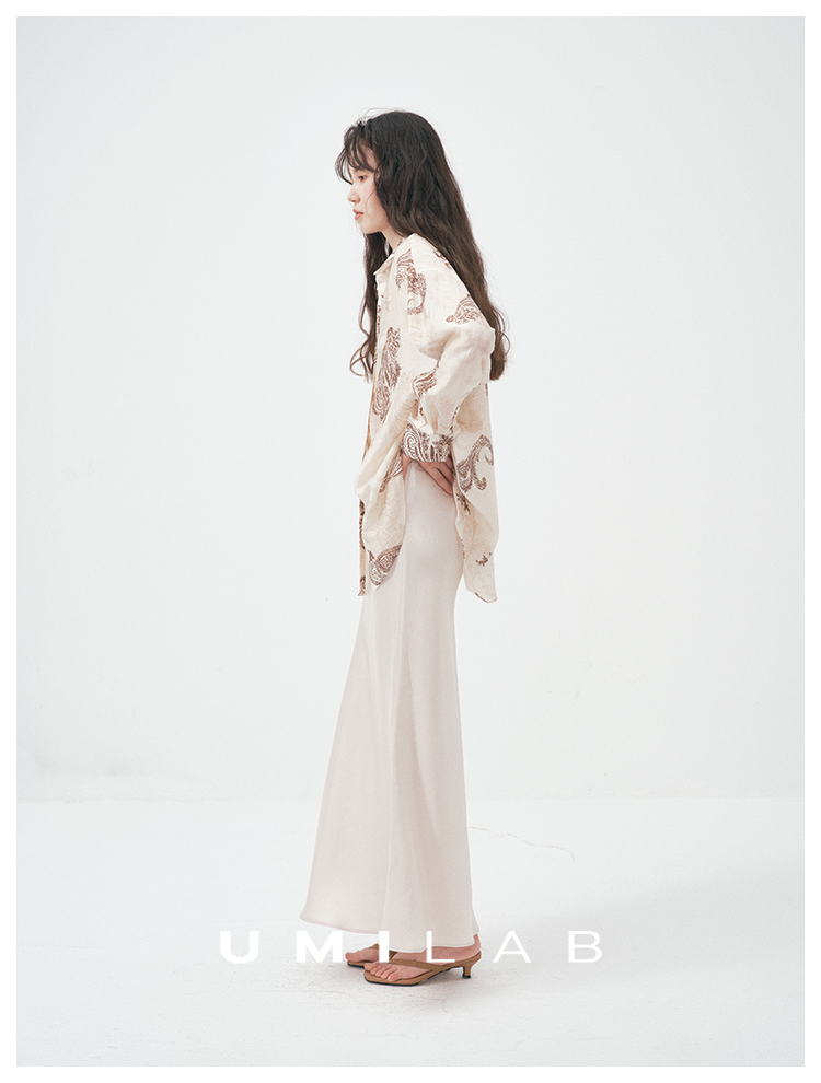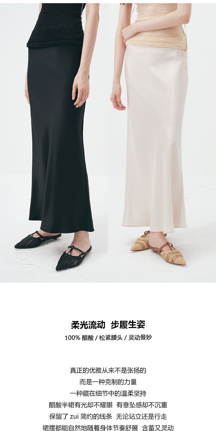 UMILAB|摇曳*静奢优雅100%醋酸高定工艺一片式松紧腰鱼尾裙D800W