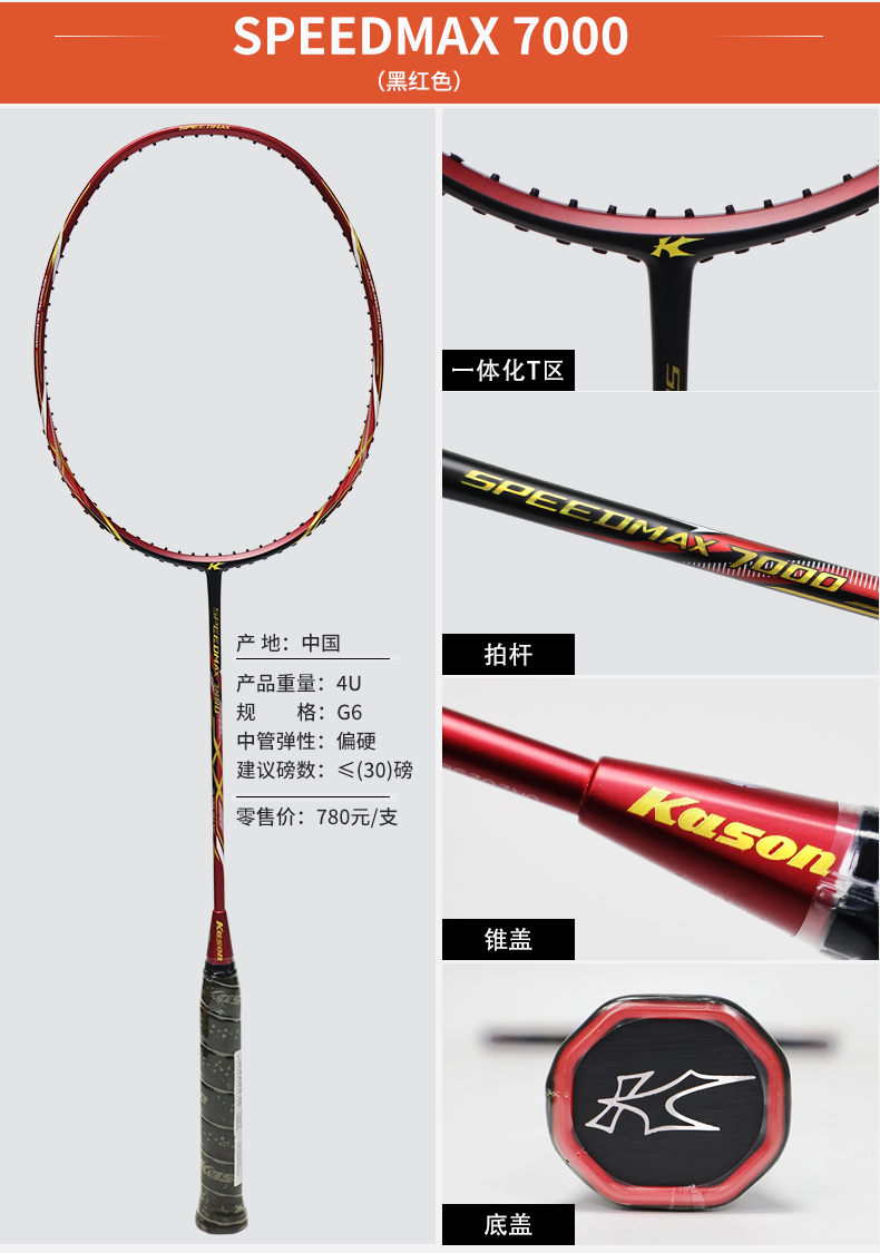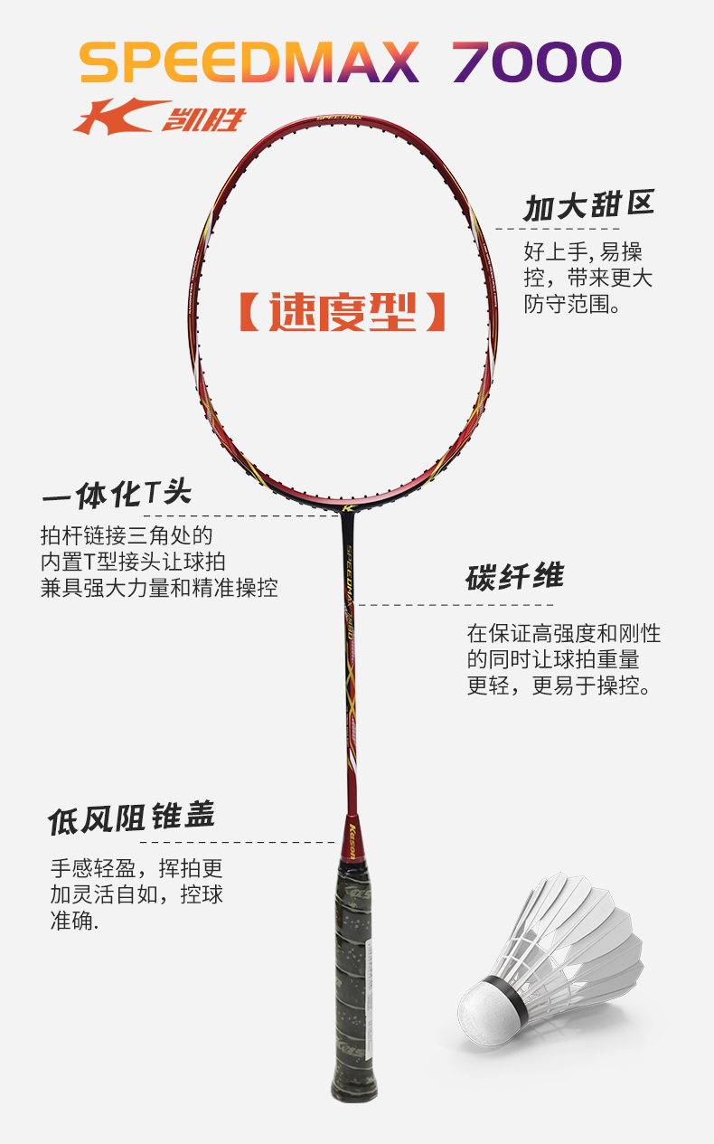 李宁凯胜KASON SPEEDMAX 7000碳纤维速度拍单支装羽毛球拍