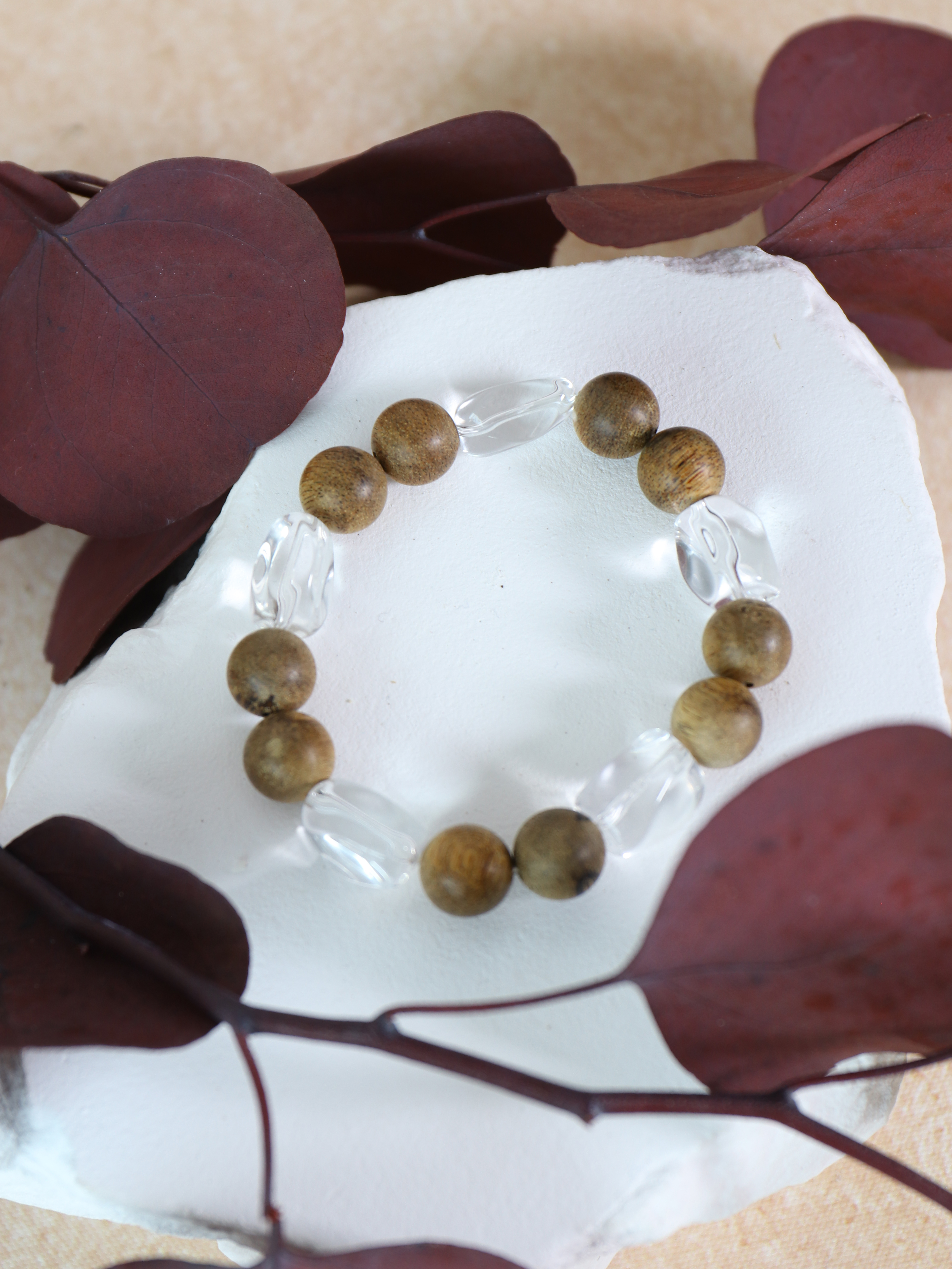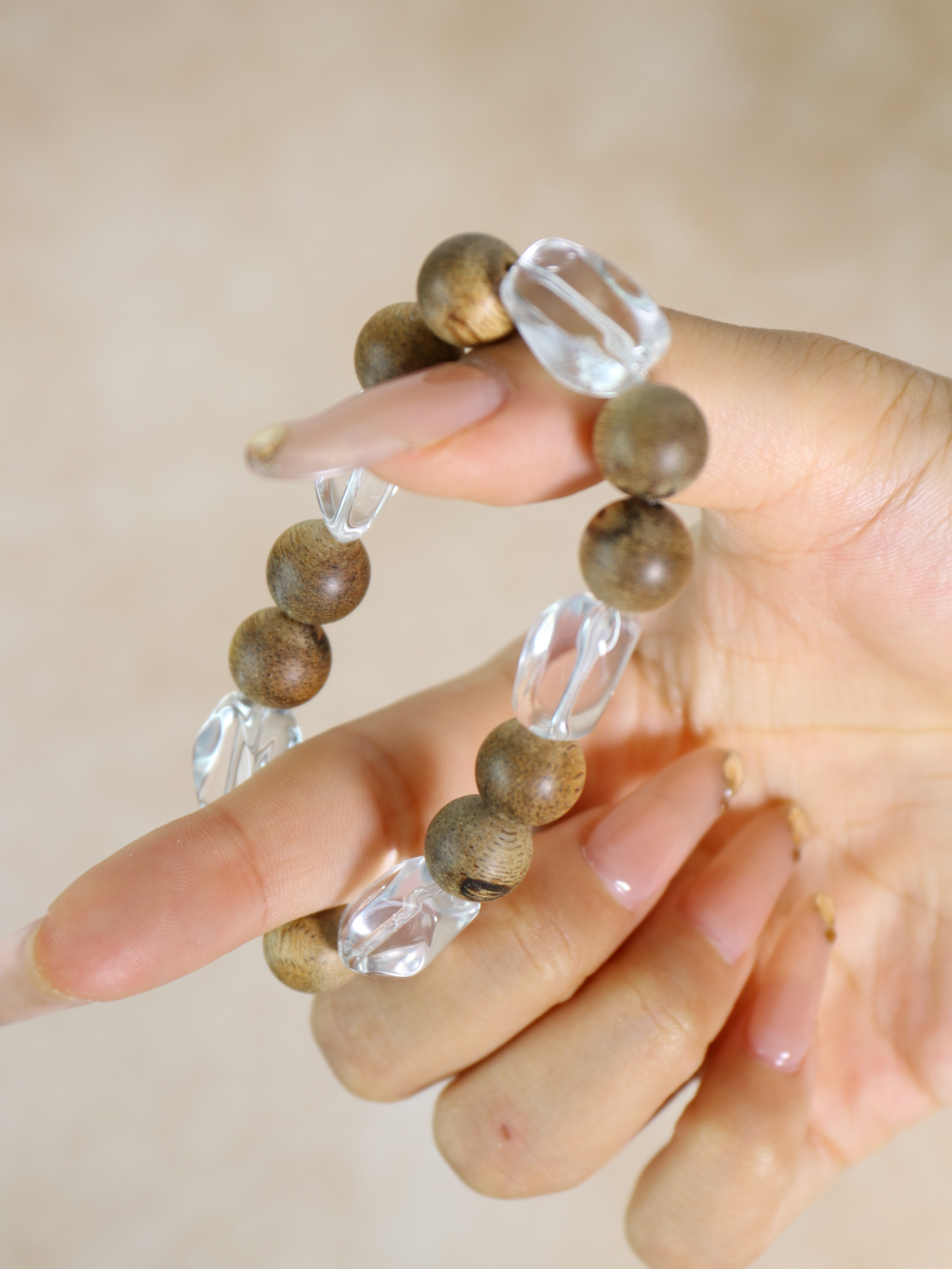 •不规则排布:水晶打破沉香的节奏,视觉上更有呼吸感与留白。