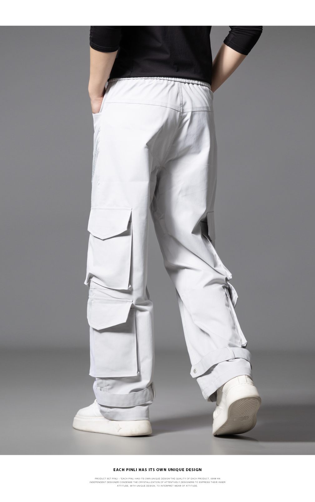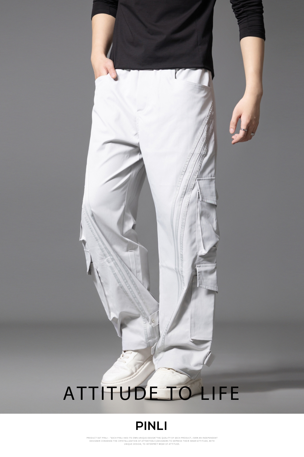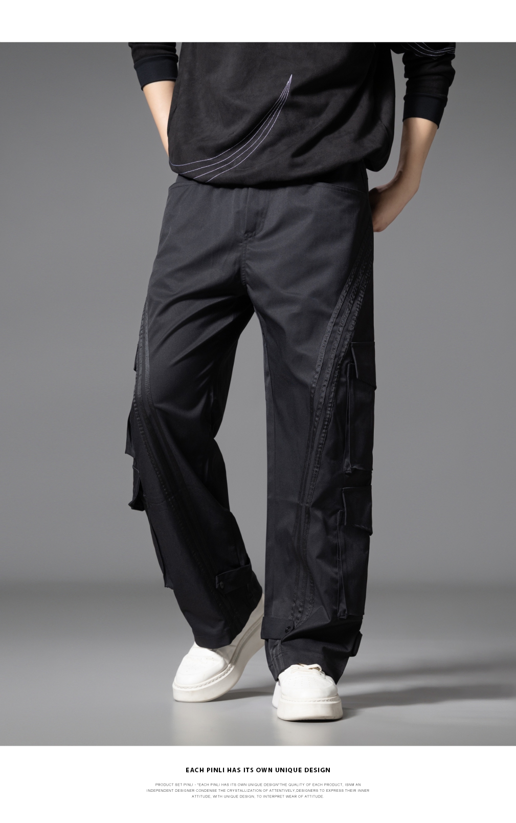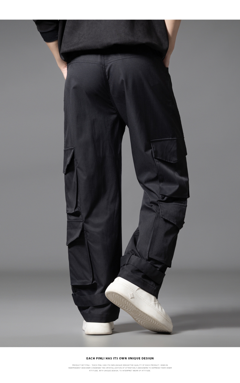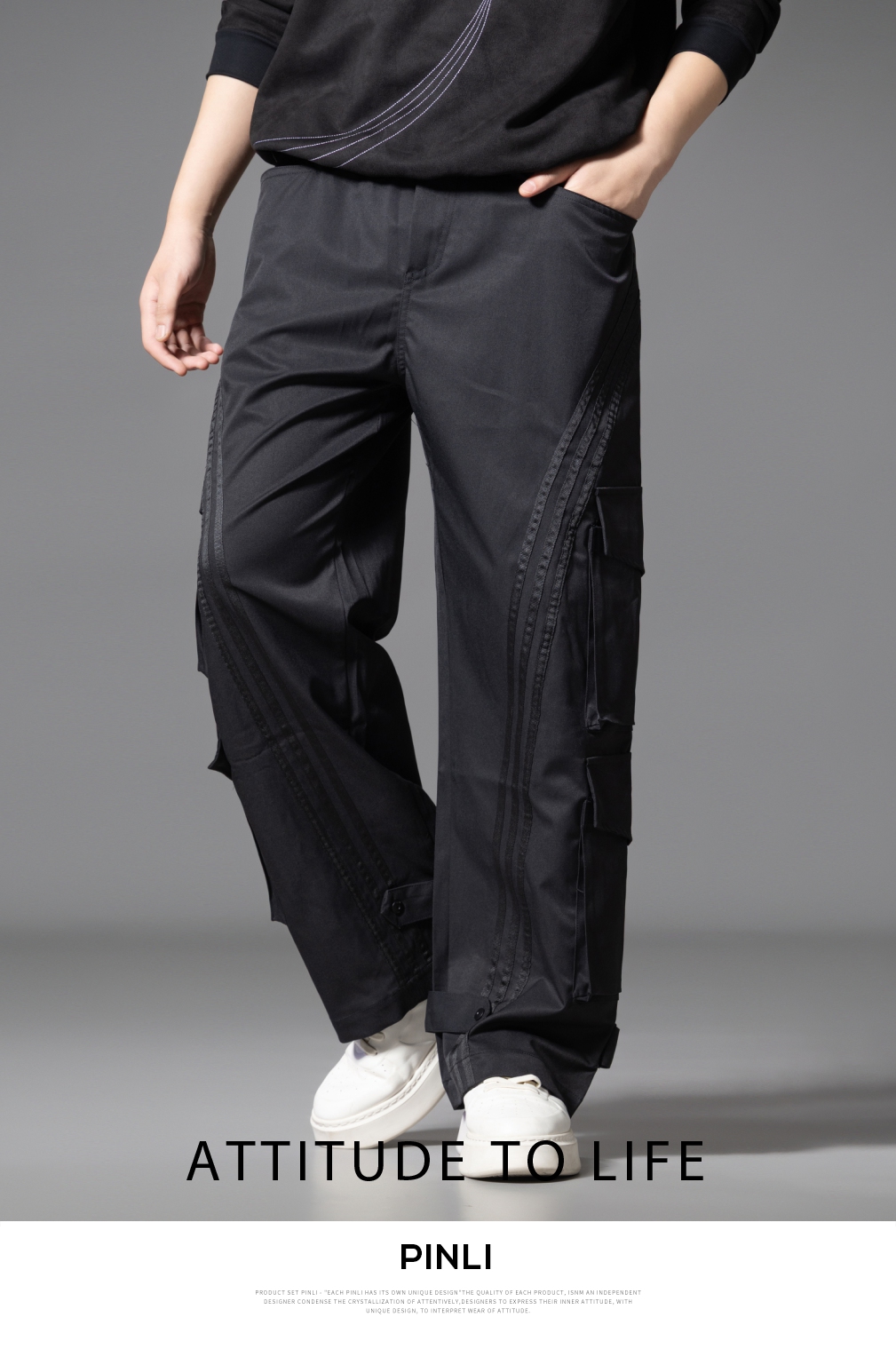 PINLI品立2025秋季新款多口袋工装直筒裤男士高街潮流宽松休闲裤GD253117012