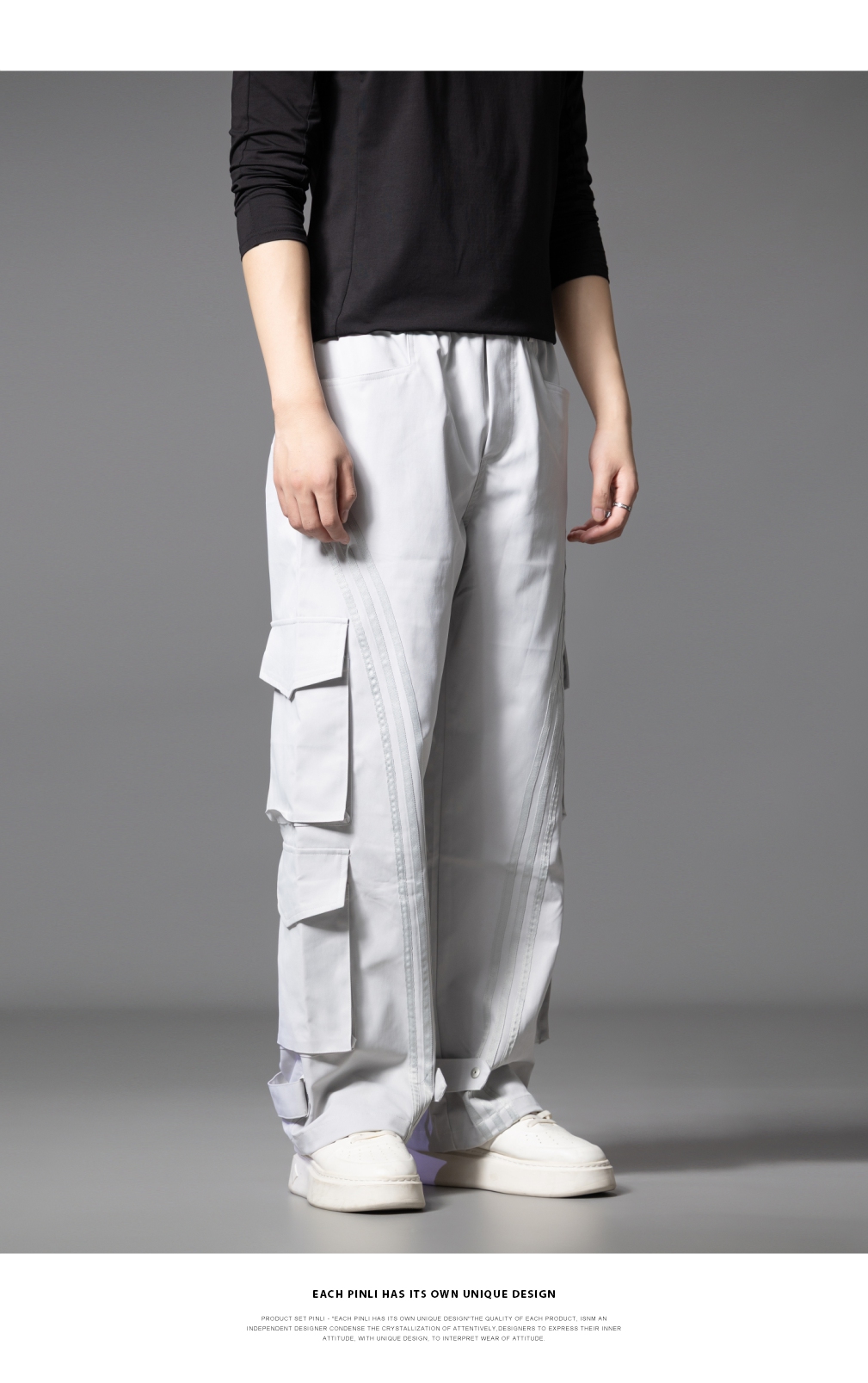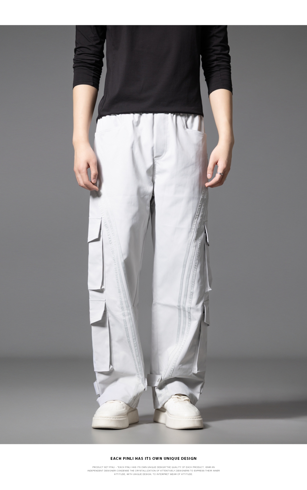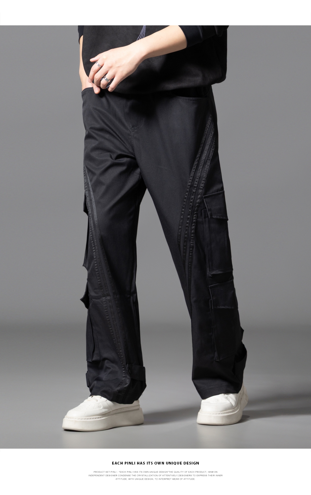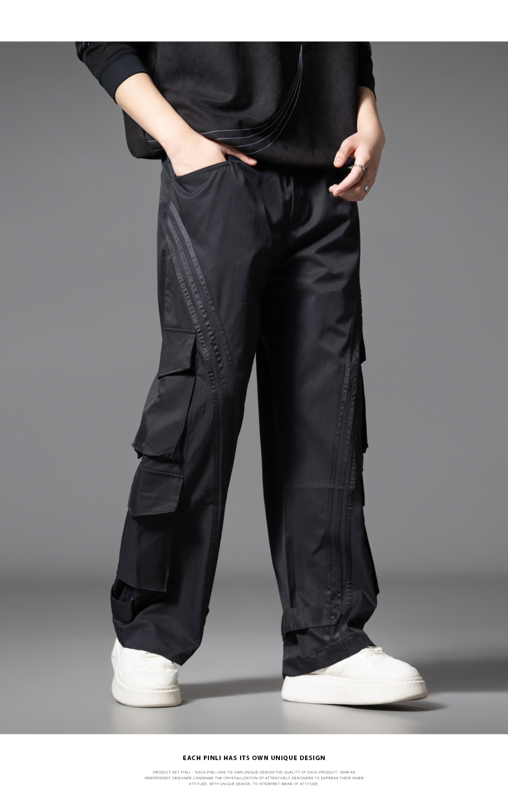 PINLI品立2025秋季新款多口袋工装直筒裤男士高街潮流宽松休闲裤GD253117012