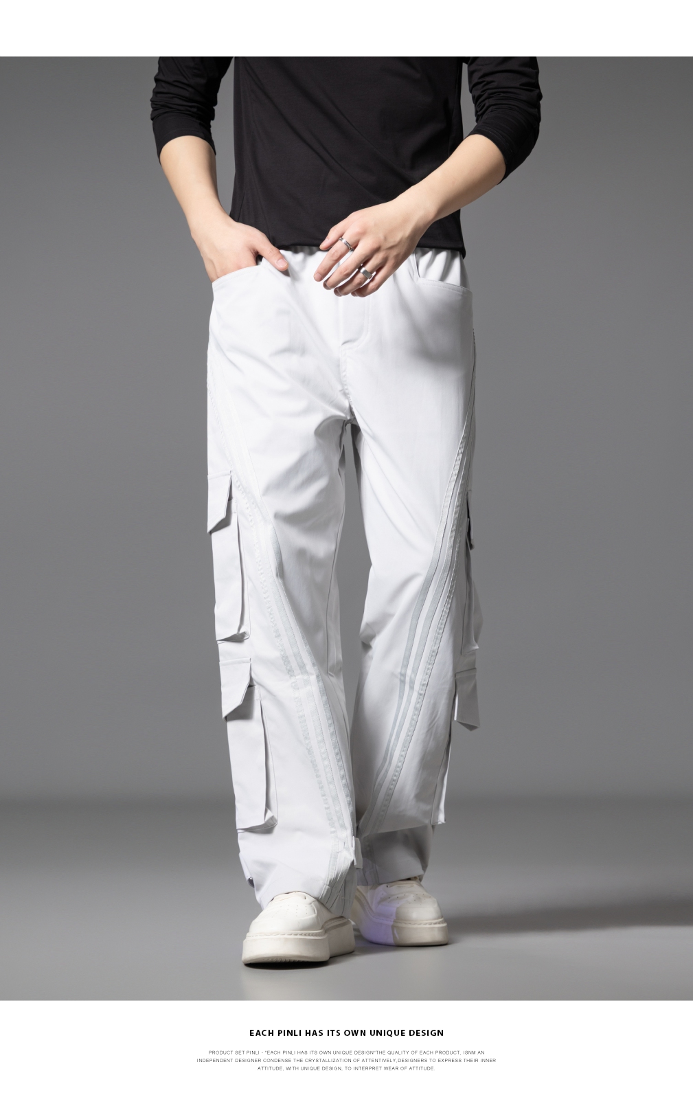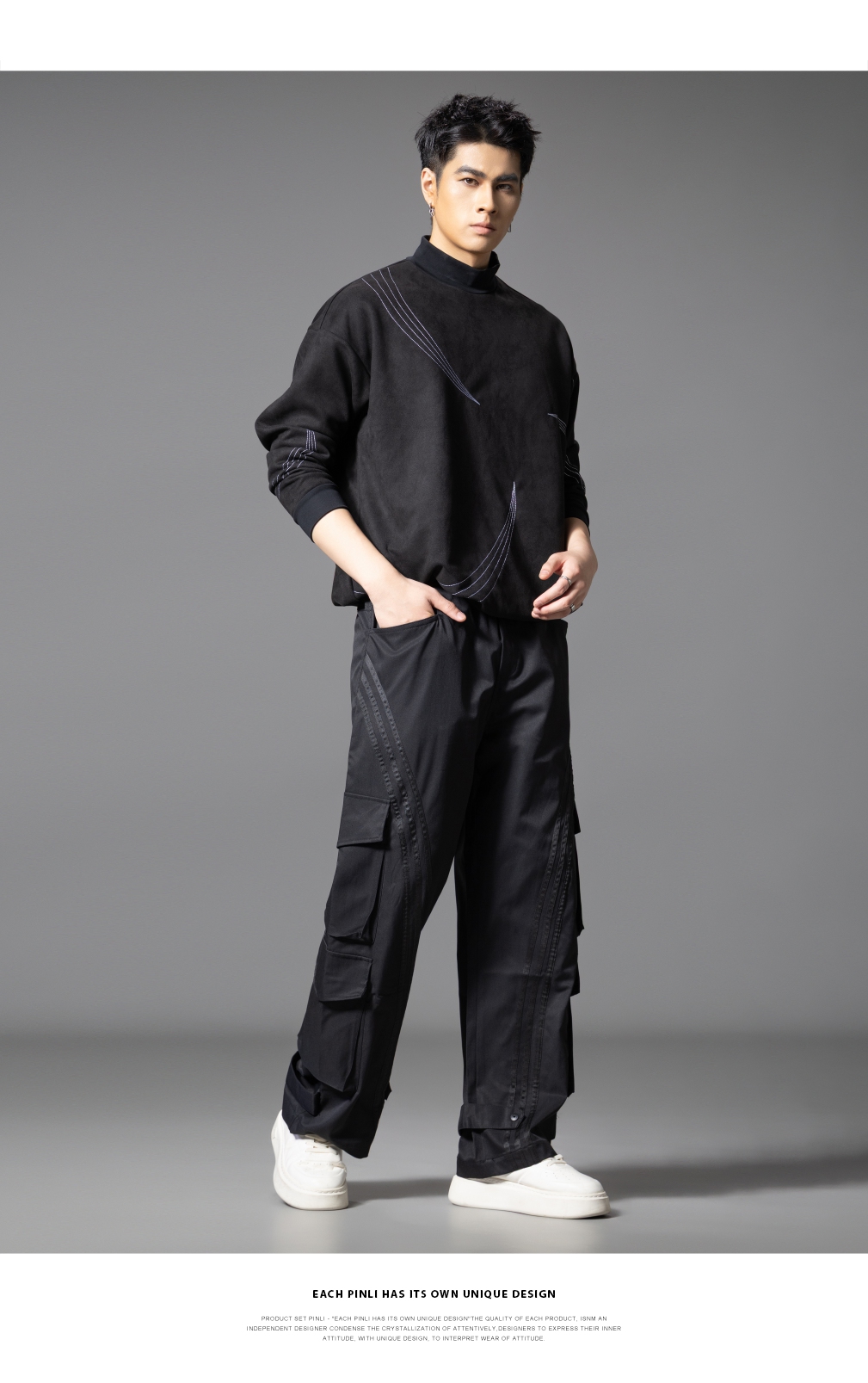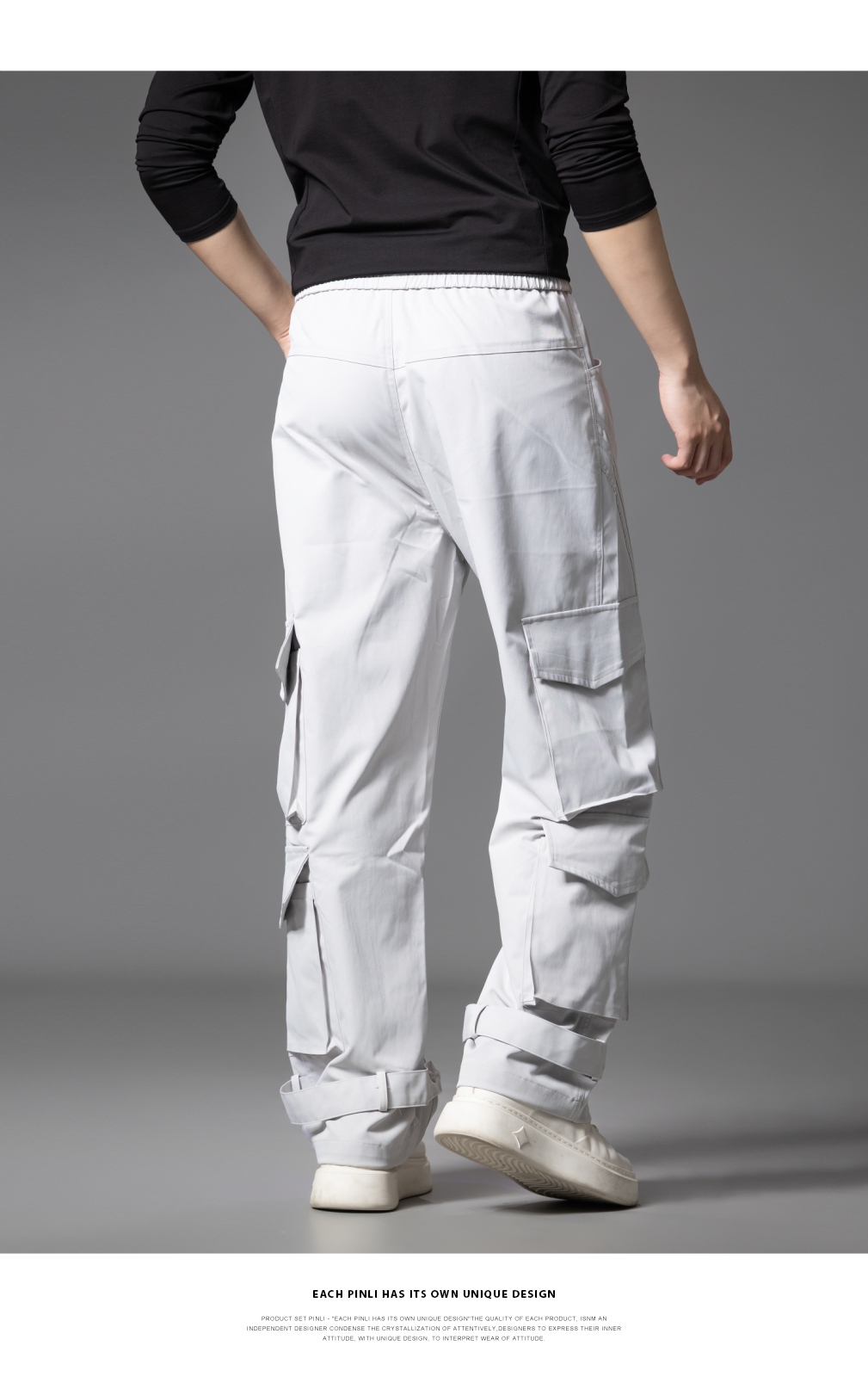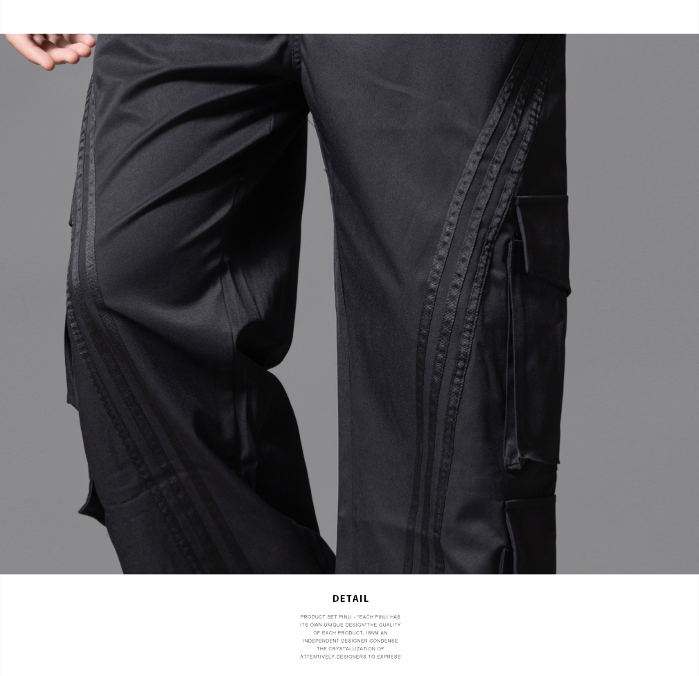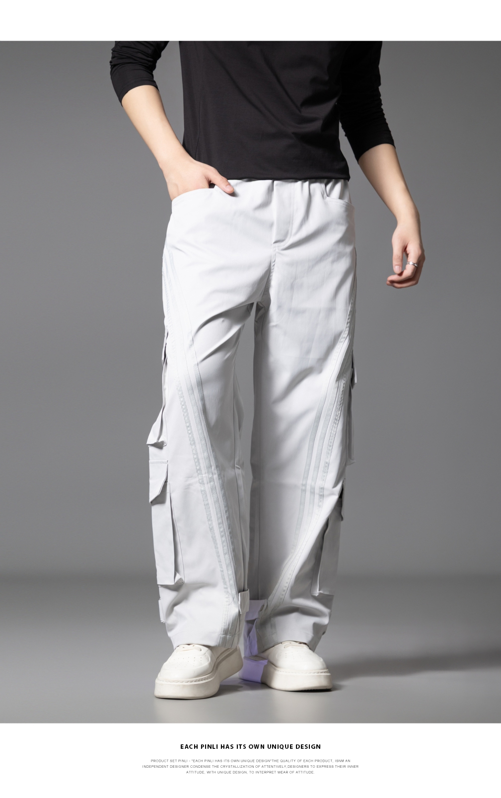 PINLI品立2025秋季新款多口袋工装直筒裤男士高街潮流宽松休闲裤GD253117012