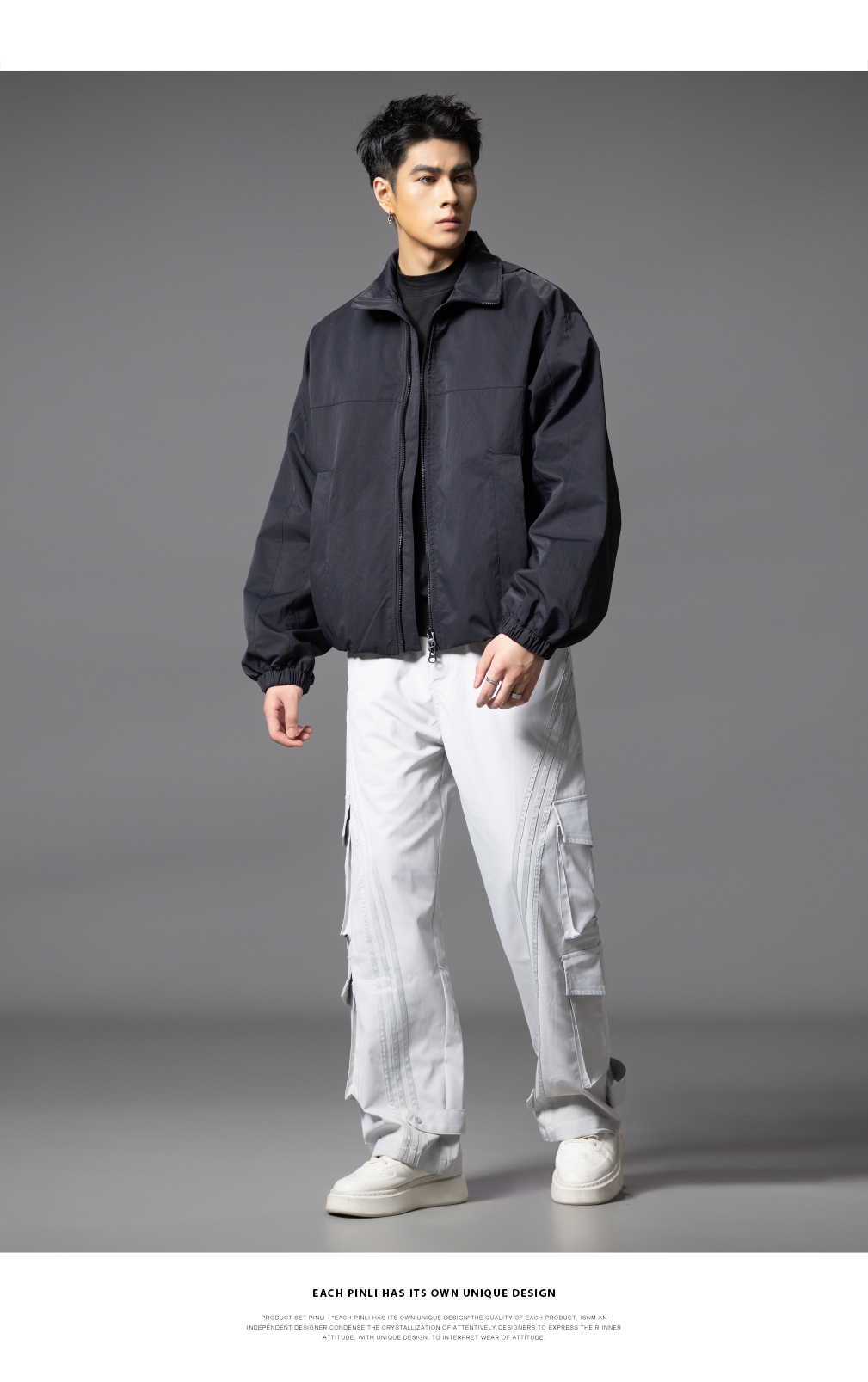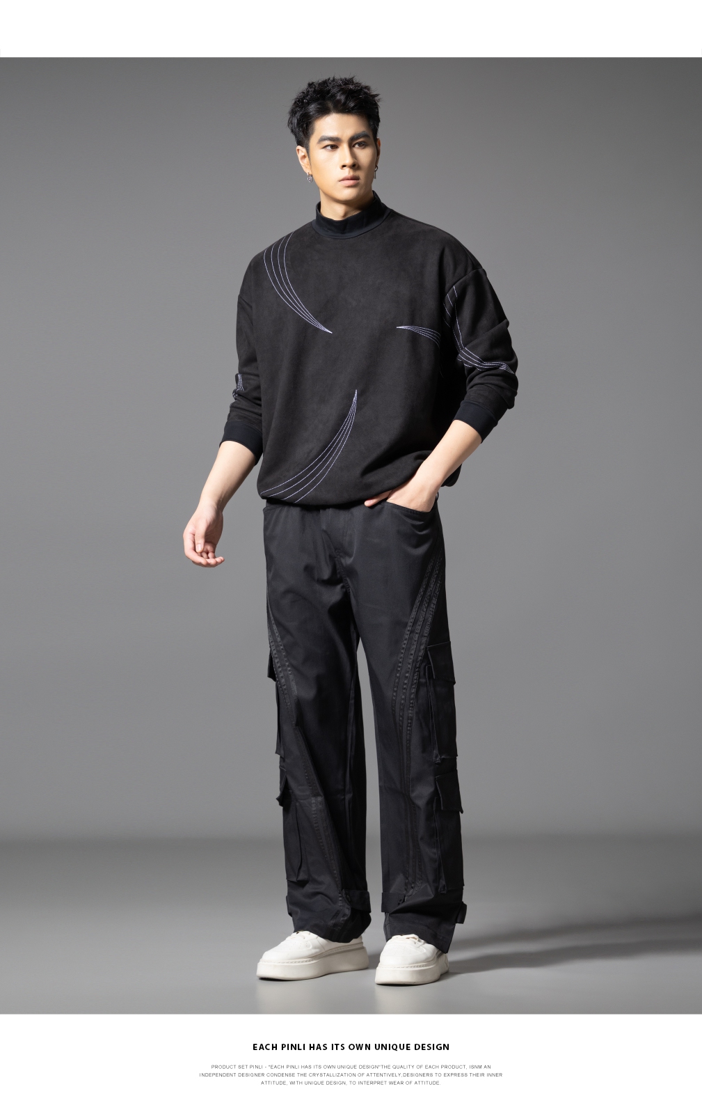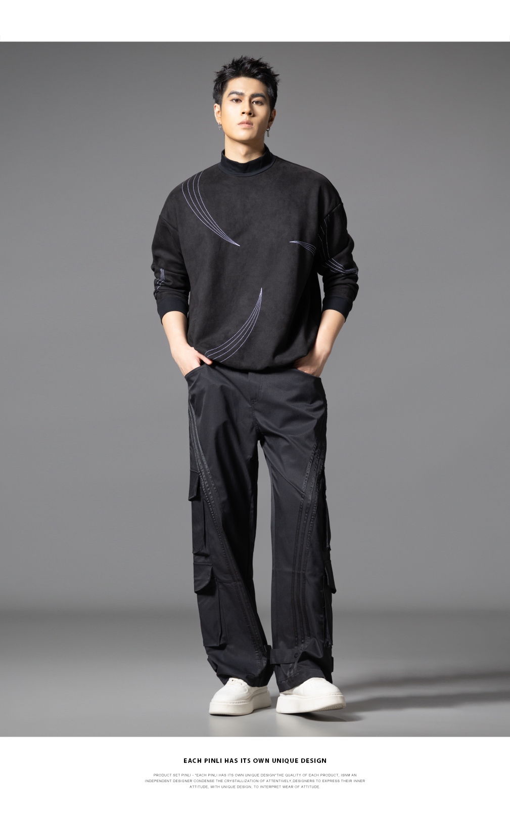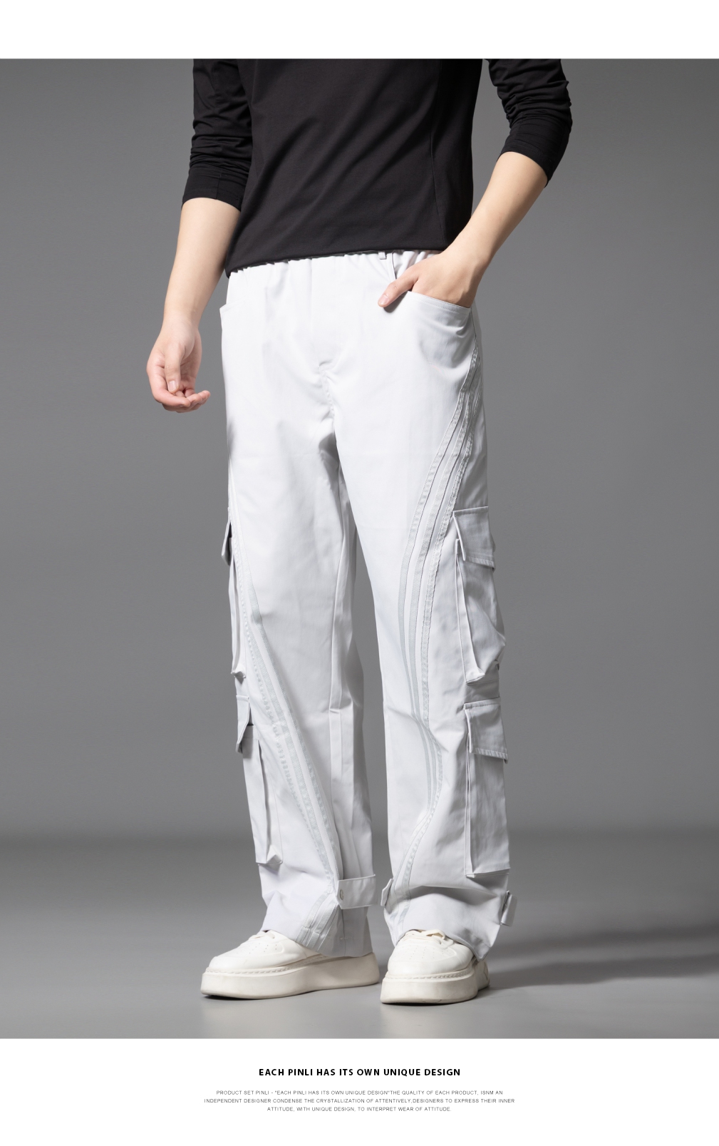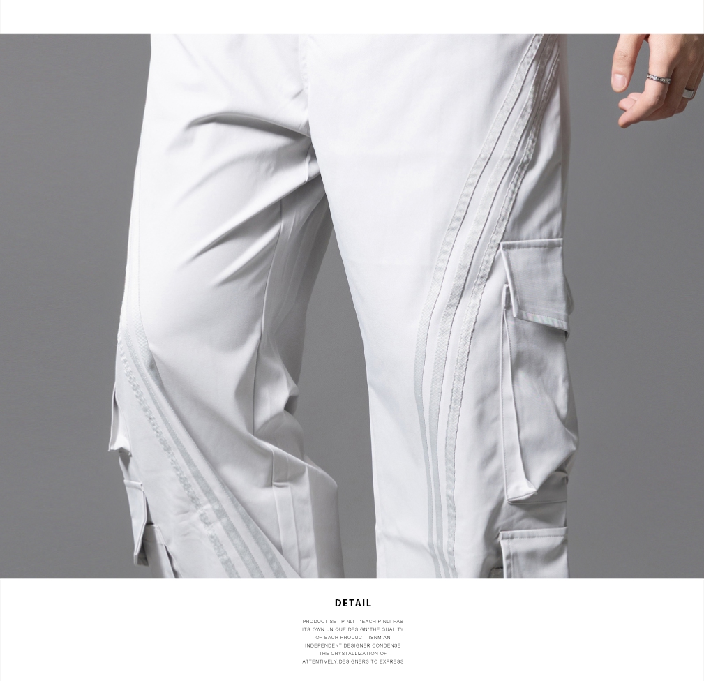 PINLI品立2025秋季新款多口袋工装直筒裤男士高街潮流宽松休闲裤GD253117012