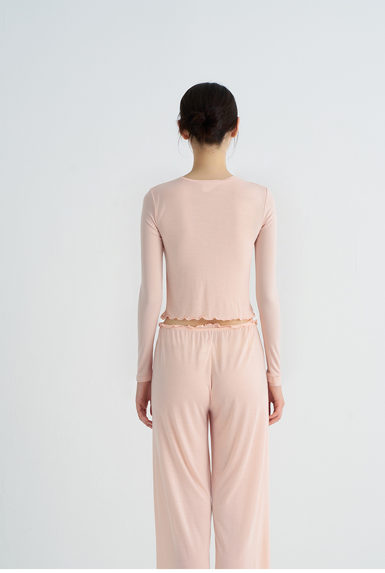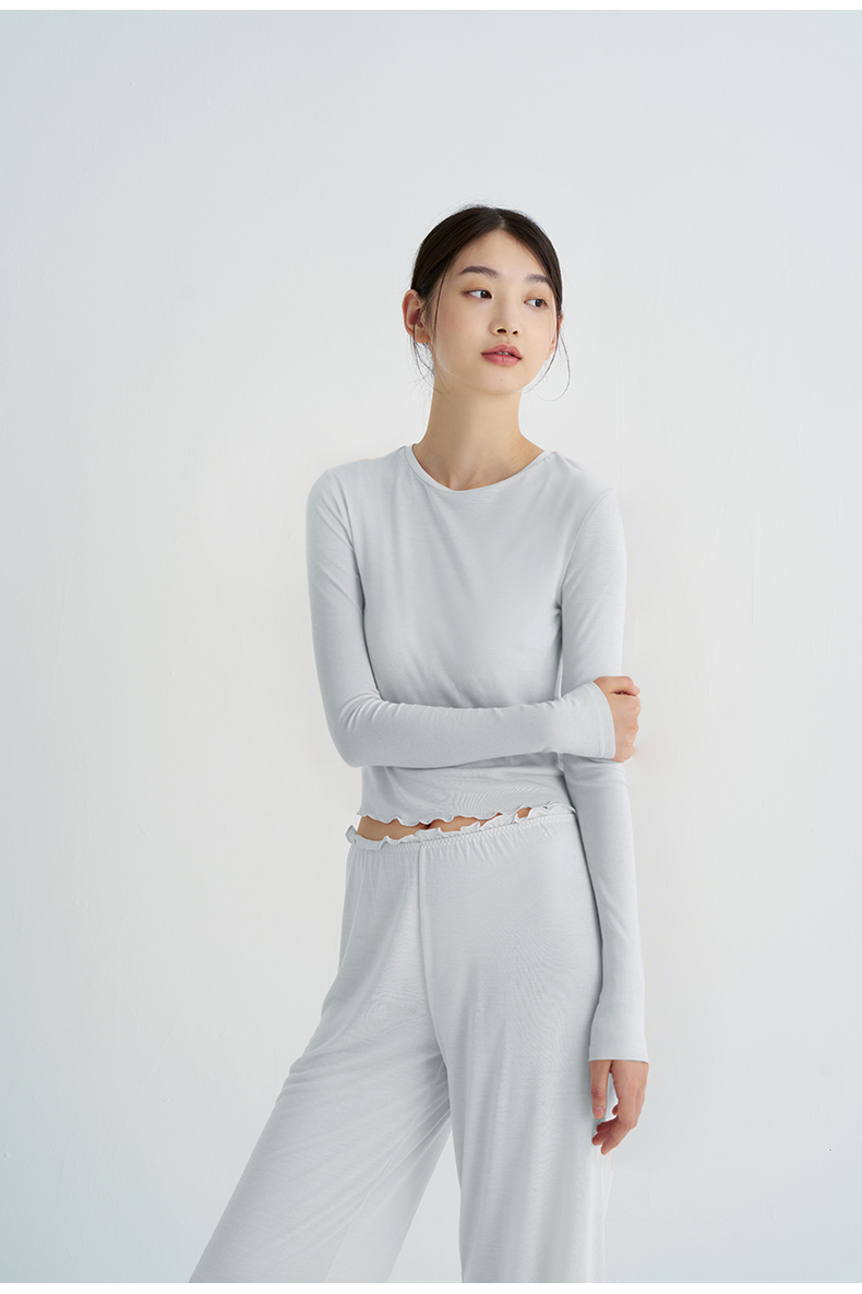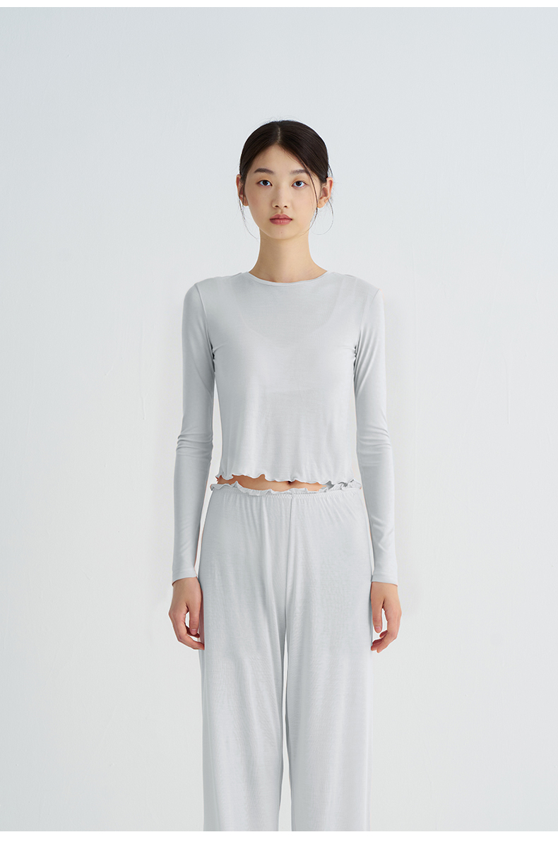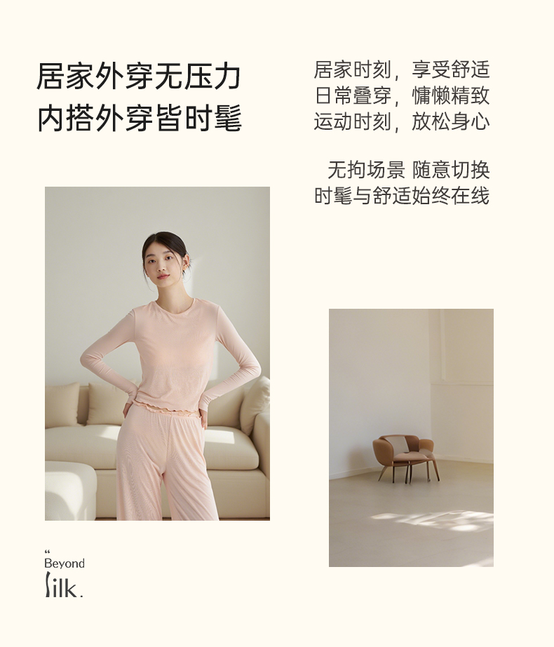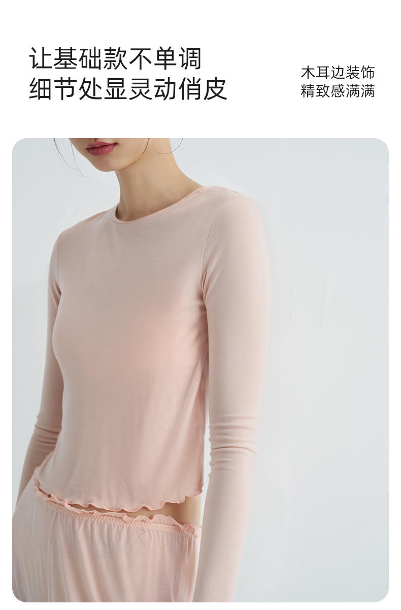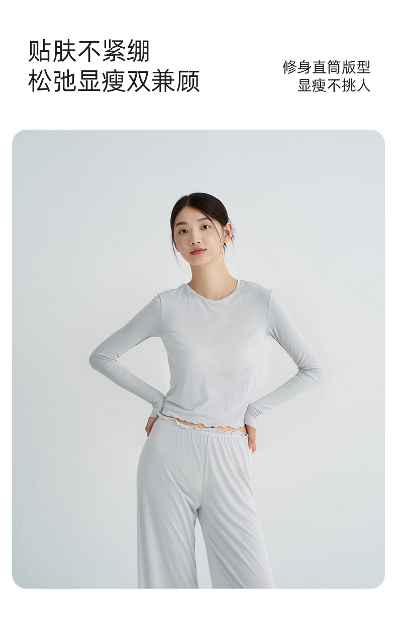 桑罗纯色长袖打底套装裸感修身贴肤睡衣女家居服可外穿免穿文胸